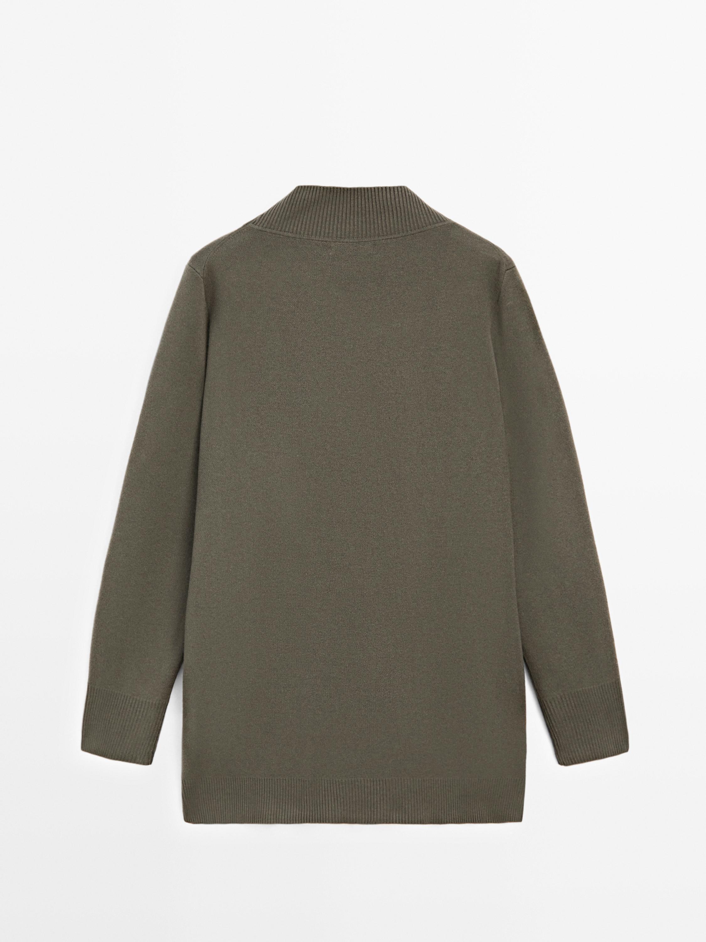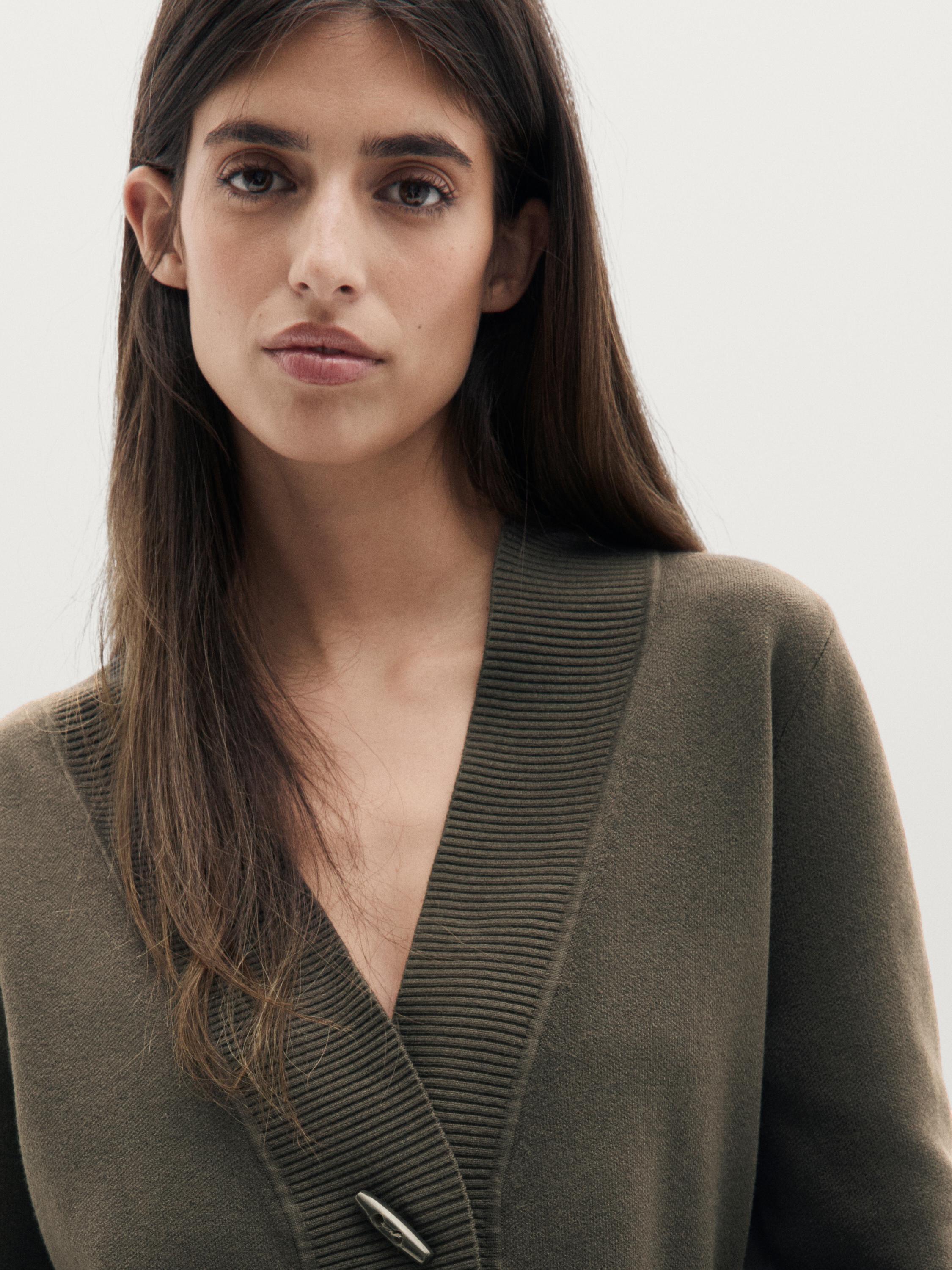 Massimo Dutti Длинный кардиган с пуговицами, серовато-зеленый