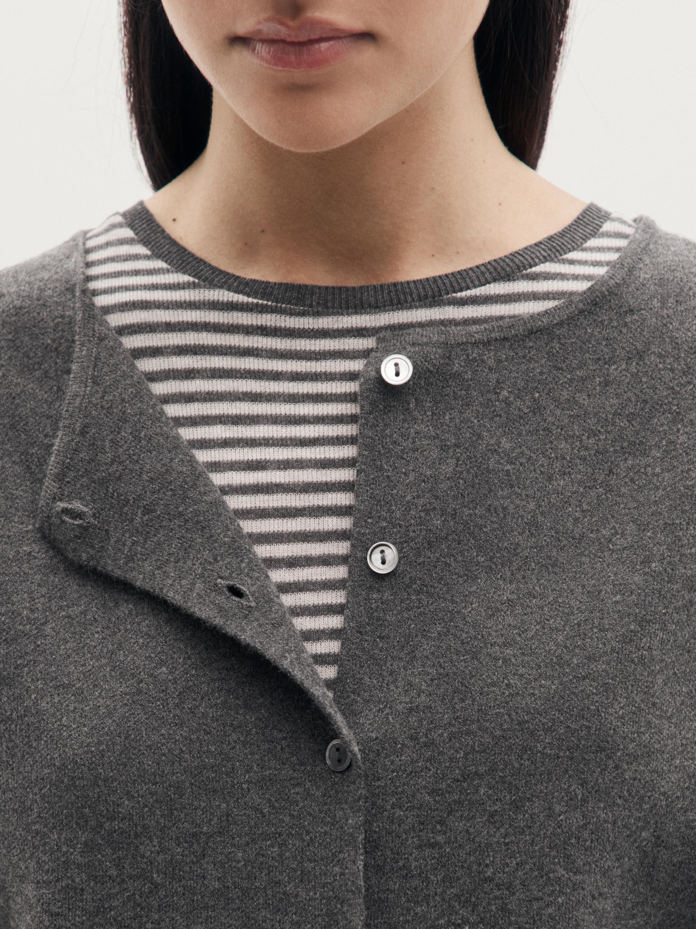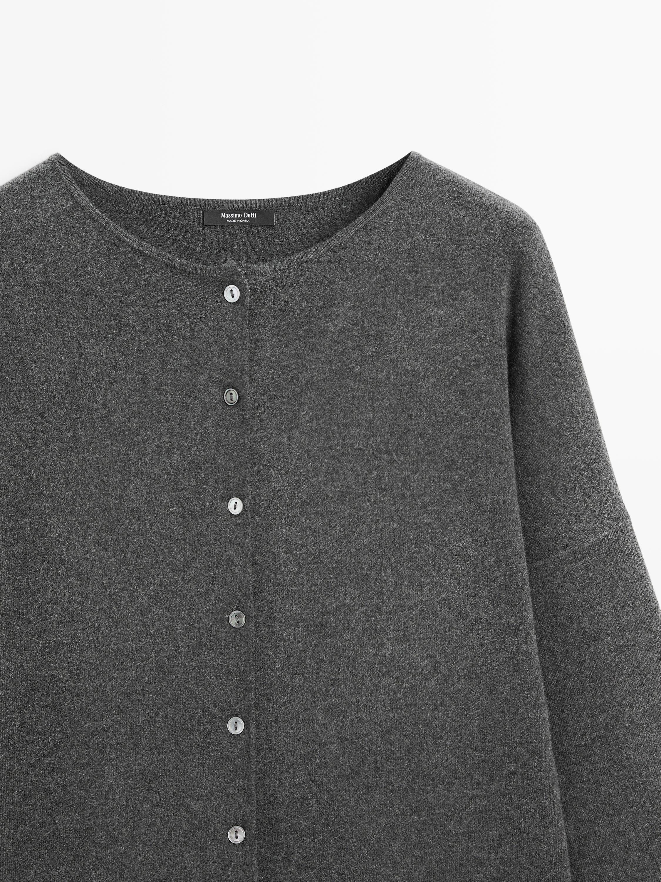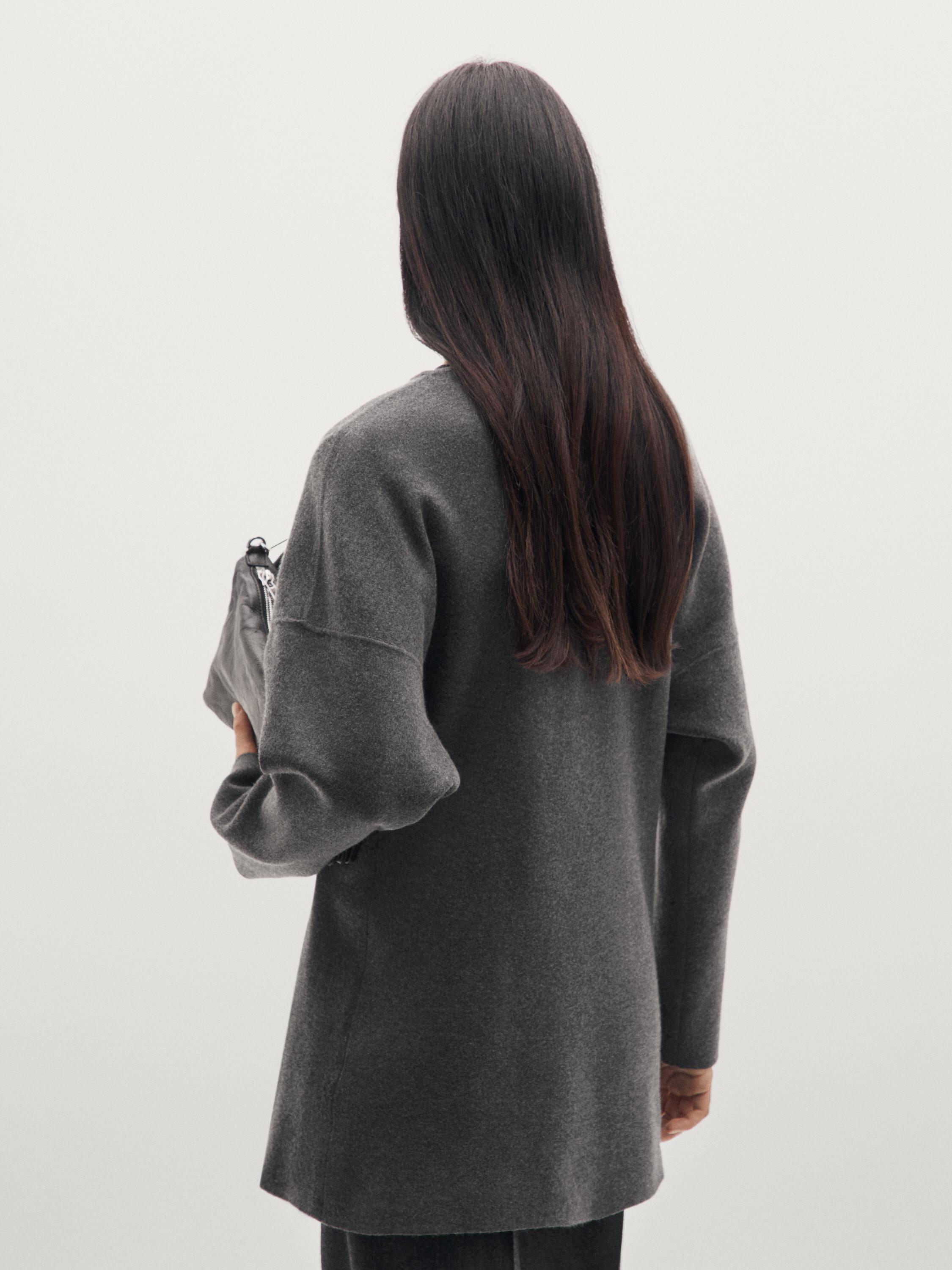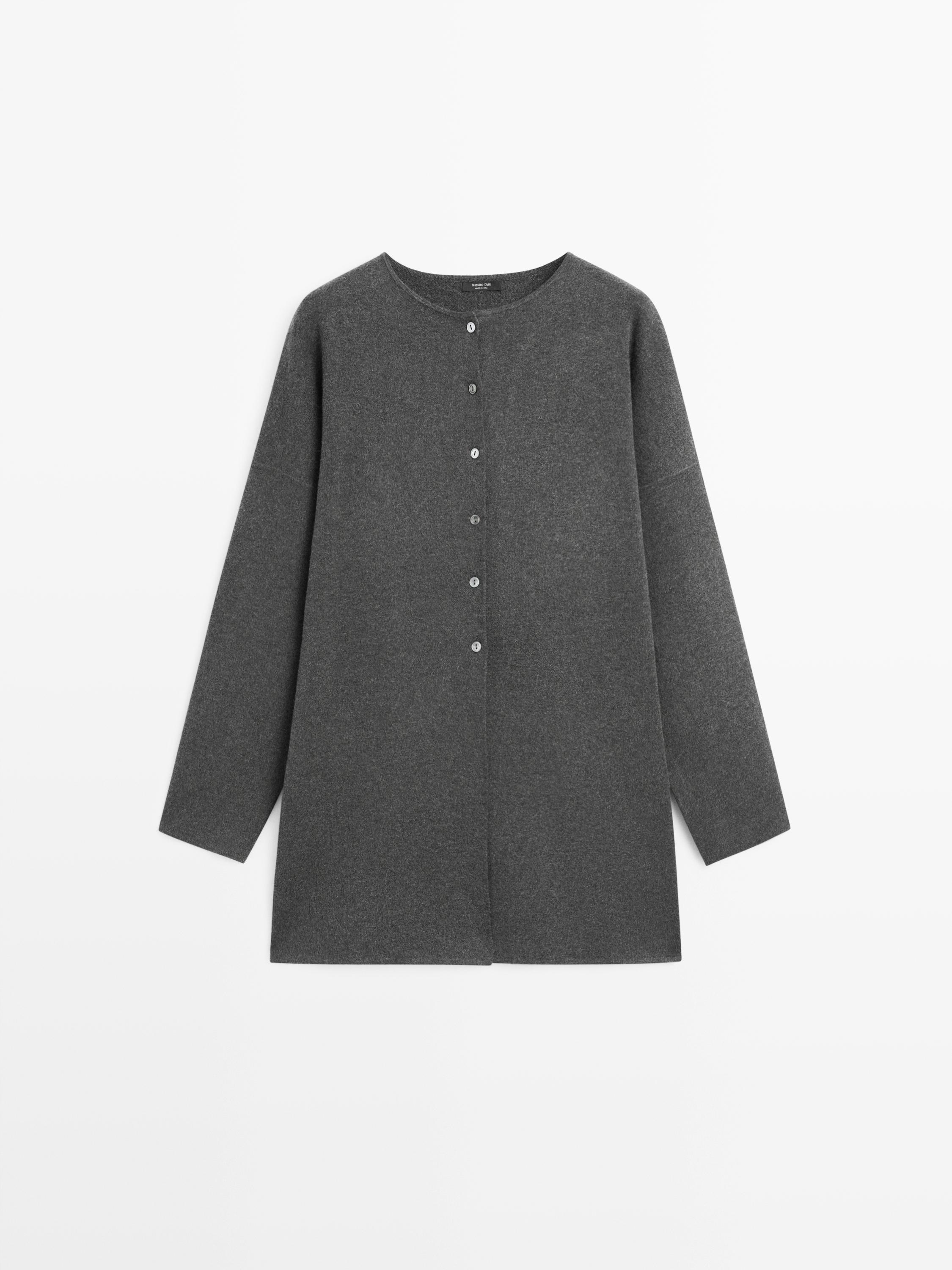 Massimo Dutti Длинный вязаный кардиган с круглым вырезом, серый