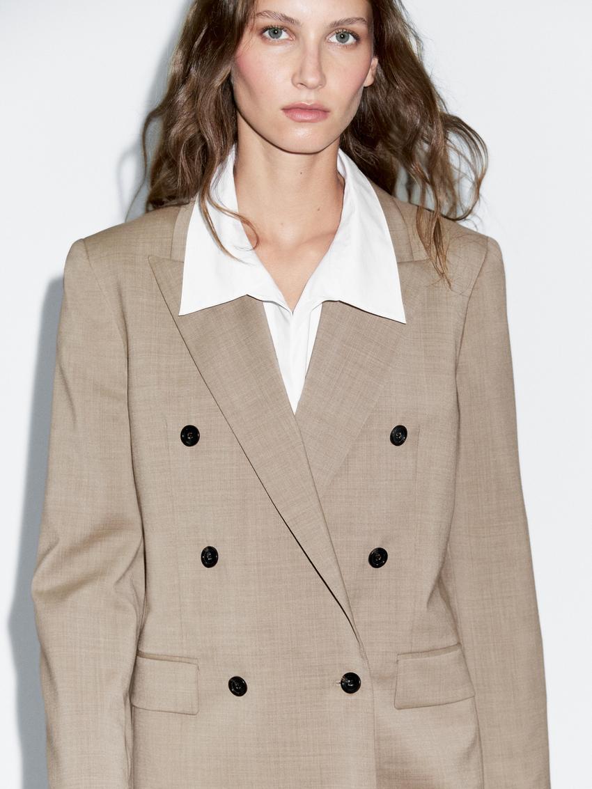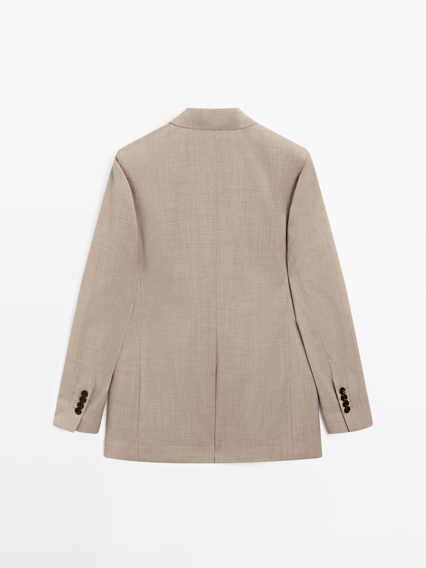 Massimo Dutti Двубортный пиджак из 100% шерсти, бежевый
