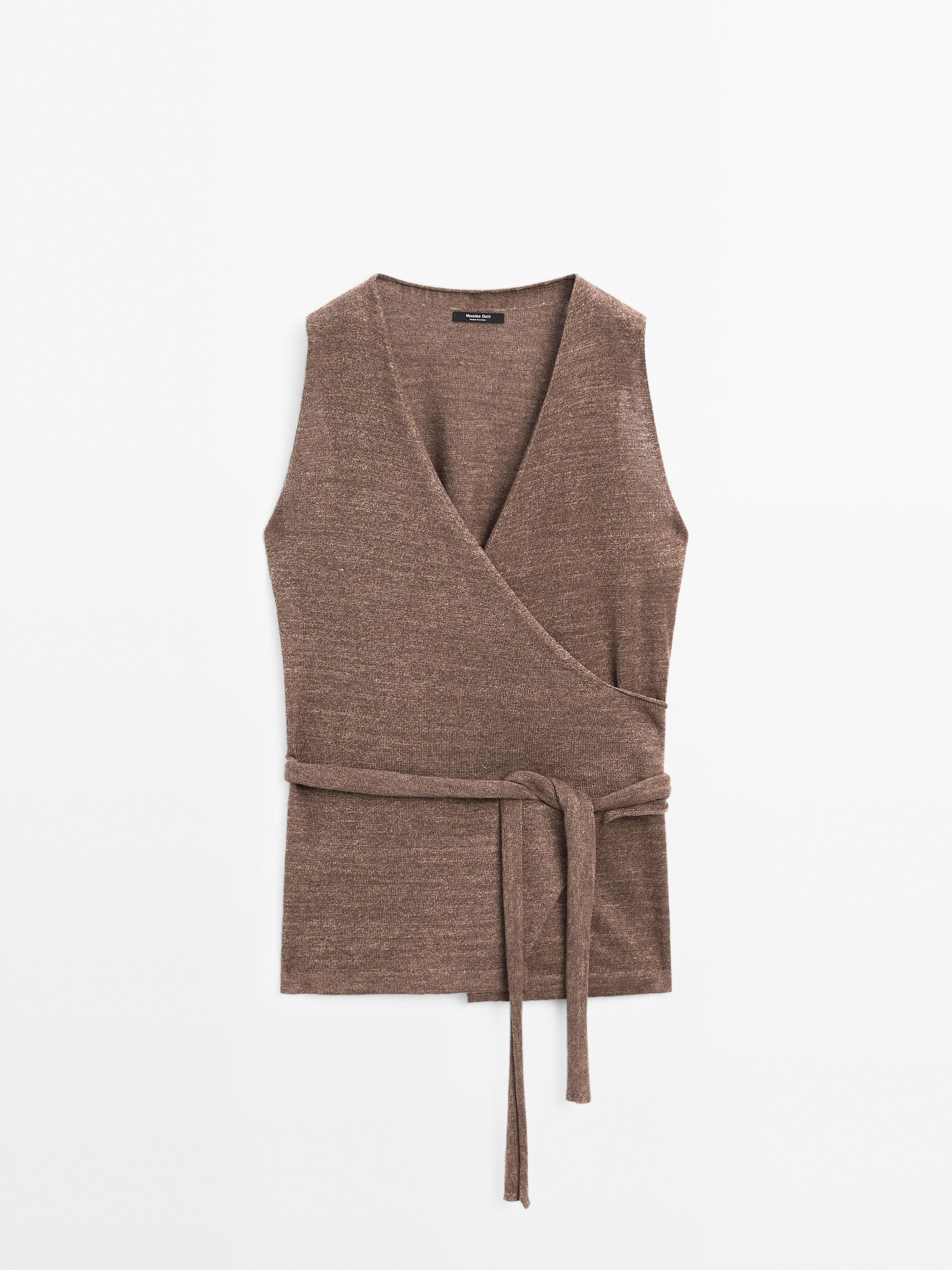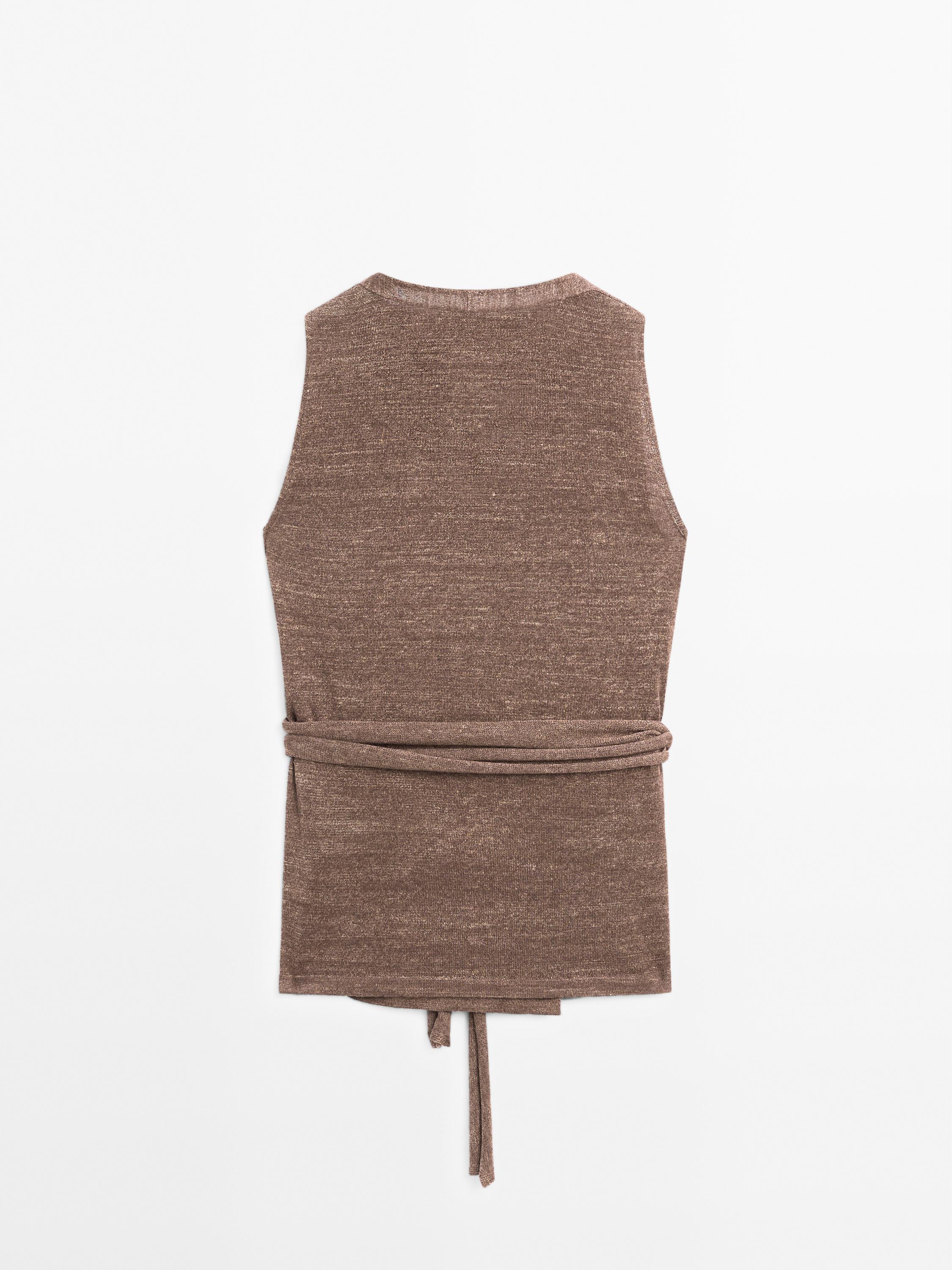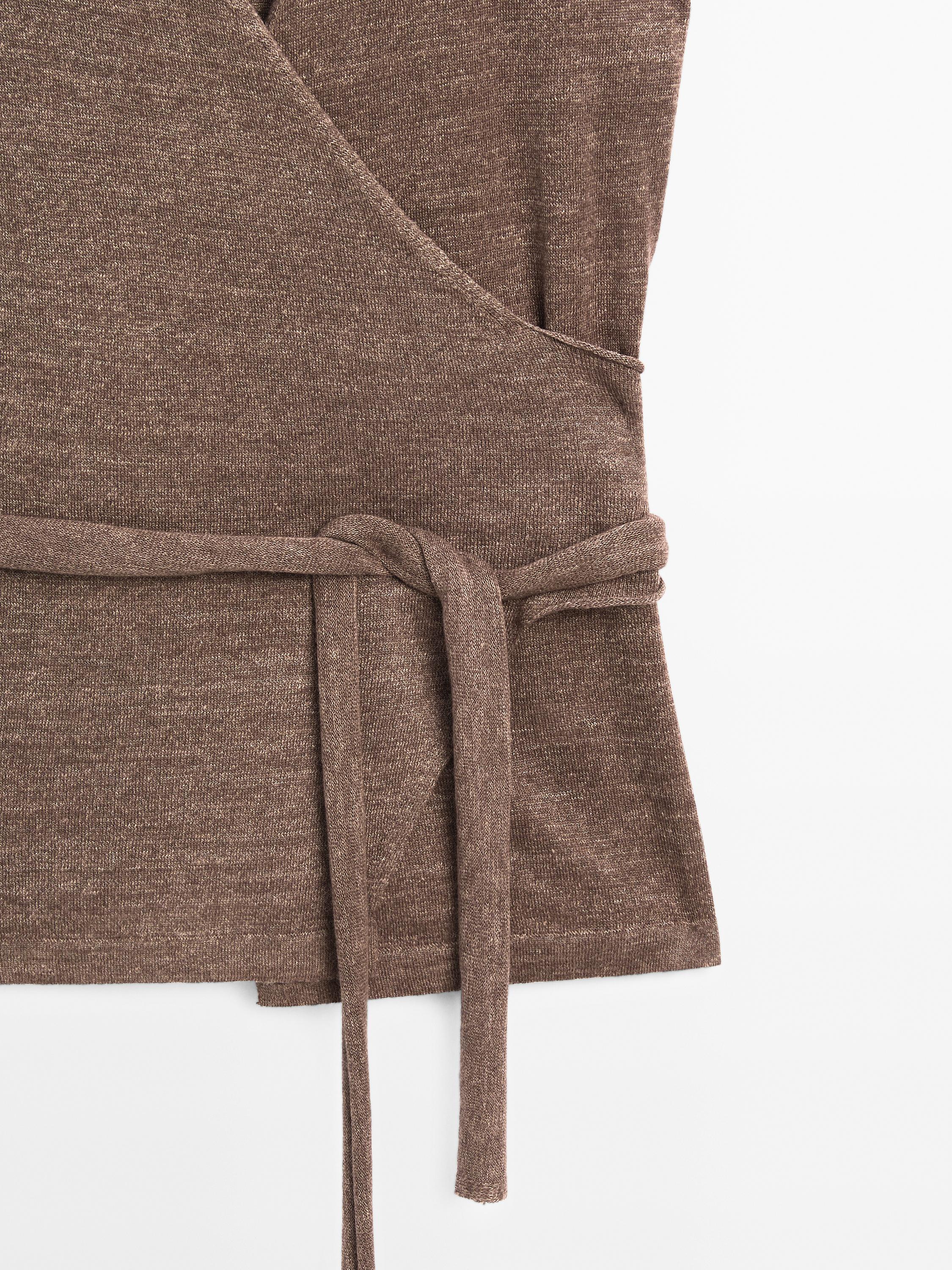 Massimo Dutti Двубортный трикотажный топ из смесовой льняной ткани, коричневый