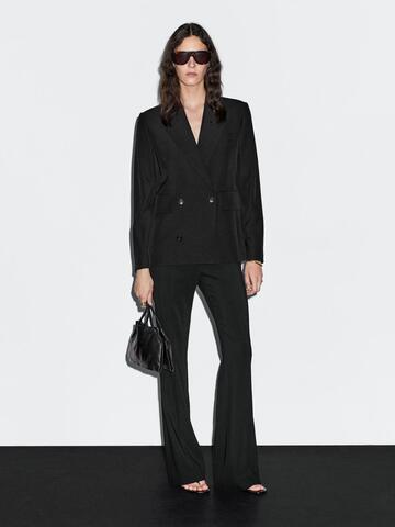 Massimo Dutti Двубортный укороченный блейзер из смесовой шерсти, черный