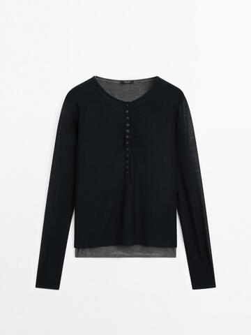 Massimo Dutti Двухслойная футболка с пуговицами, черный