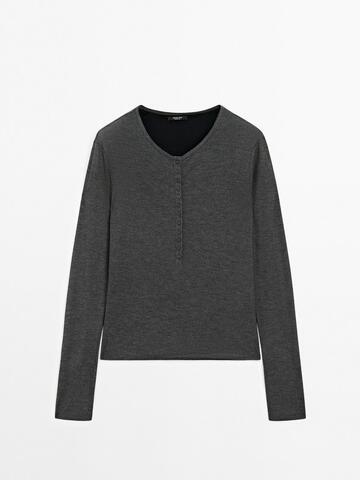 Massimo Dutti Двухслойная футболка с пуговицами, серый