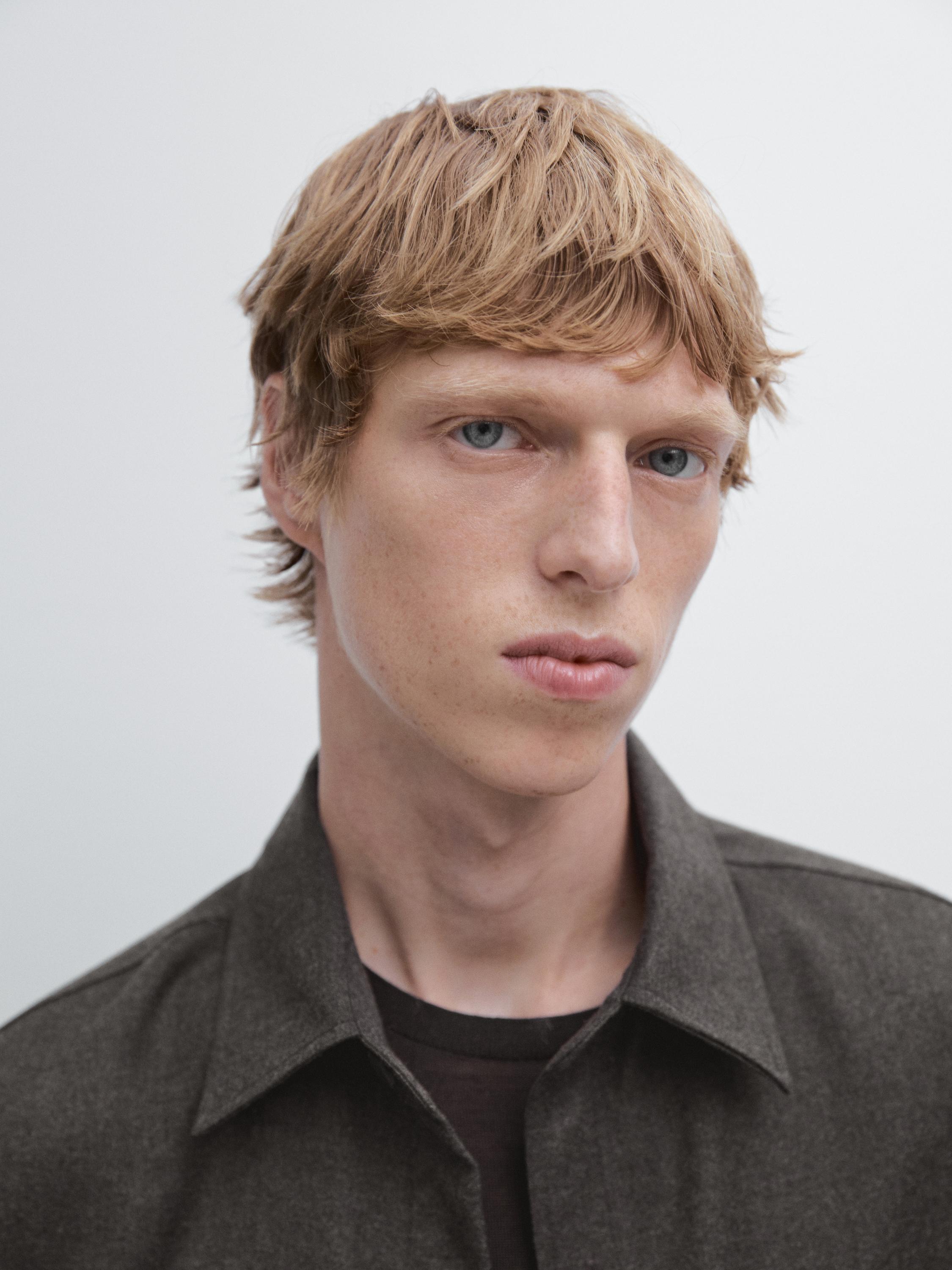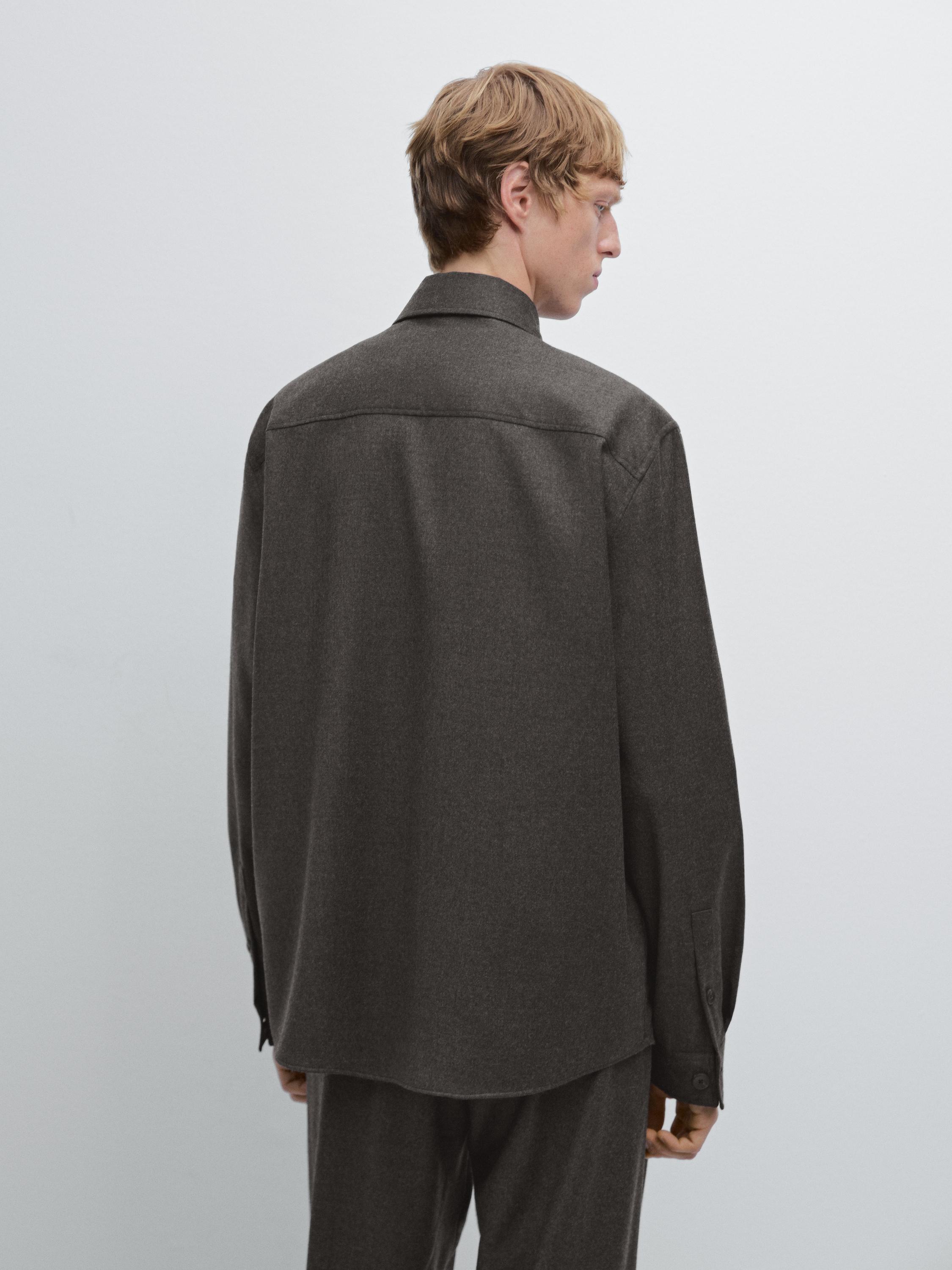 Massimo Dutti Двухслойная куртка-рубашка классического кроя из 100% шерсти, норка