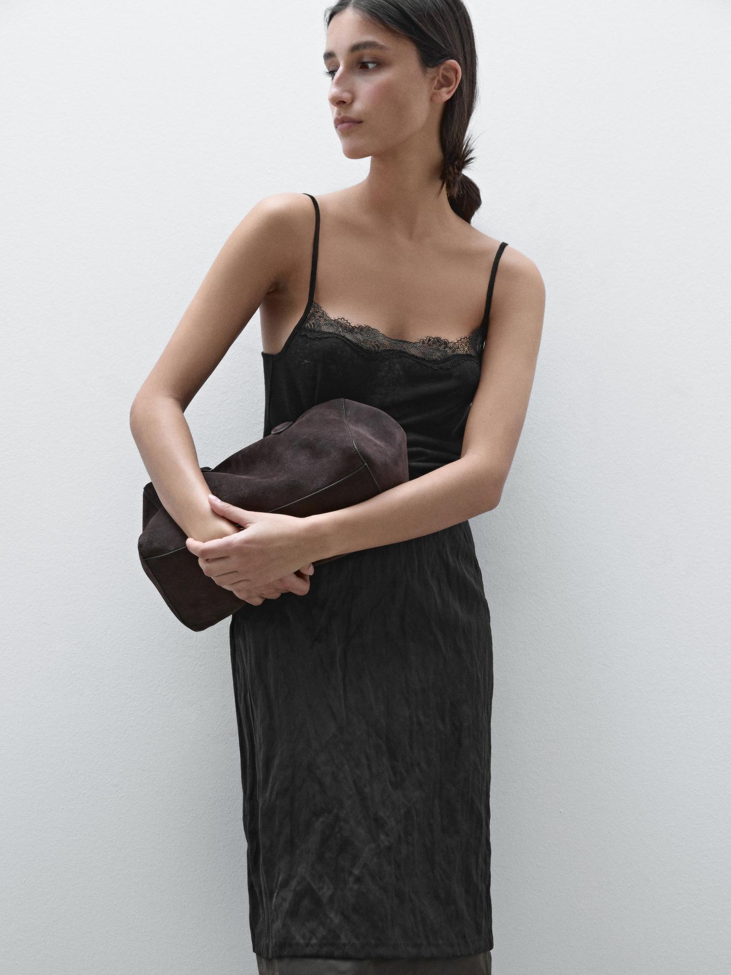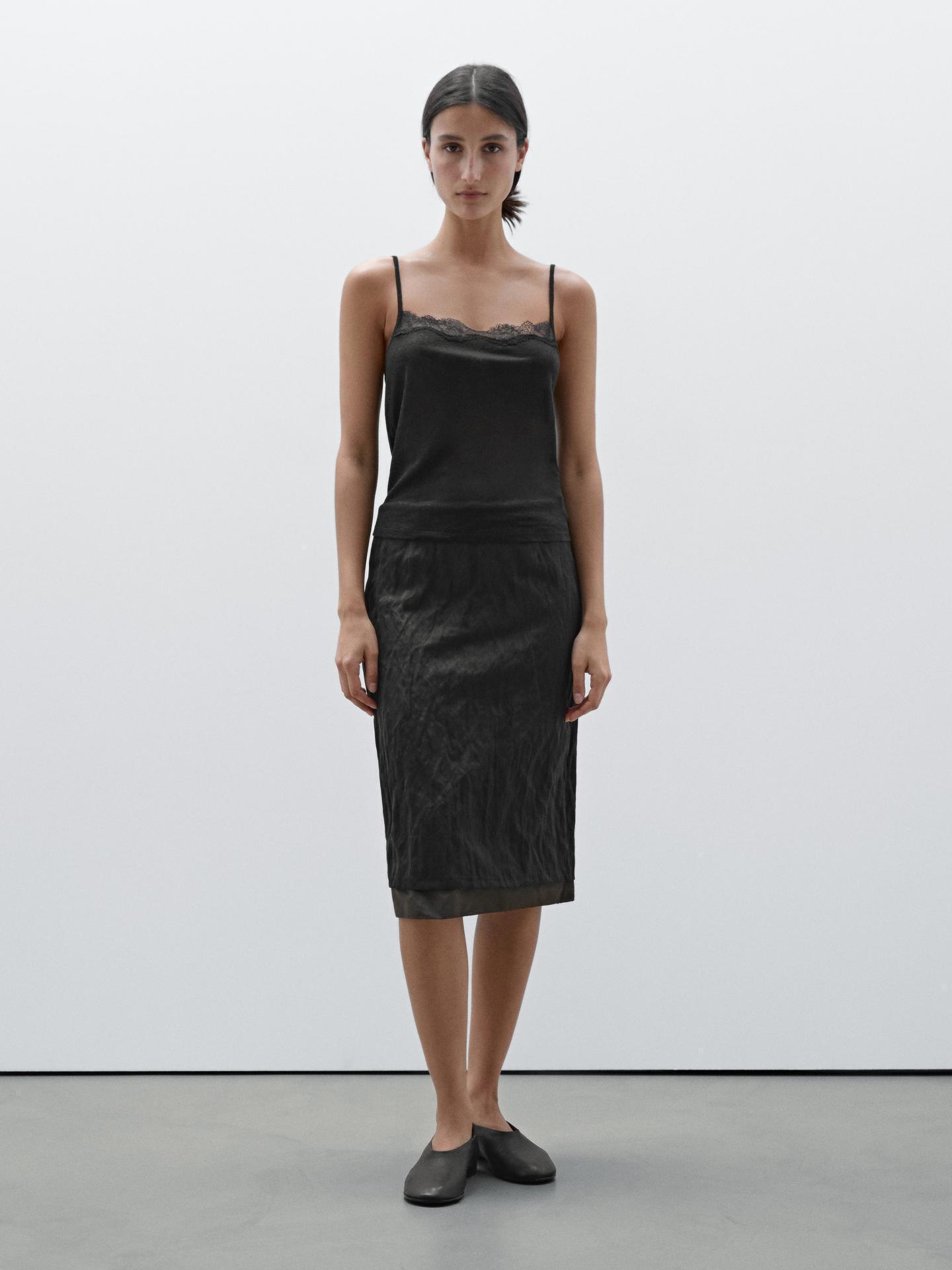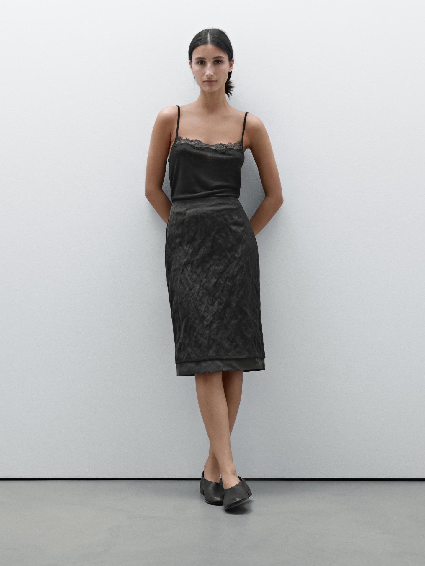 Massimo Dutti Двухслойная юбка из рельефной ткани, черный