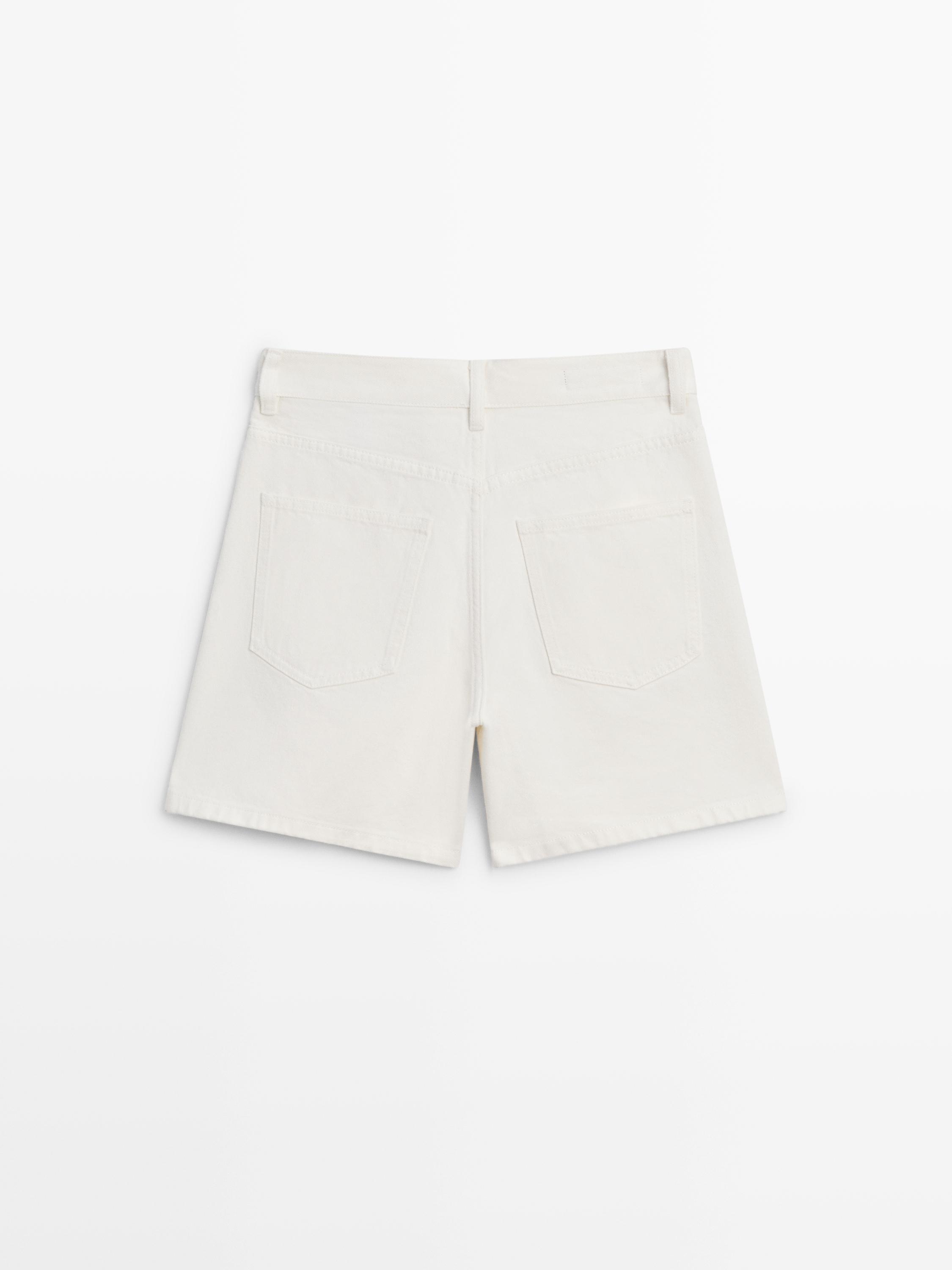 Massimo Dutti Джинсовые шорты со средней посадкой, экрю