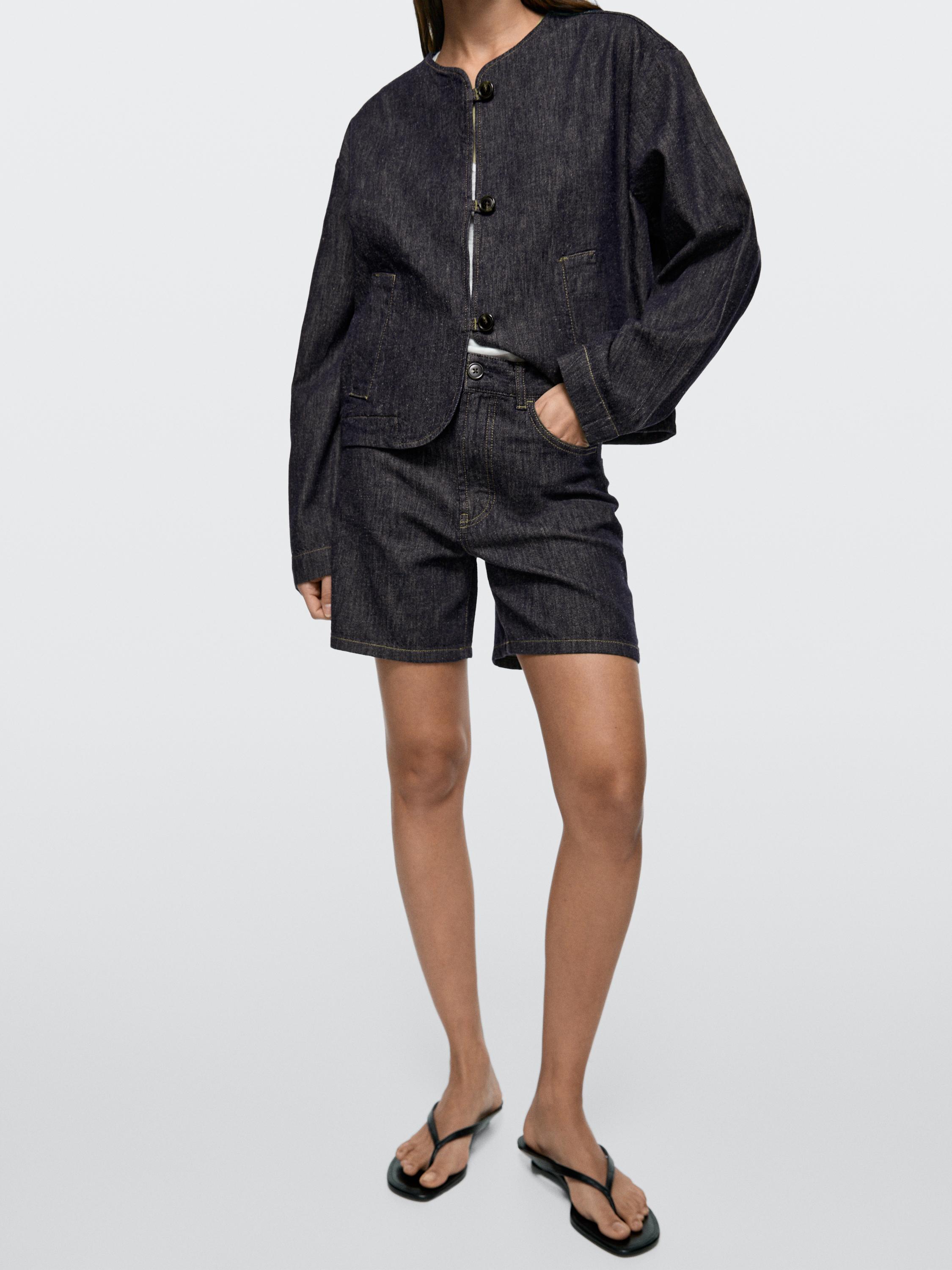Massimo Dutti Джинсовые шорты со средней посадкой, темно-синий