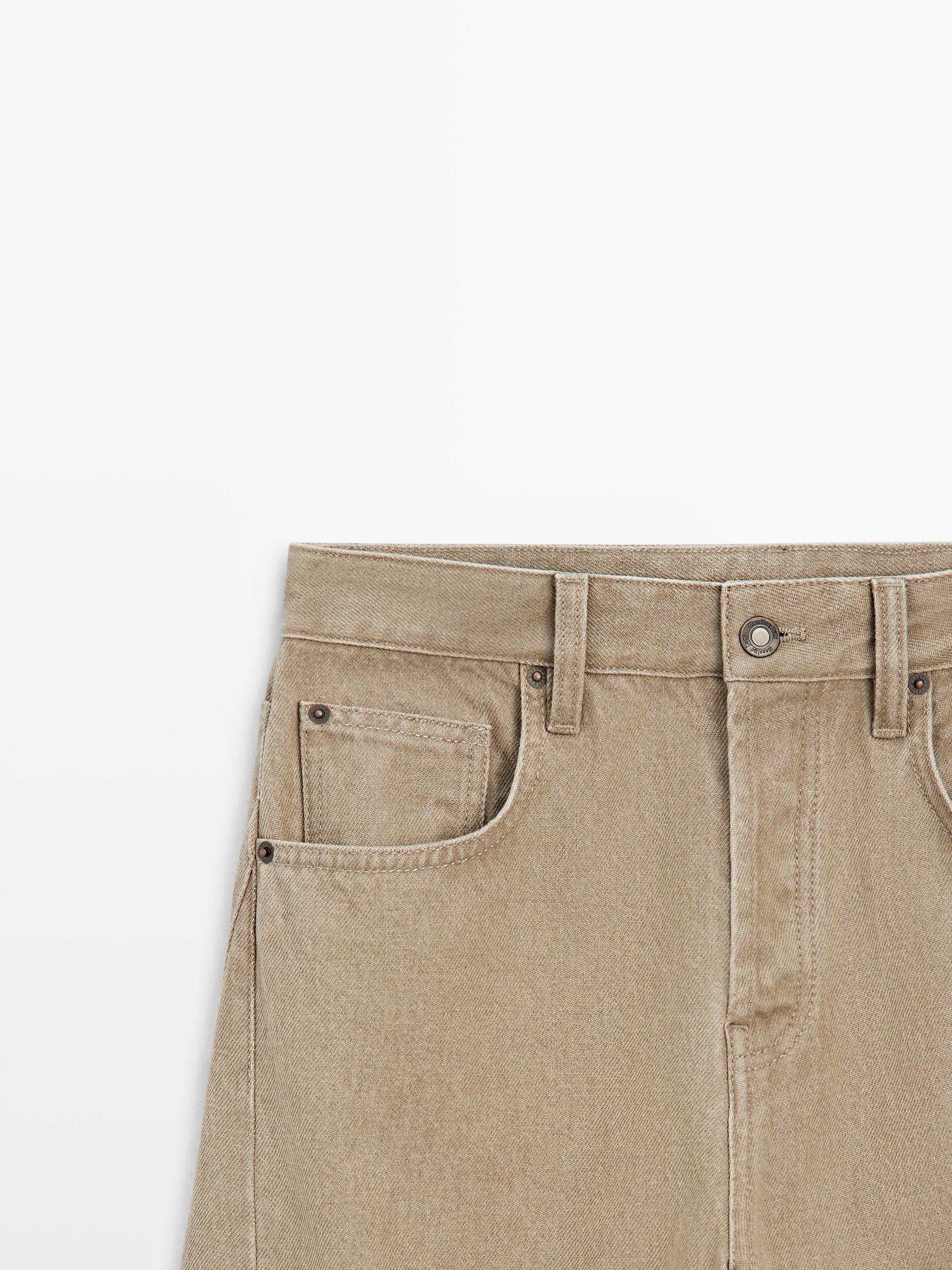 Massimo Dutti Джинсы-баллоны со средней посадкой, песочный