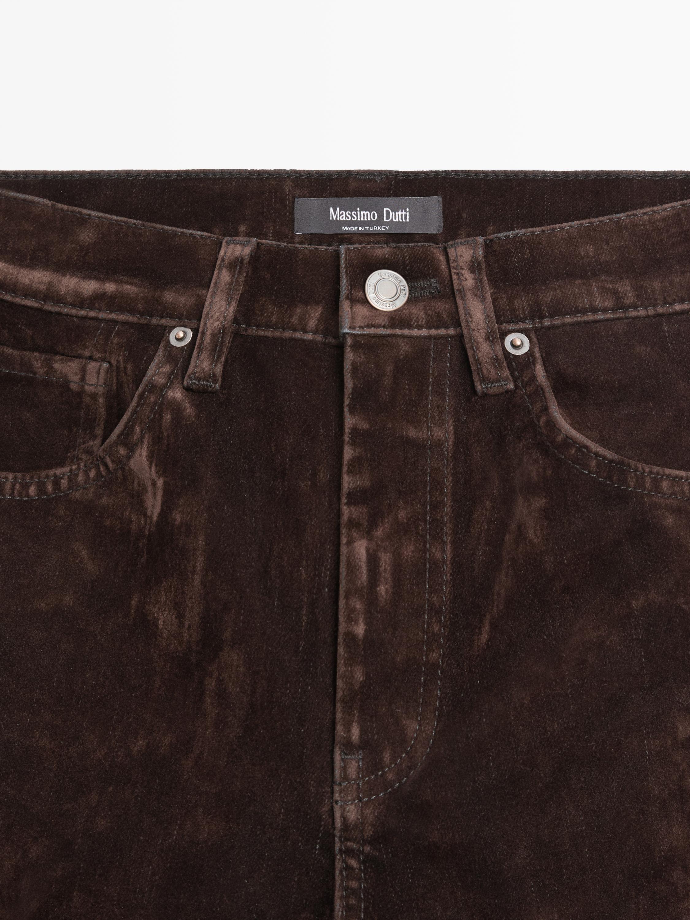 Massimo Dutti Джинсы bootcut с высокой талией и флокированным узором, шоколадный