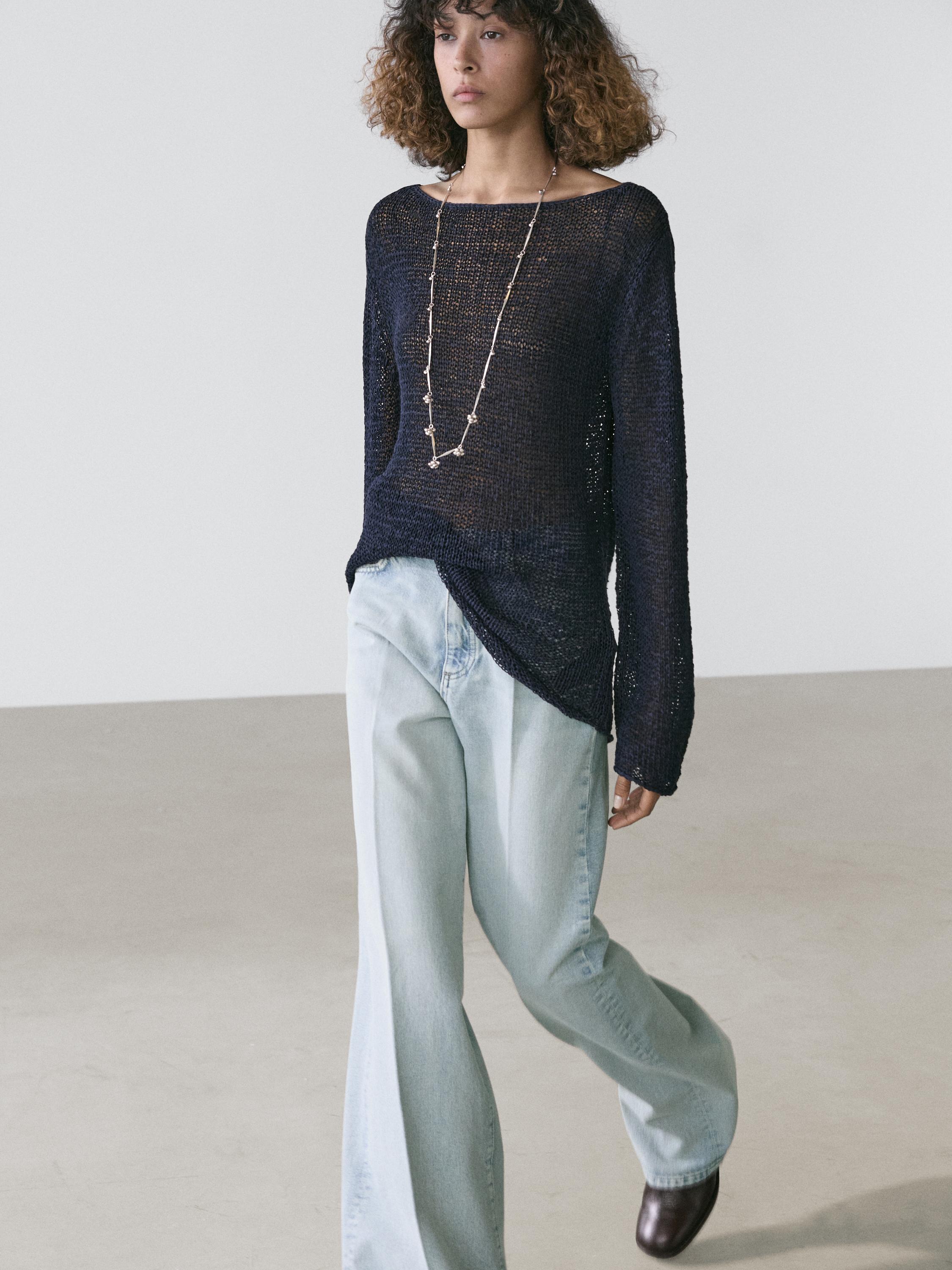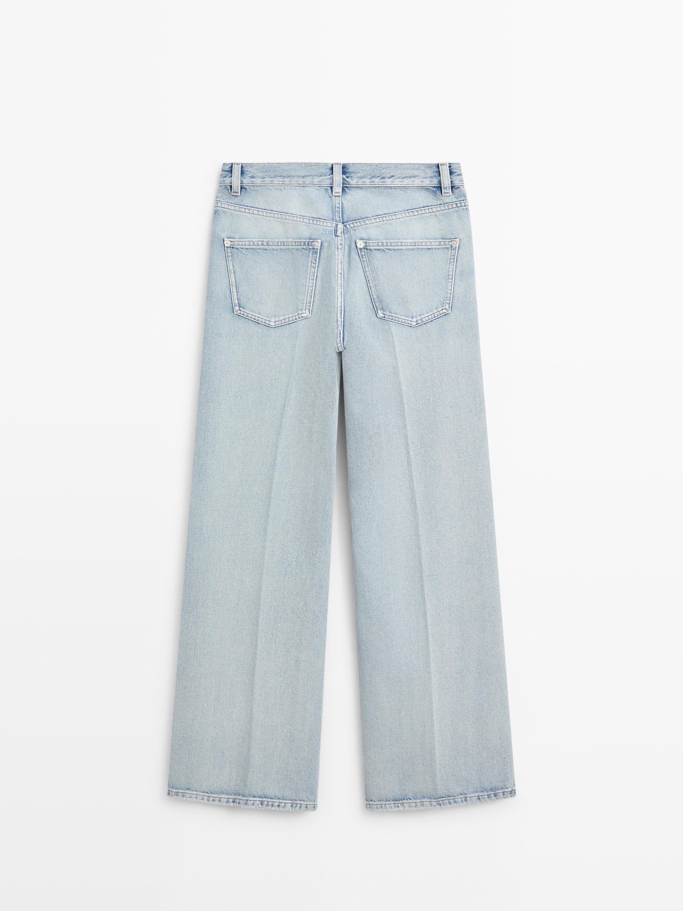 Massimo Dutti Джинсы-палаццо с высокой талией, светло-голубой