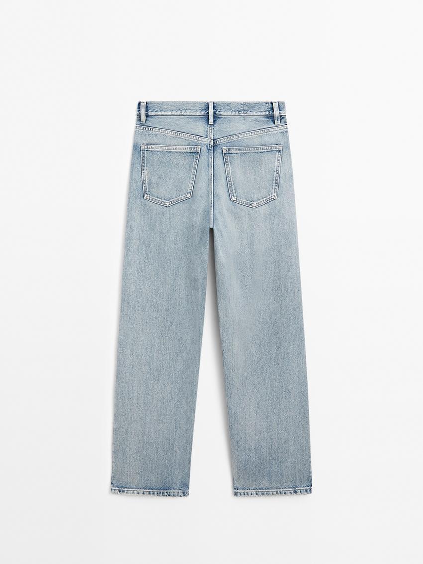 Massimo Dutti Джинсы прямого кроя из смесового хлопка с высокой посадкой, голубой