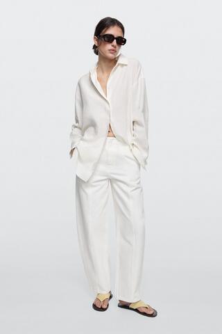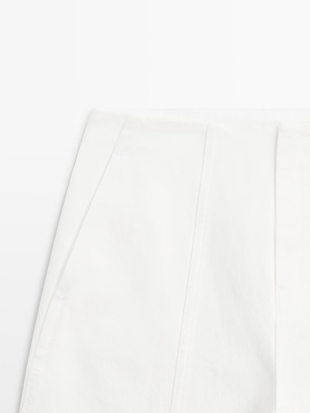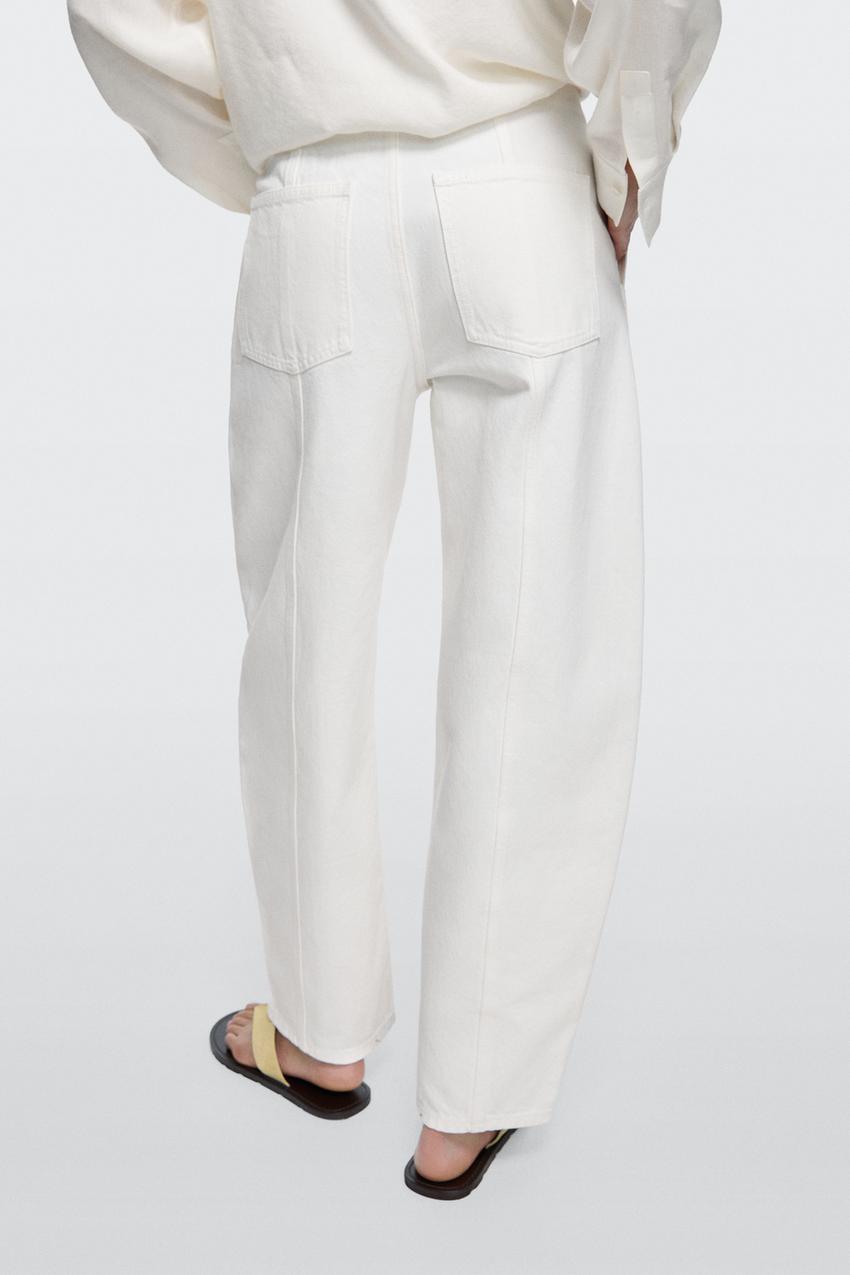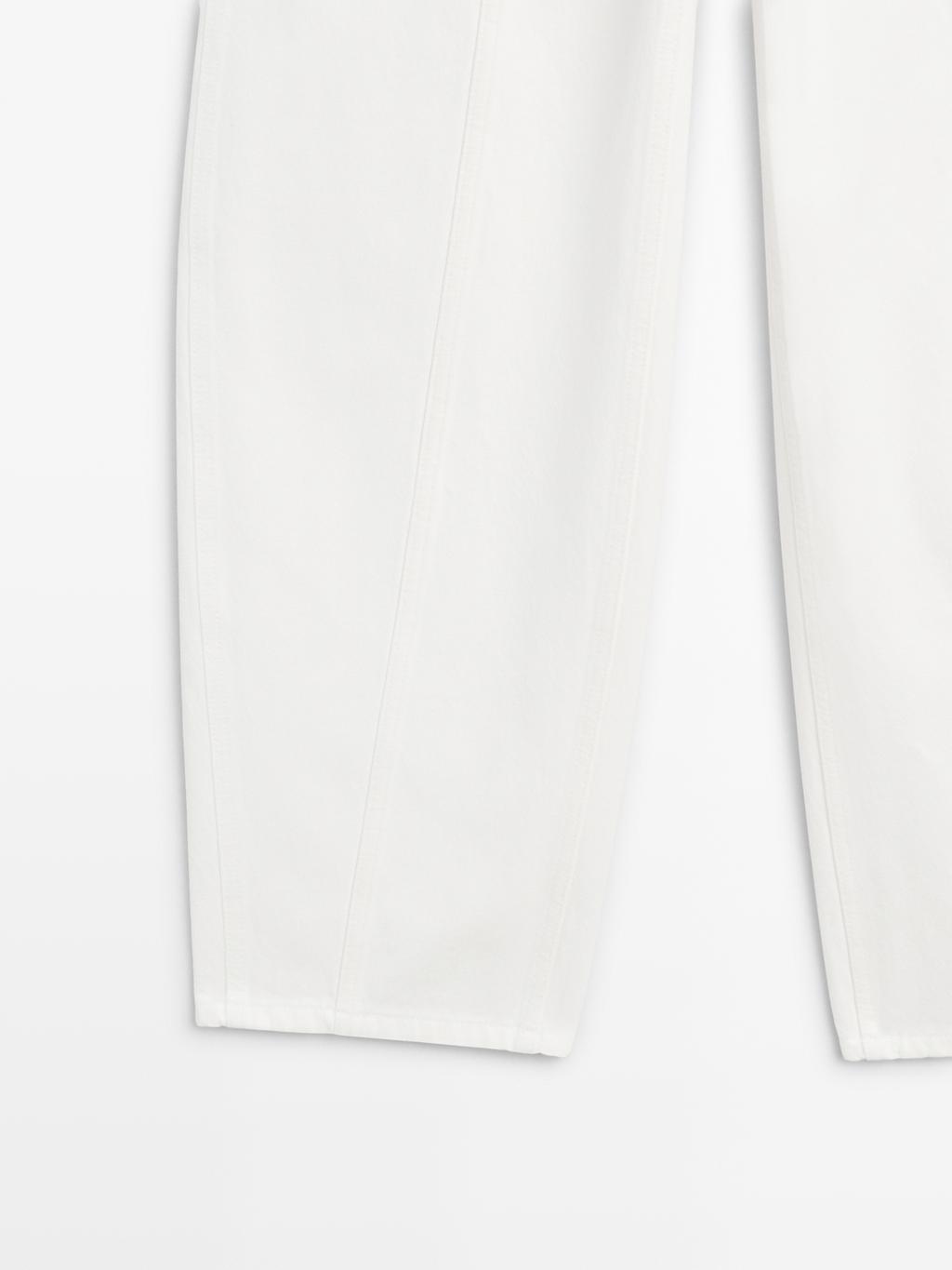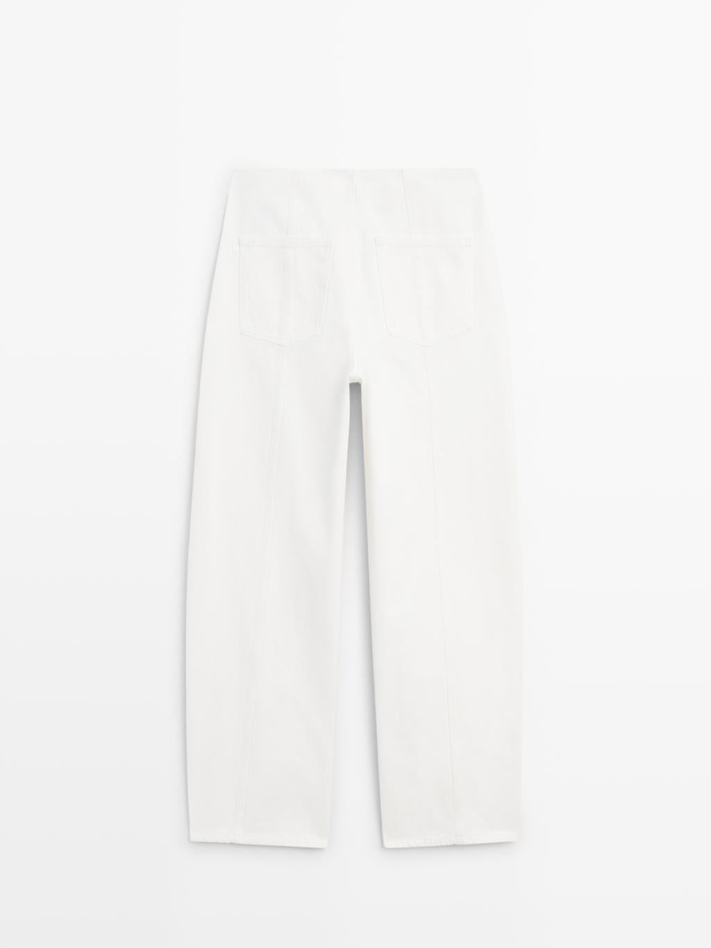 Джинсы Barrel Fit: этот крой имеет более широкую форму в бедрах и более узкие штанины к щиколотке, занимая промежуточное положение между узким и стандартным кроем. Застежка на молнию и крючок с внутренней пуговицей. Два боковых кармана. Два накладных кармана сзади. Детализация швов.
