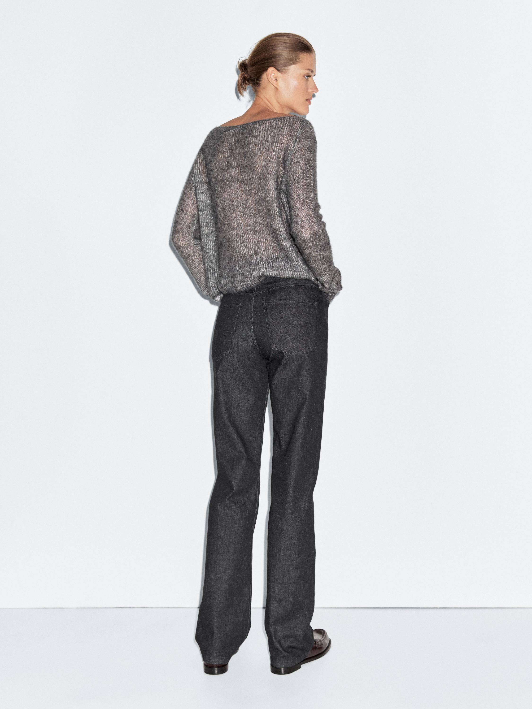 Massimo Dutti Джинсы прямого кроя с высокой талией, черный