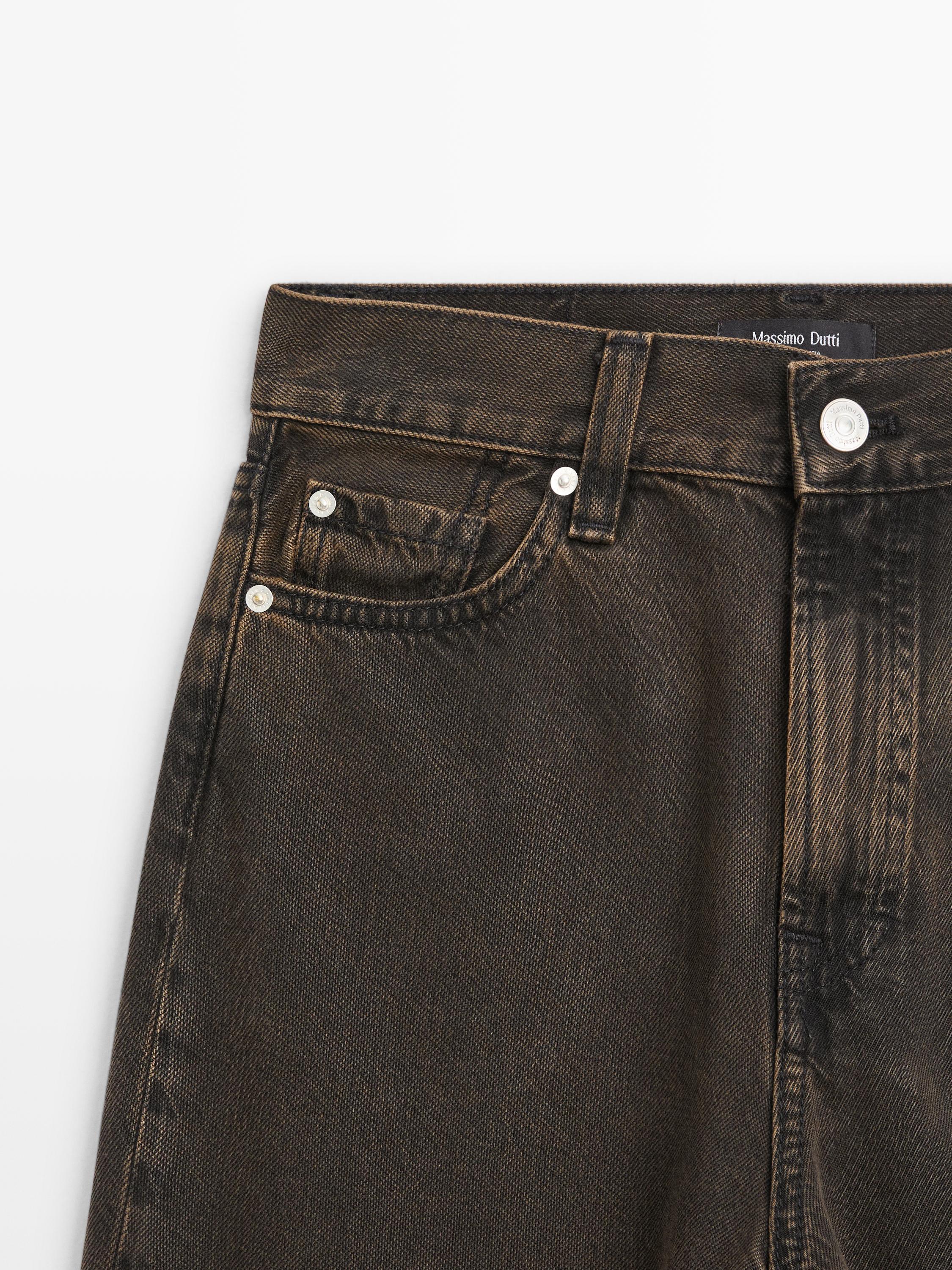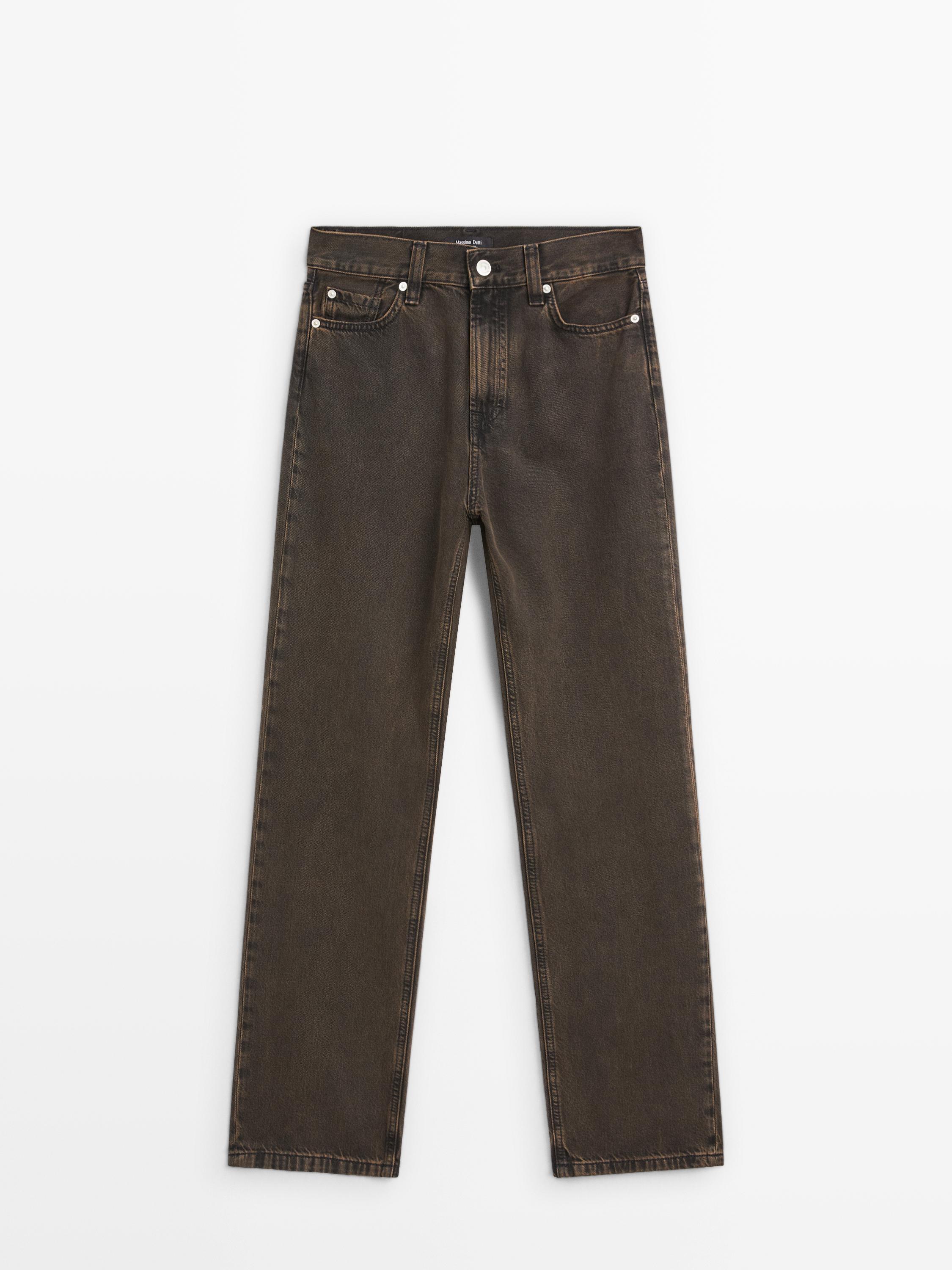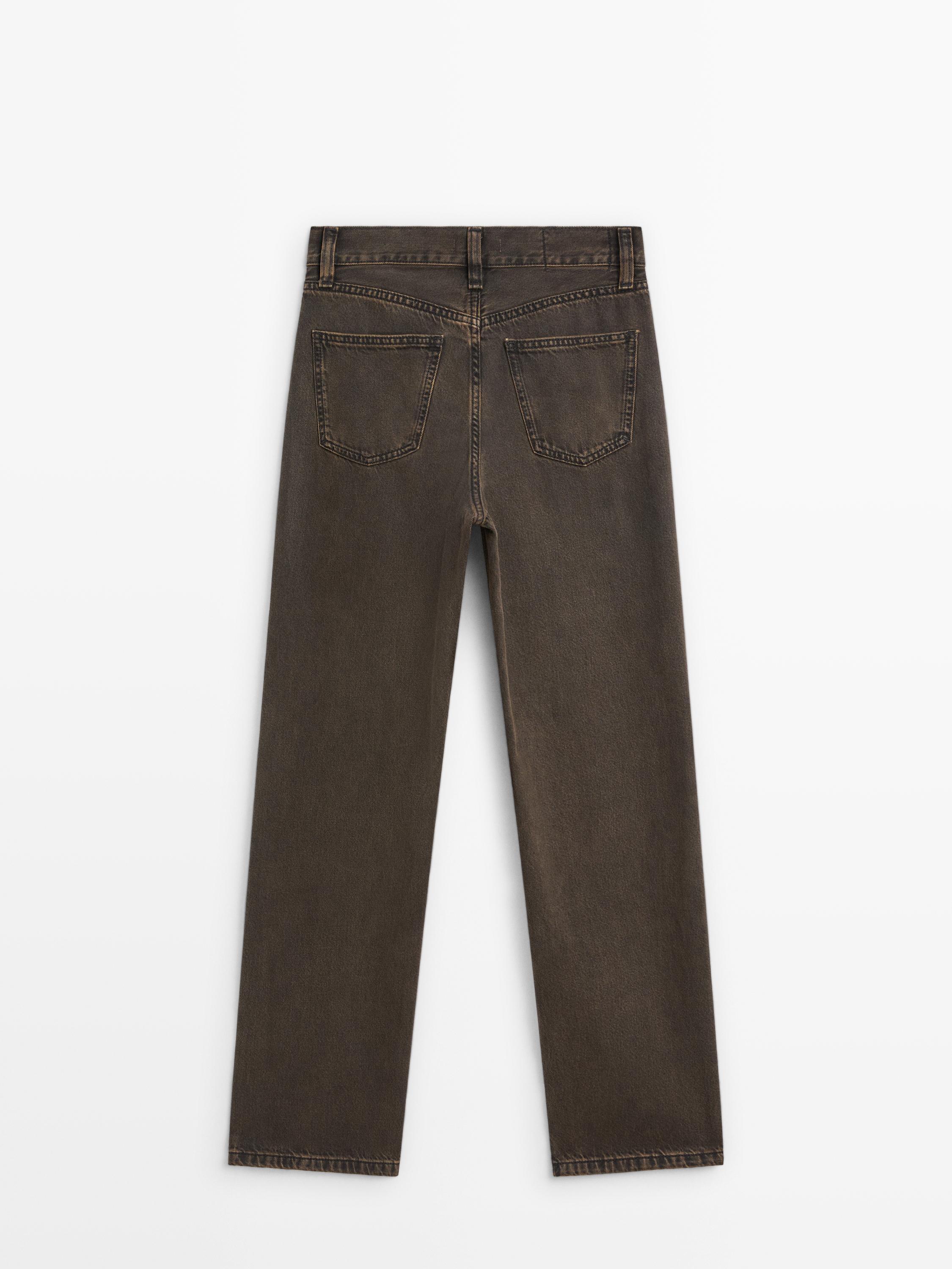 Massimo Dutti Джинсы прямого кроя с высокой талией, натуральный серый