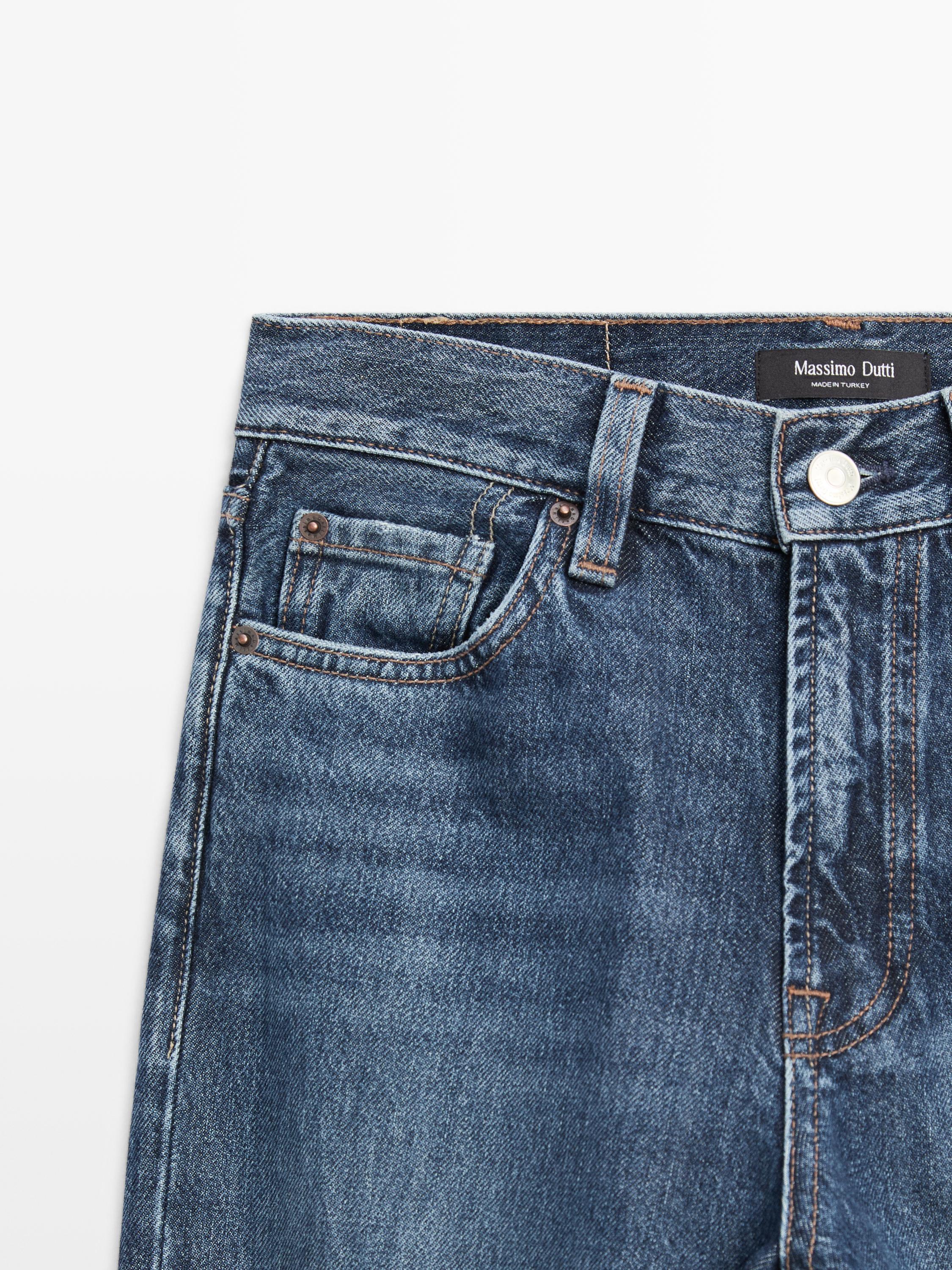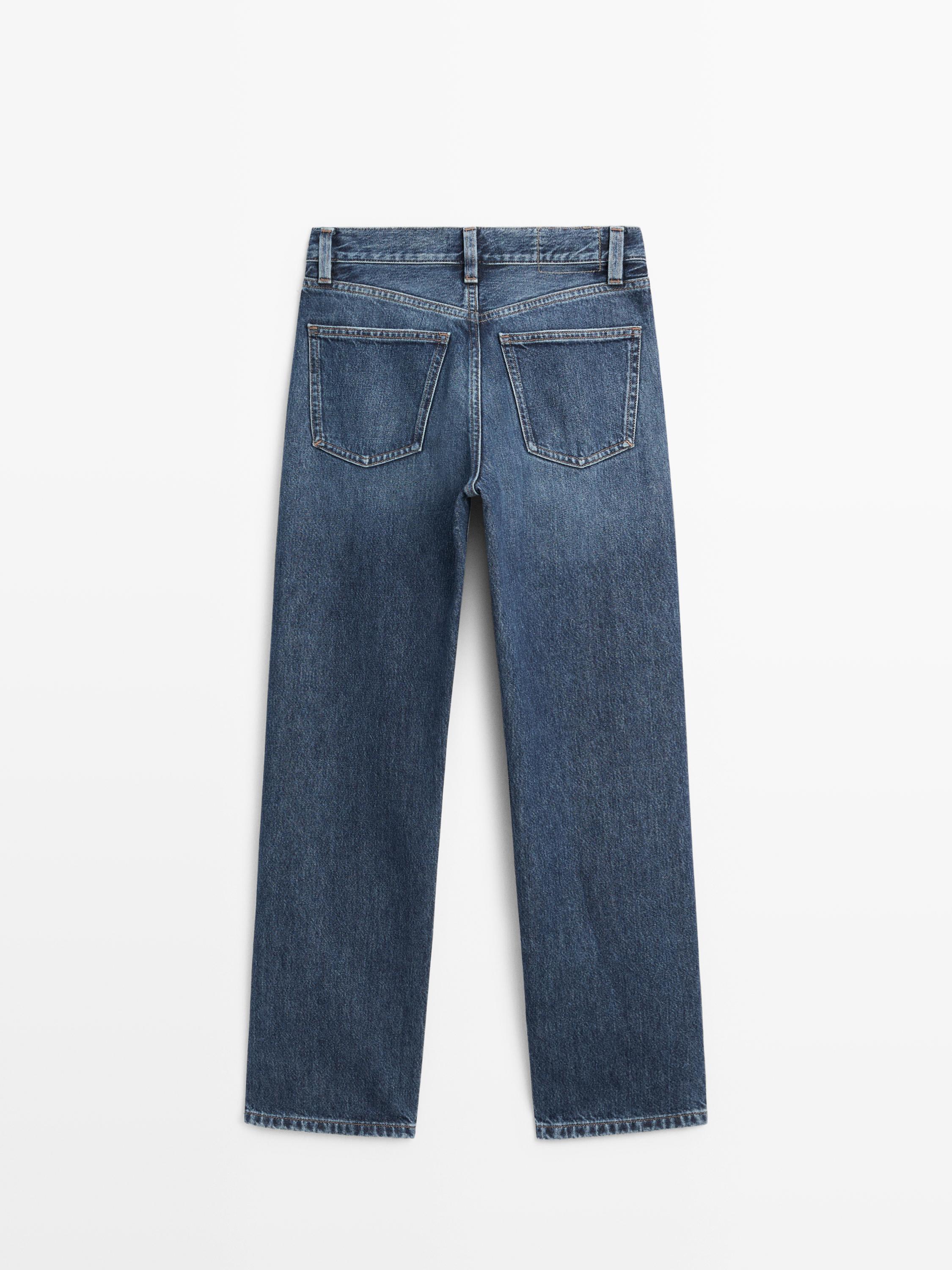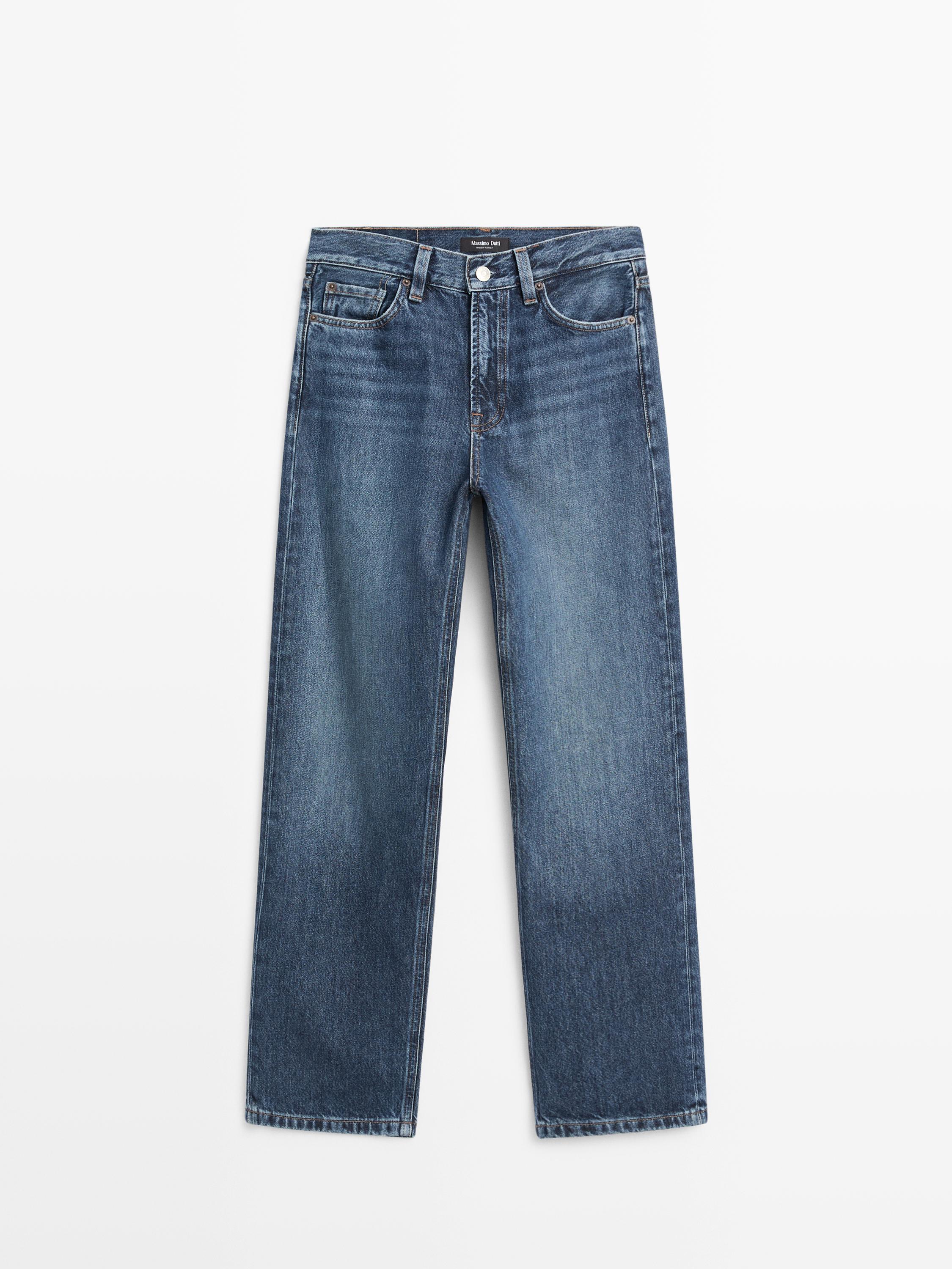 Massimo Dutti Джинсы прямого кроя с высокой талией, средне-синий