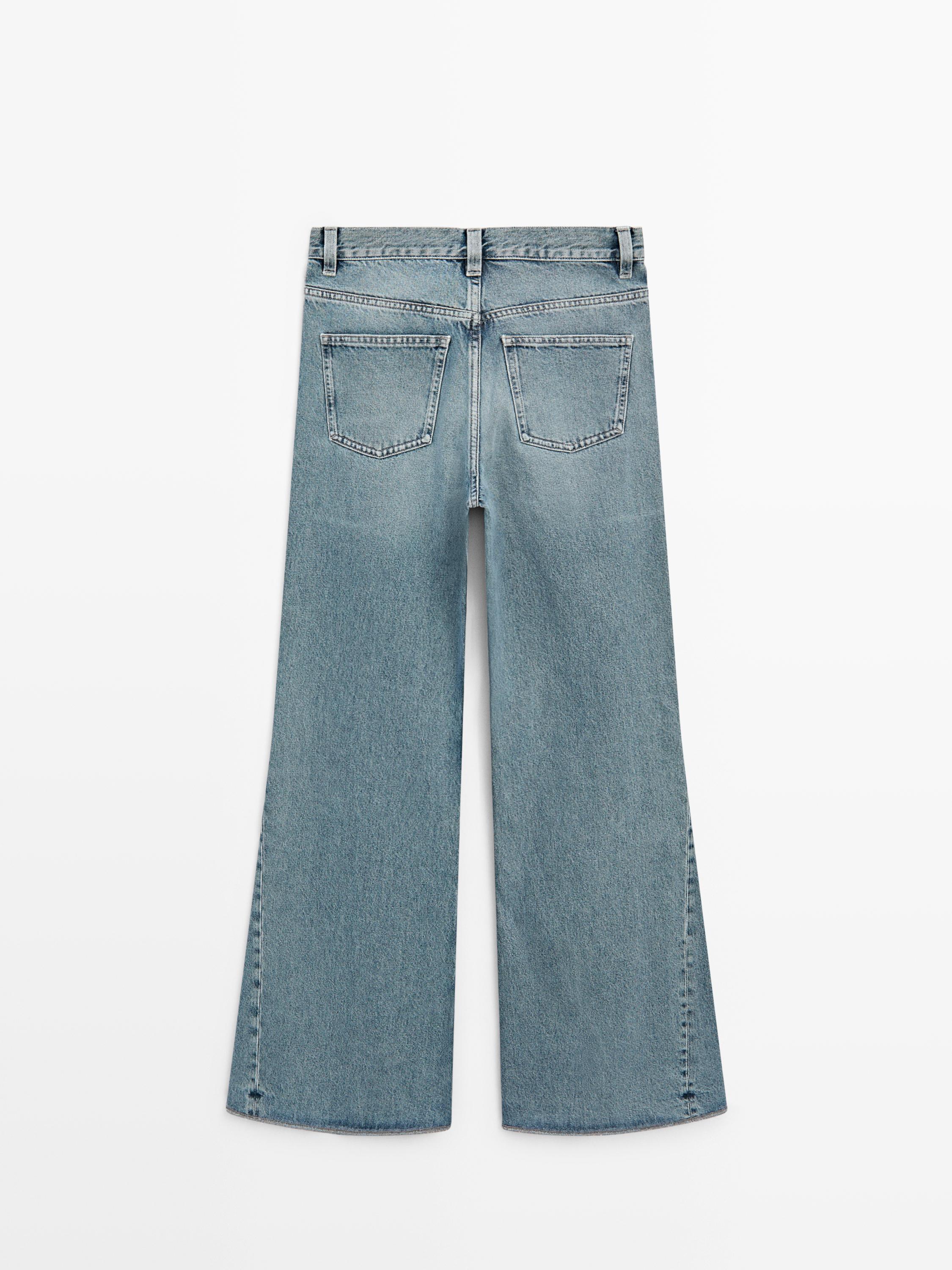 Massimo Dutti Джинсы с высокой талией и расклешенным кроем, светло-голубой