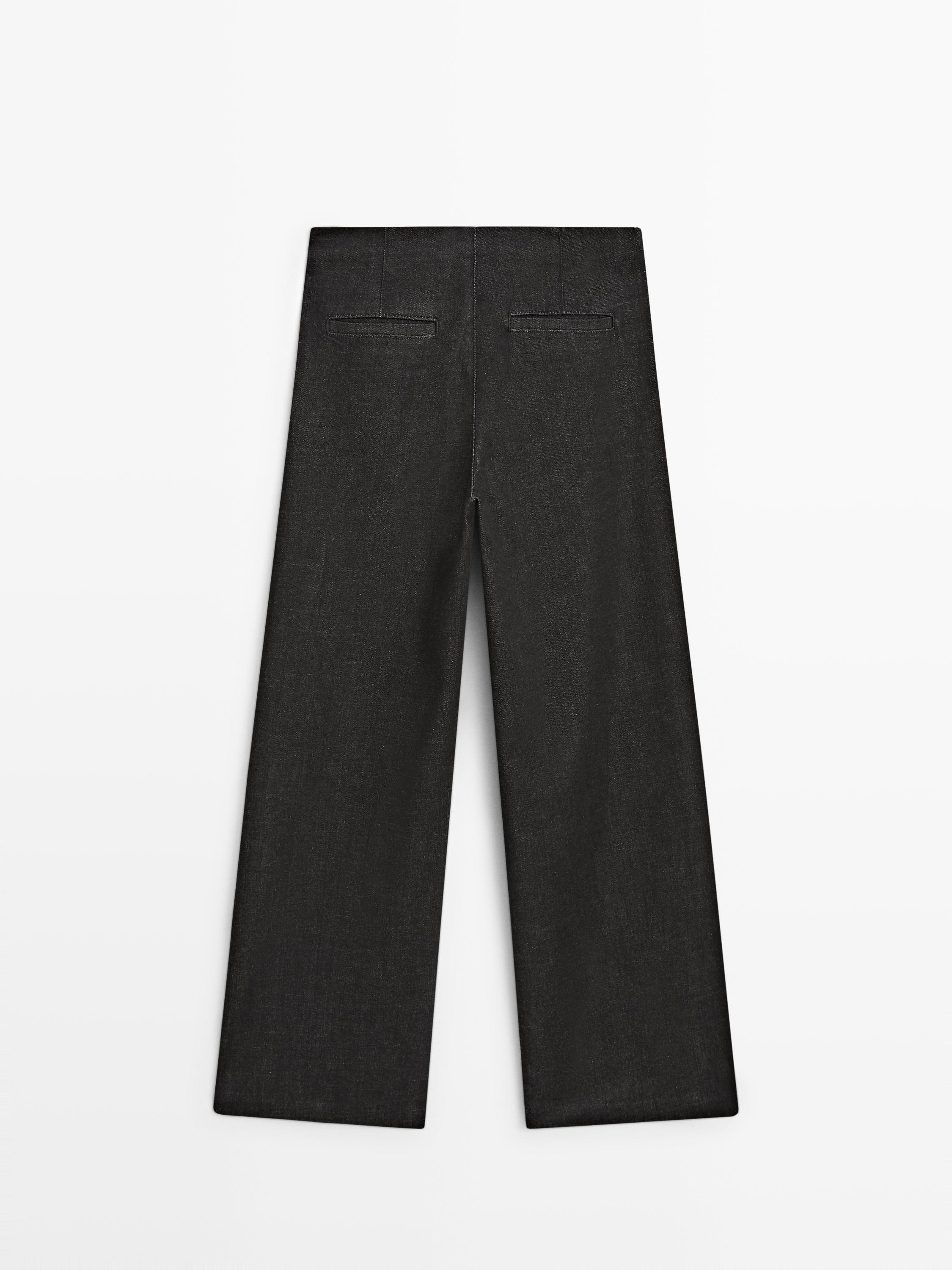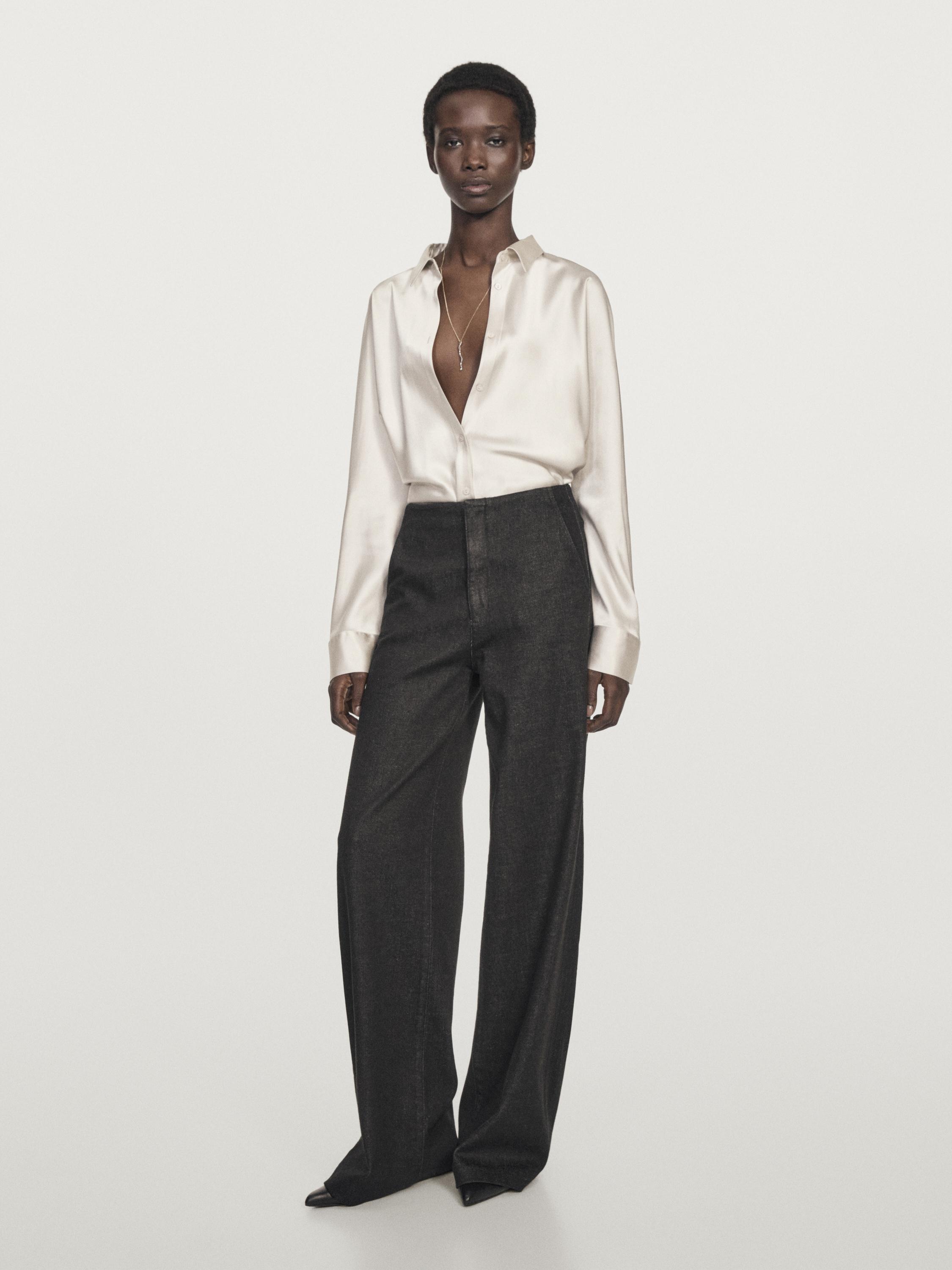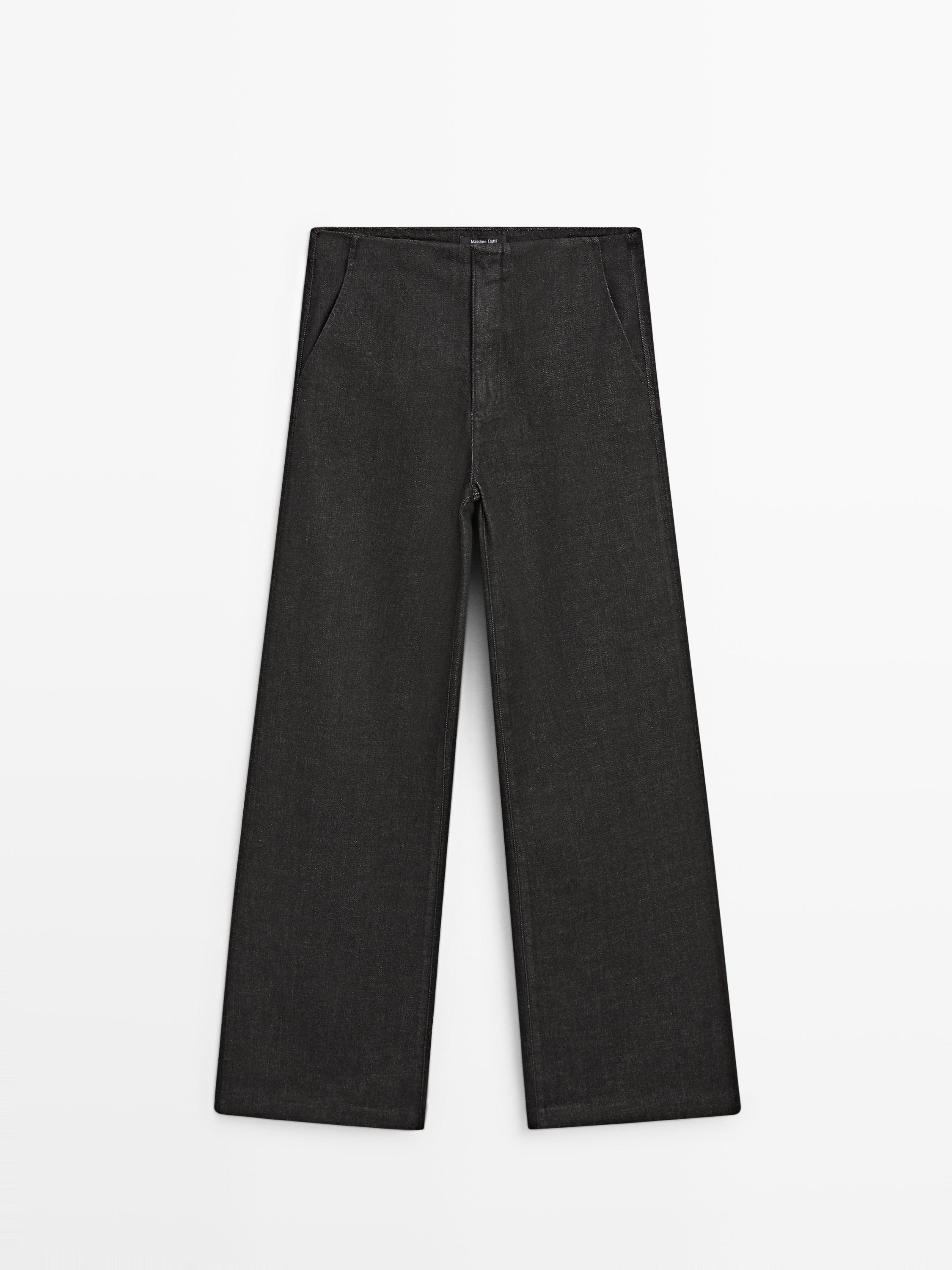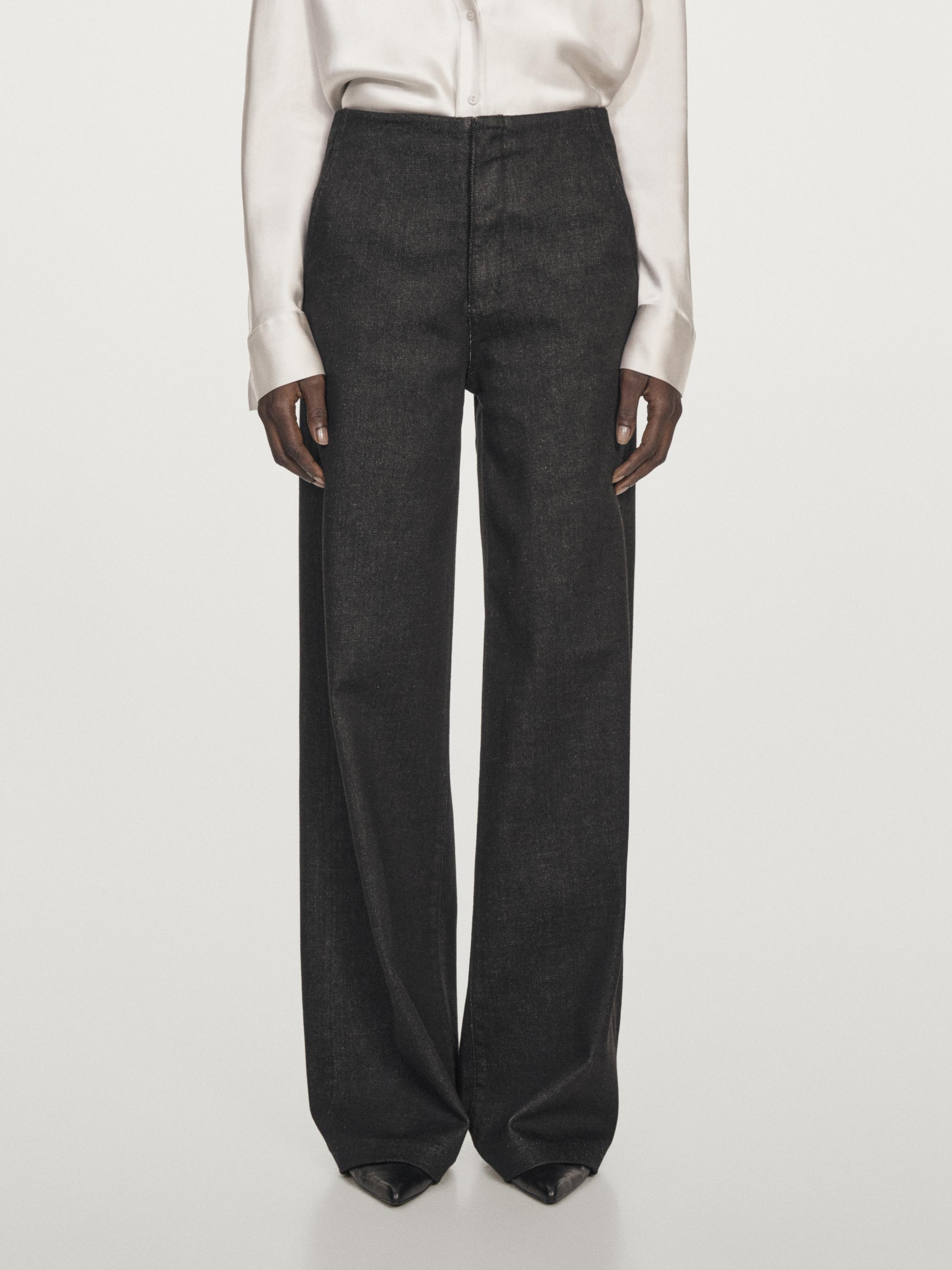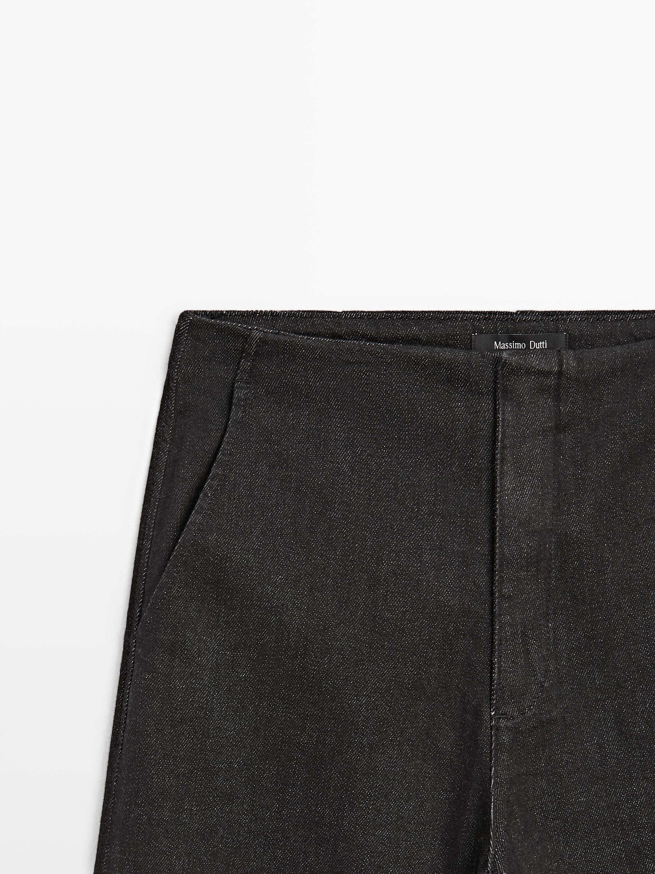 Massimo Dutti Джинсы с высокой талией и широкими штанинами, черный