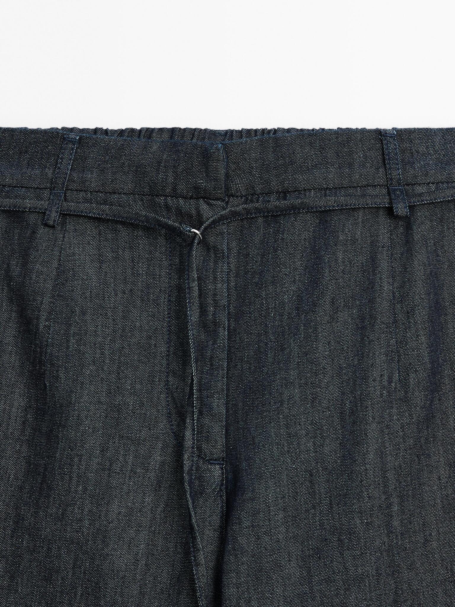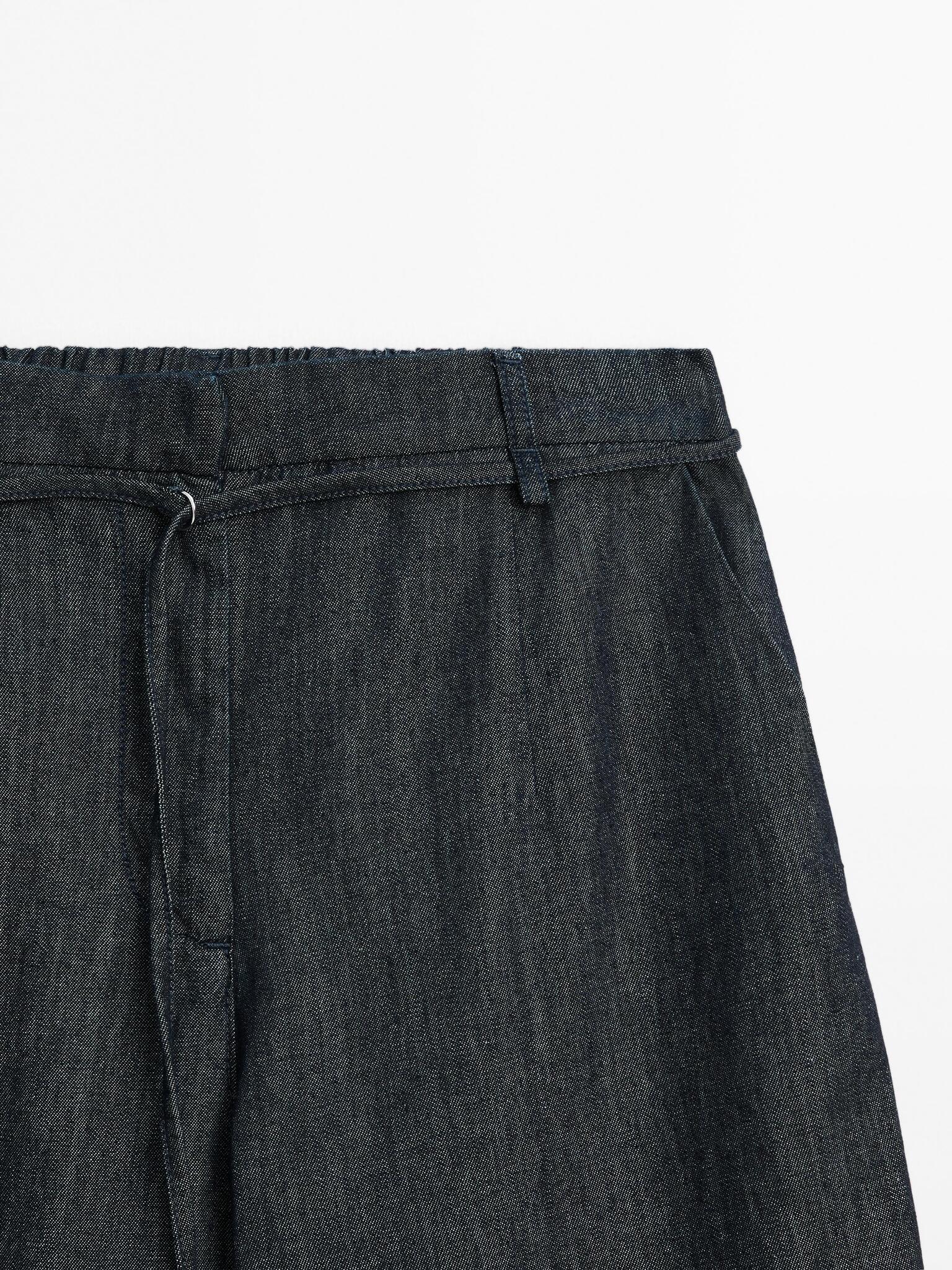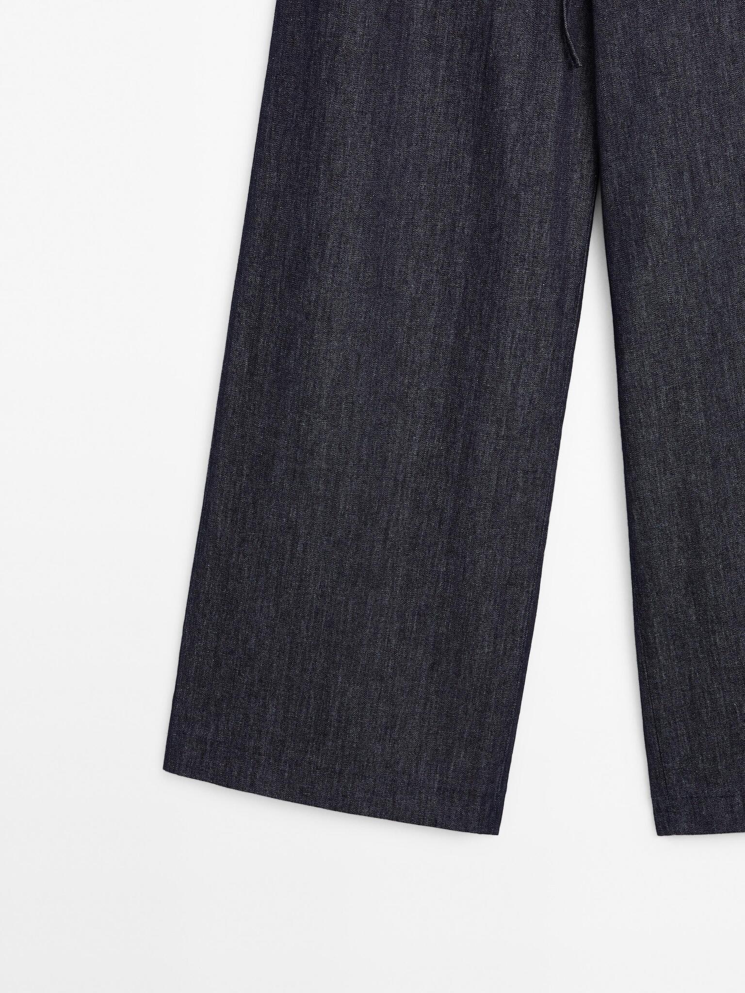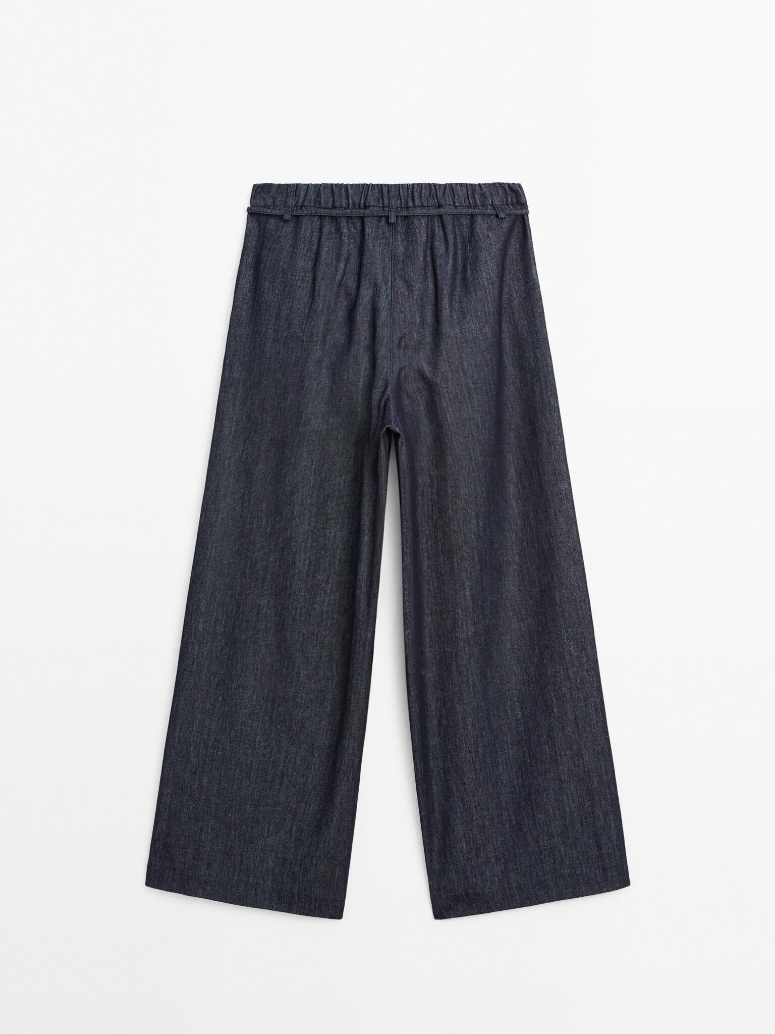 Massimo Dutti Джинсы с высокой талией и широкими штанинами, с ремнем, синий