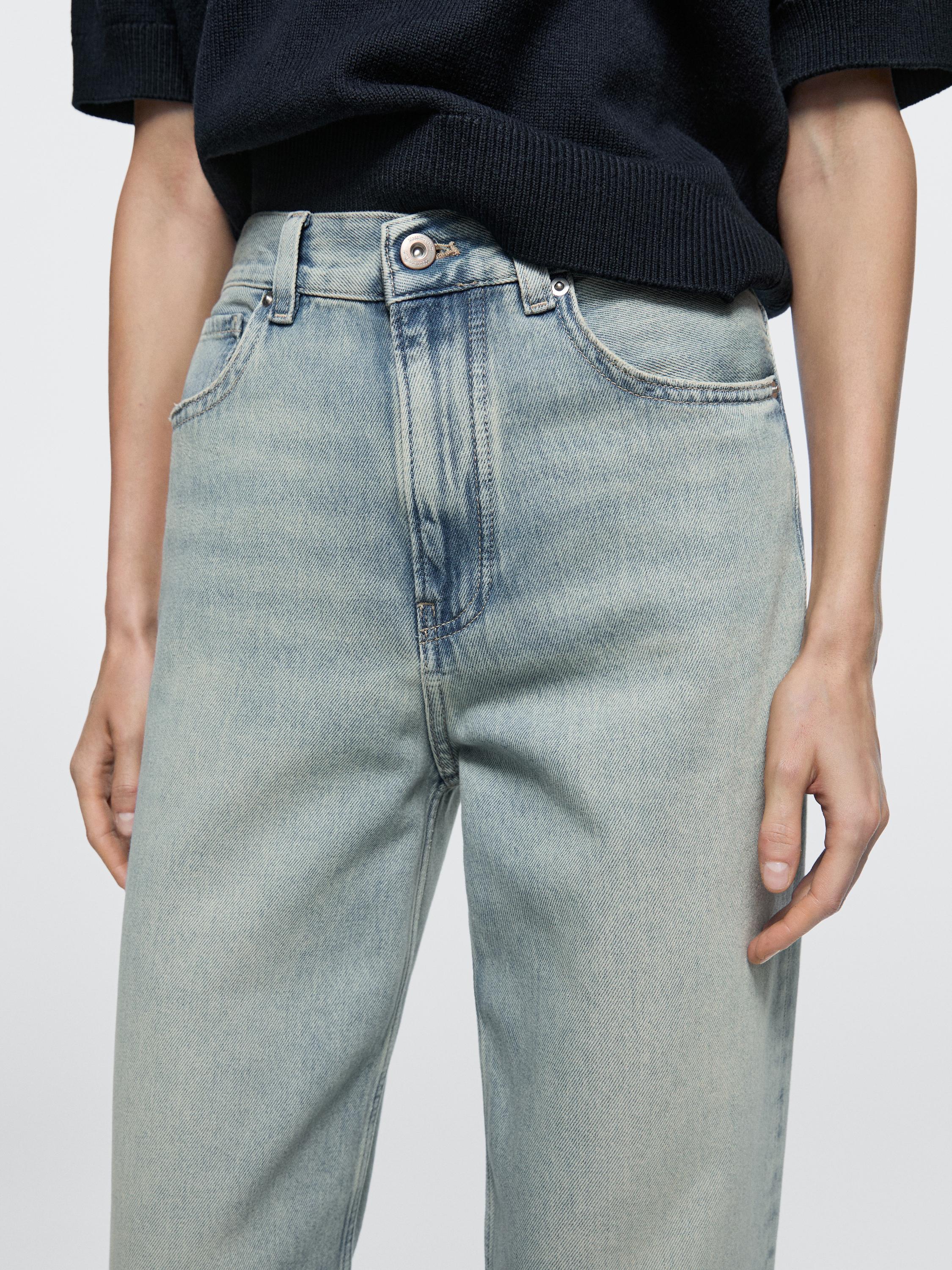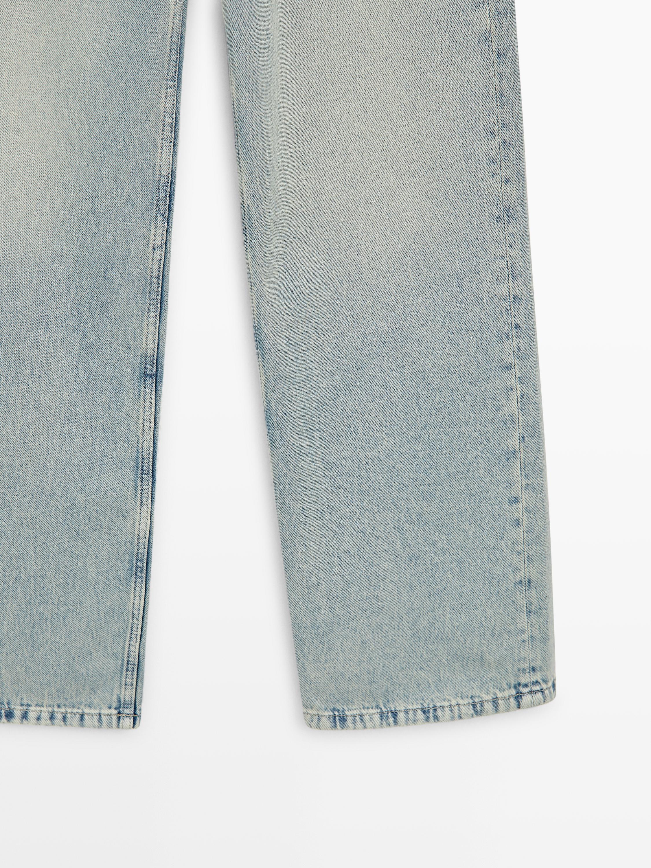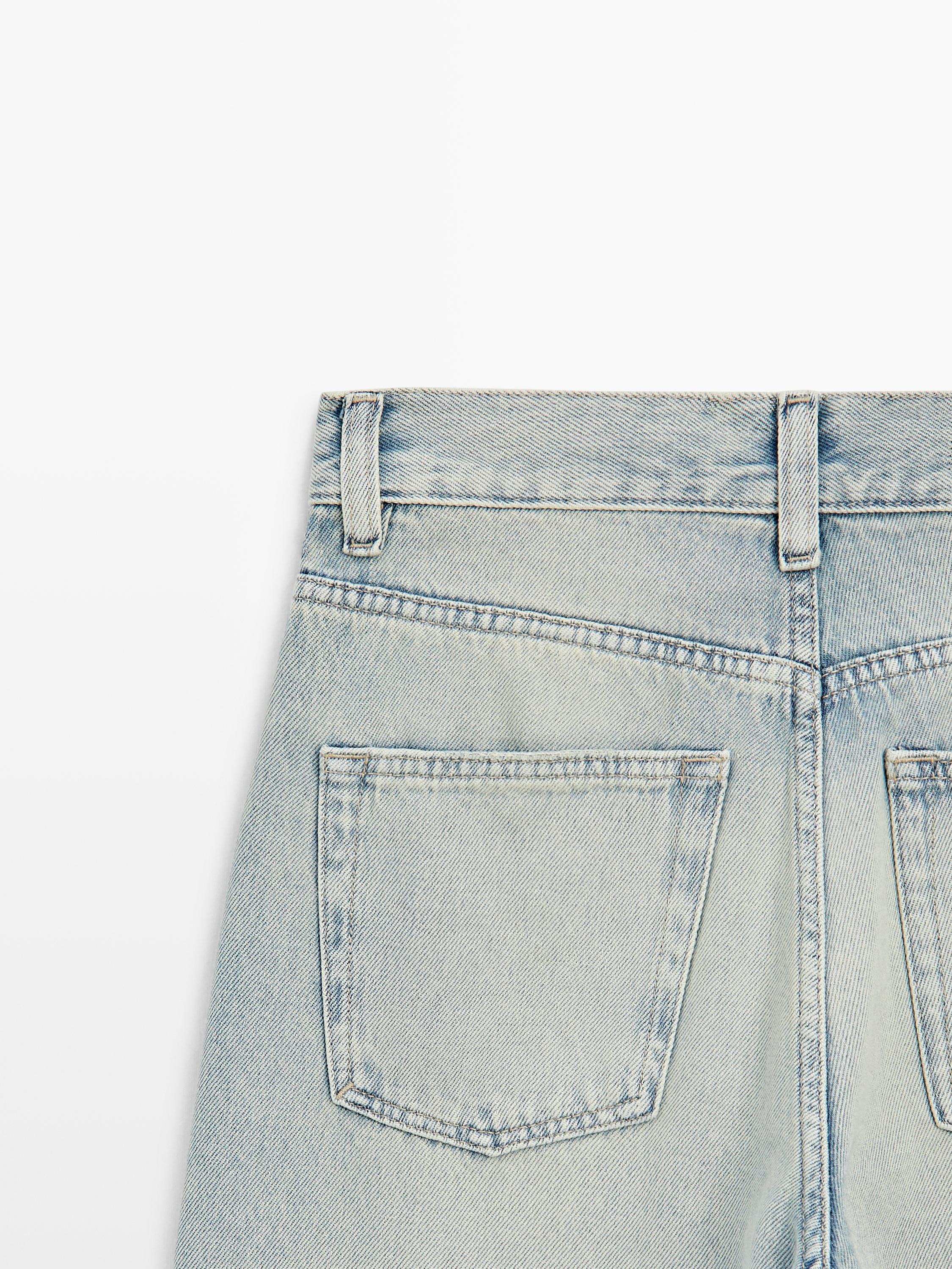 Джинсы с широкими штанинами: этот крой отличается широким и свободным силуэтом от бедра до щиколотки, обеспечивая комфорт. Высокая посадка. Детали в виде шлевок для ремня. Пояс со шлевками для ремня. Застежка на молнию и пуговицу спереди. Пять карманов.