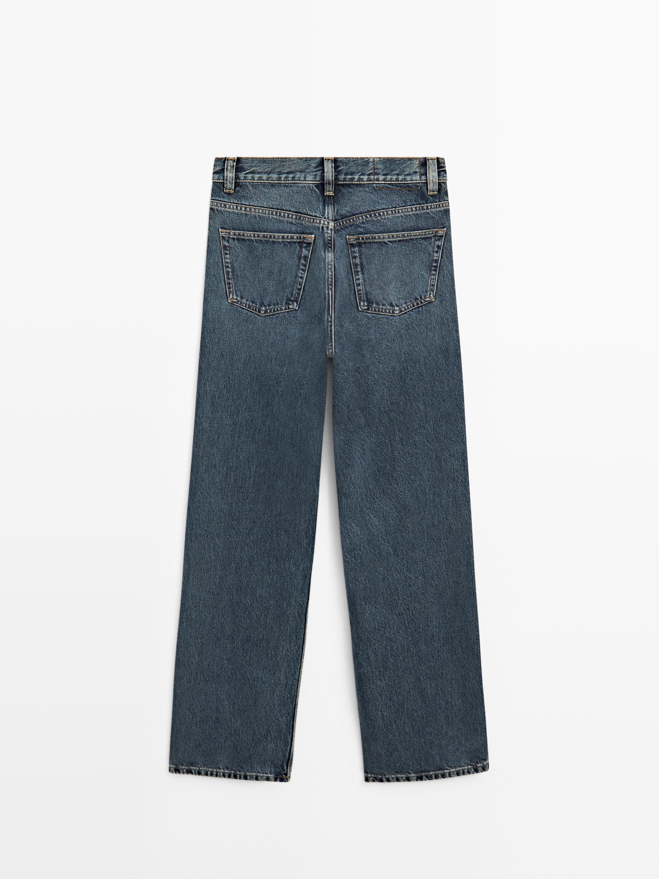 Massimo Dutti Джинсы с высокой талией и широкими штанинами, средне-синий