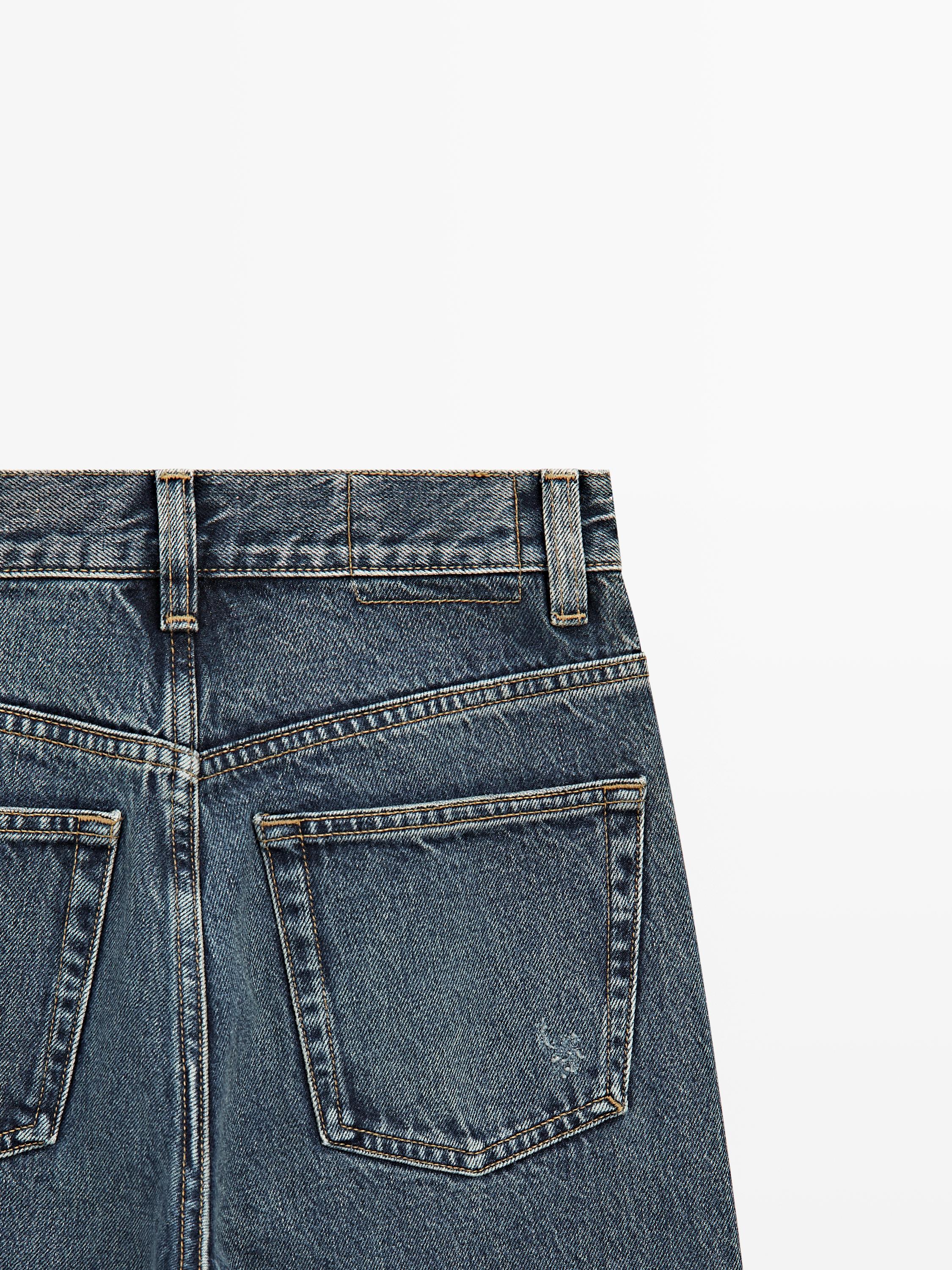 Джинсы с широкими штанинами: этот крой отличается широким и свободным силуэтом от бедра до щиколотки, обеспечивающим комфорт. Высокая посадка. Застежка на молнию спереди и пуговицу сверху. Пять карманов.