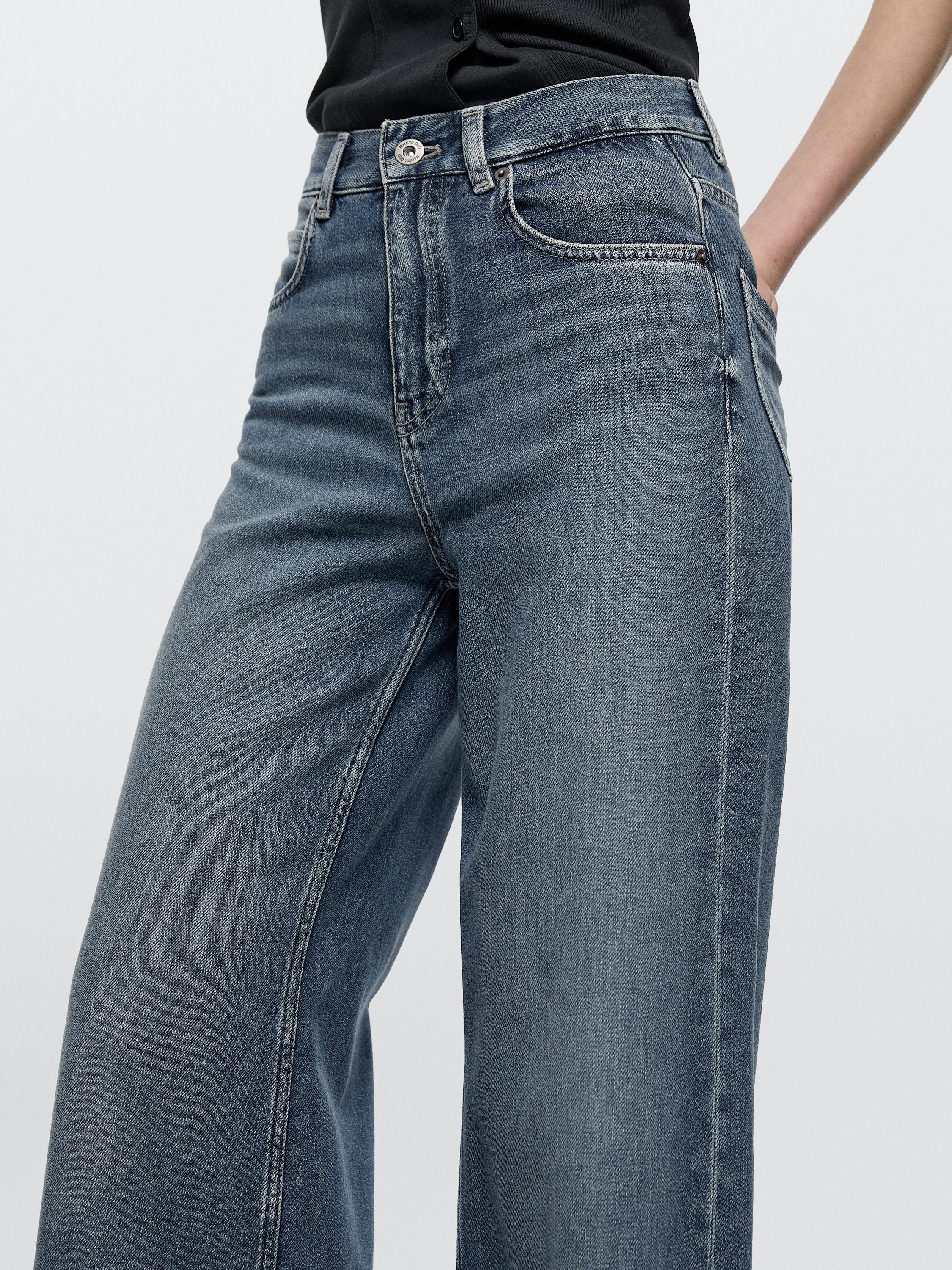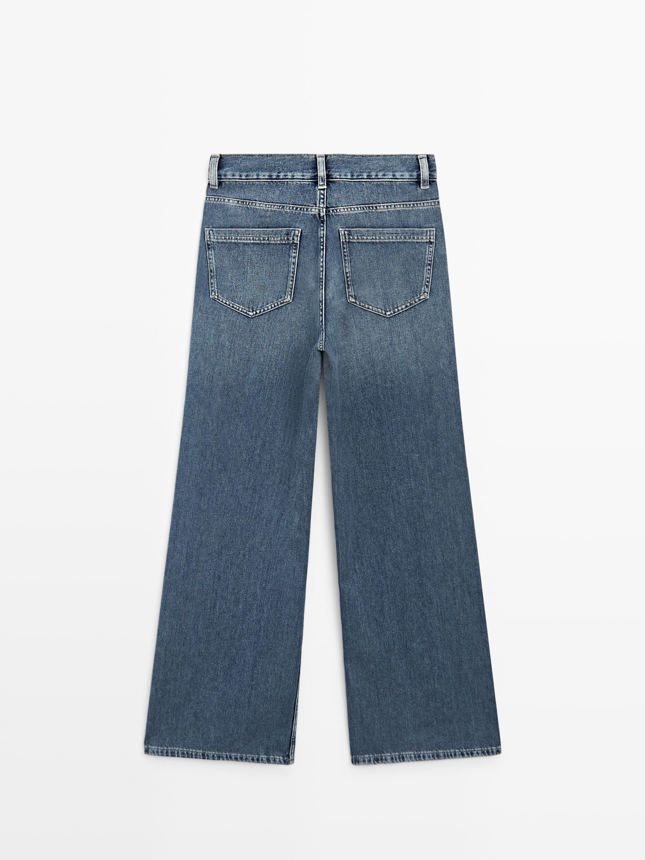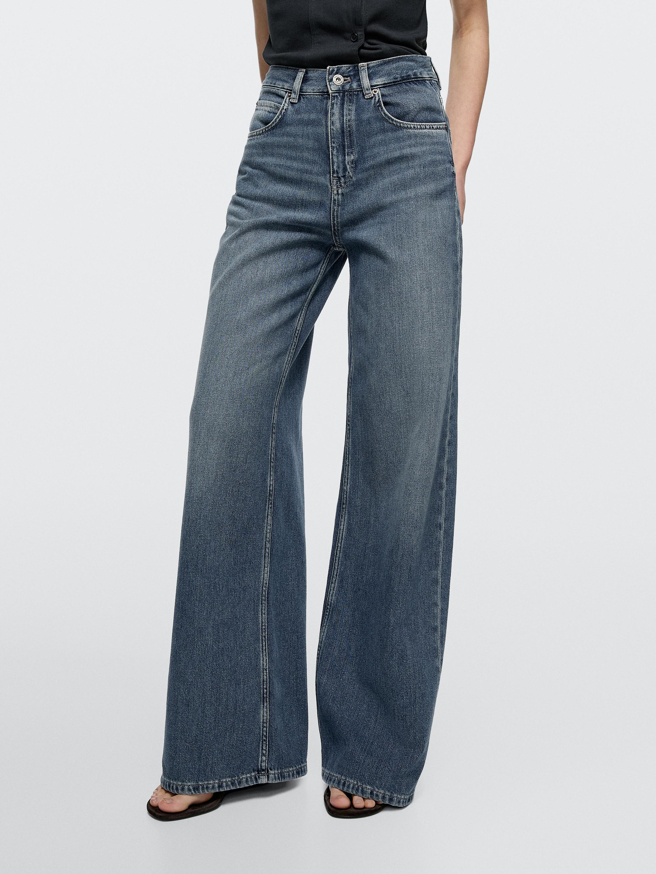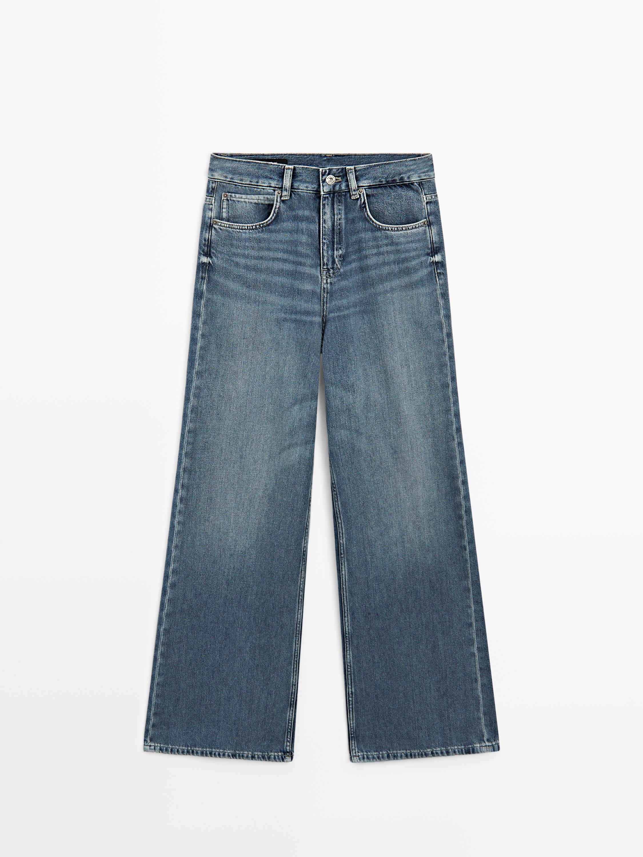 Massimo Dutti Джинсы с высокой талией и широкими штанинами, средне-синий