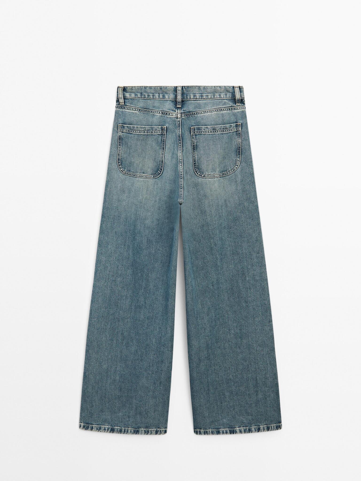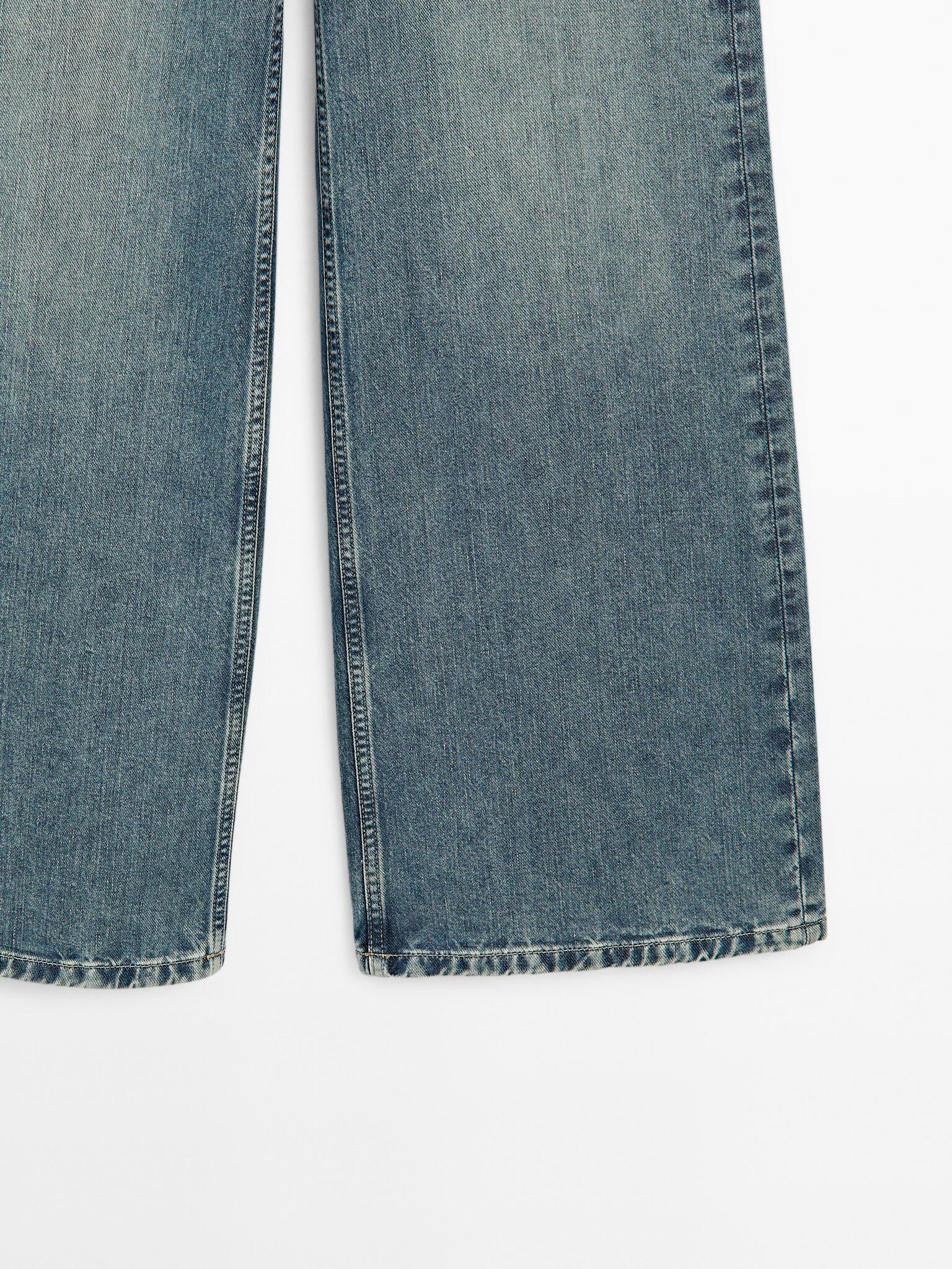Massimo Dutti Джинсы с высокой талией и широкими штанинами, светло-голубой