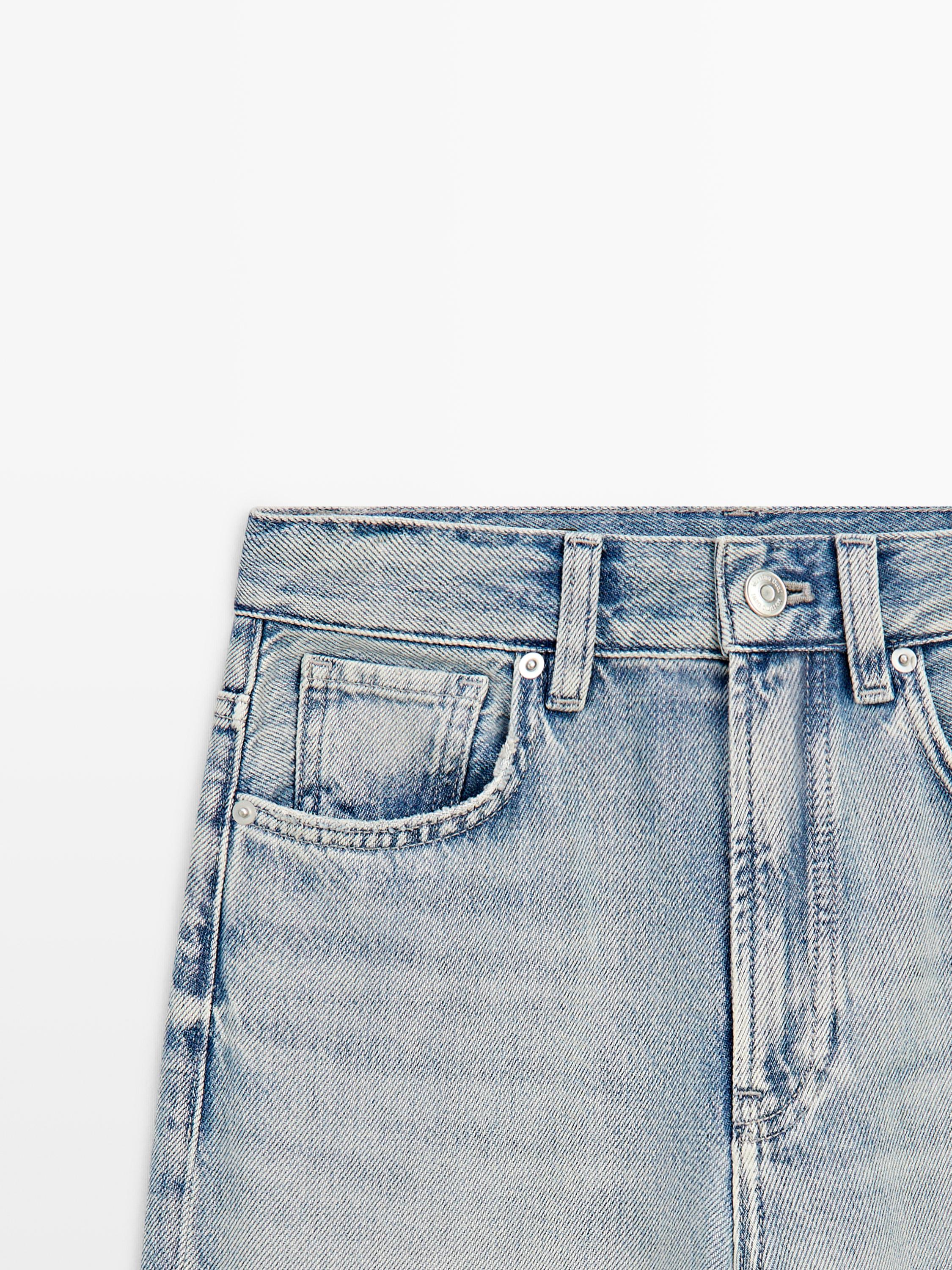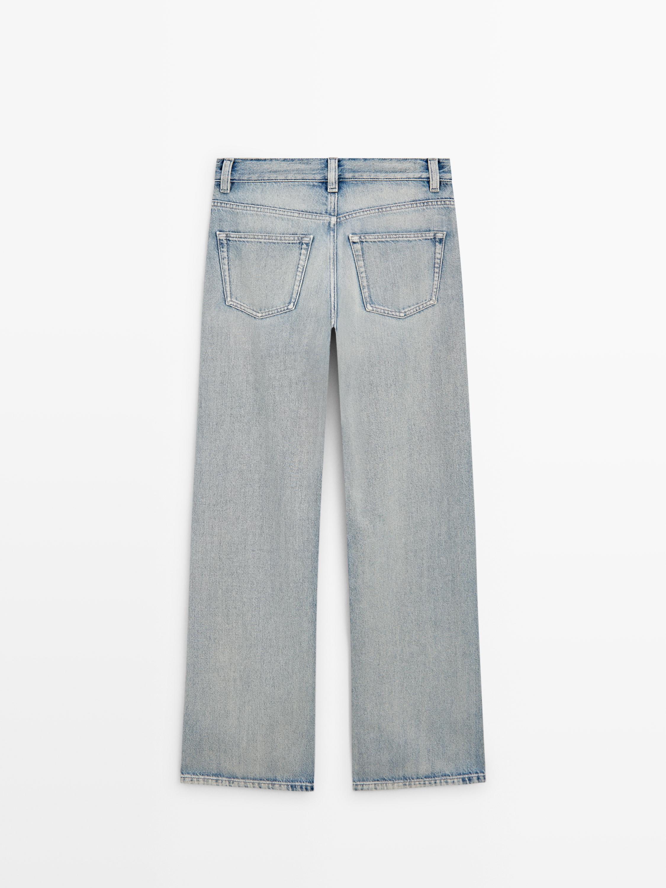 Massimo Dutti Джинсы с высокой талией и широкими штанинами, светло-голубой