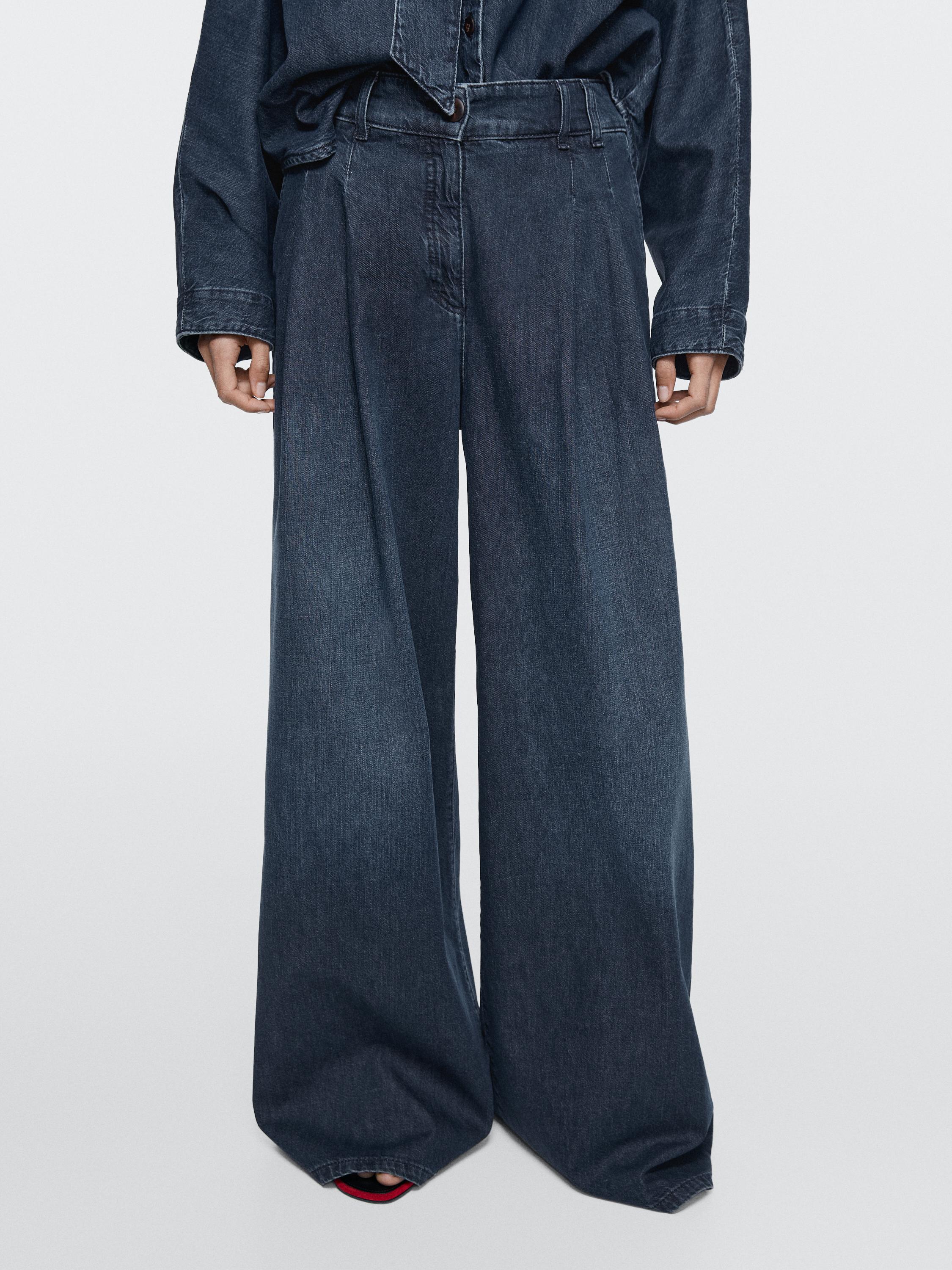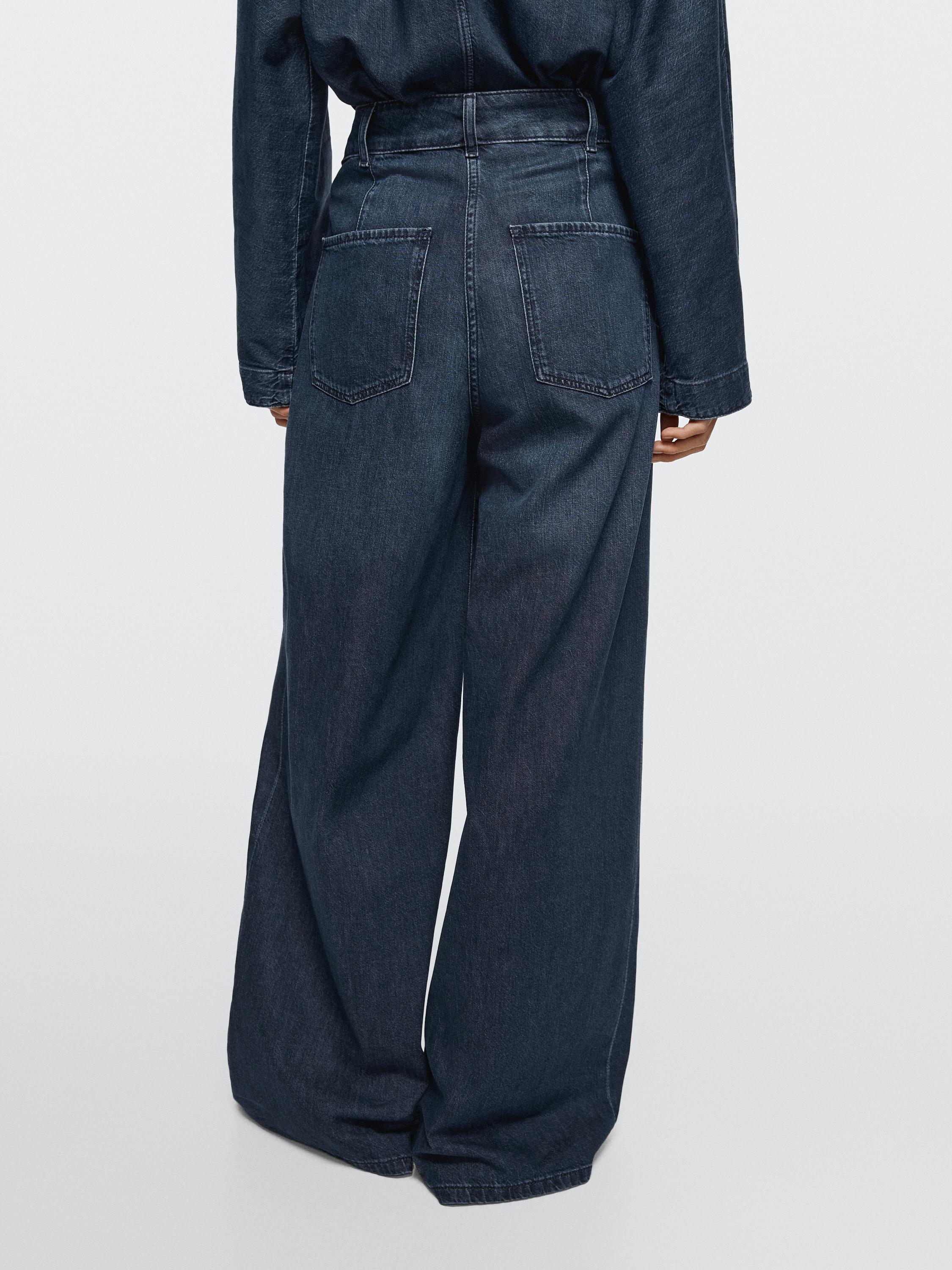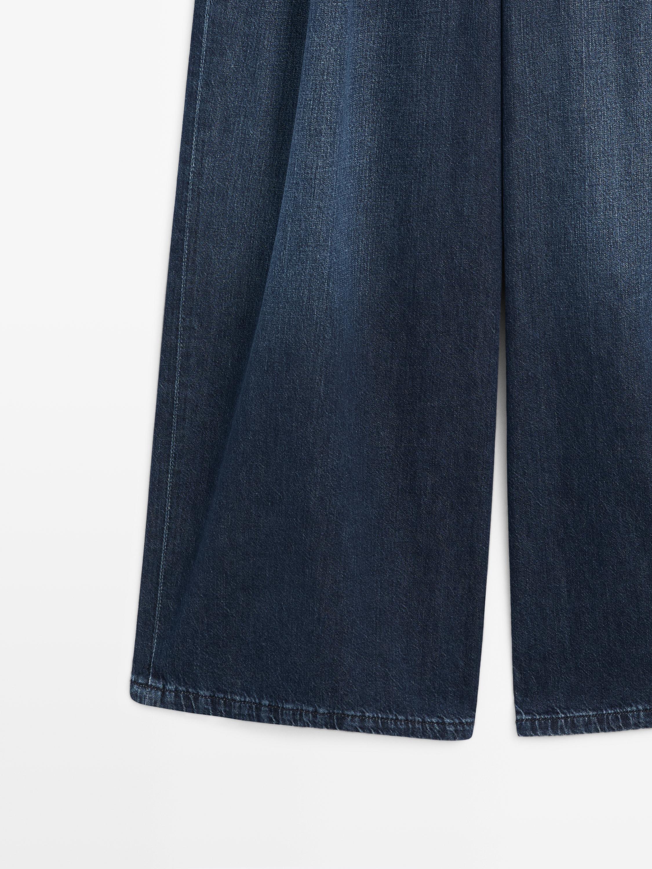 Джинсы с широкими штанинами: этот крой отличается широким и свободным силуэтом от бедра до щиколотки, обеспечивающим комфорт. Пояс с петлями для ремня. Застежка на молнию и пуговицу сверху. Два боковых кармана. Два накладных кармана сзади. Вытачки спереди. В наличии аналогичная модель.