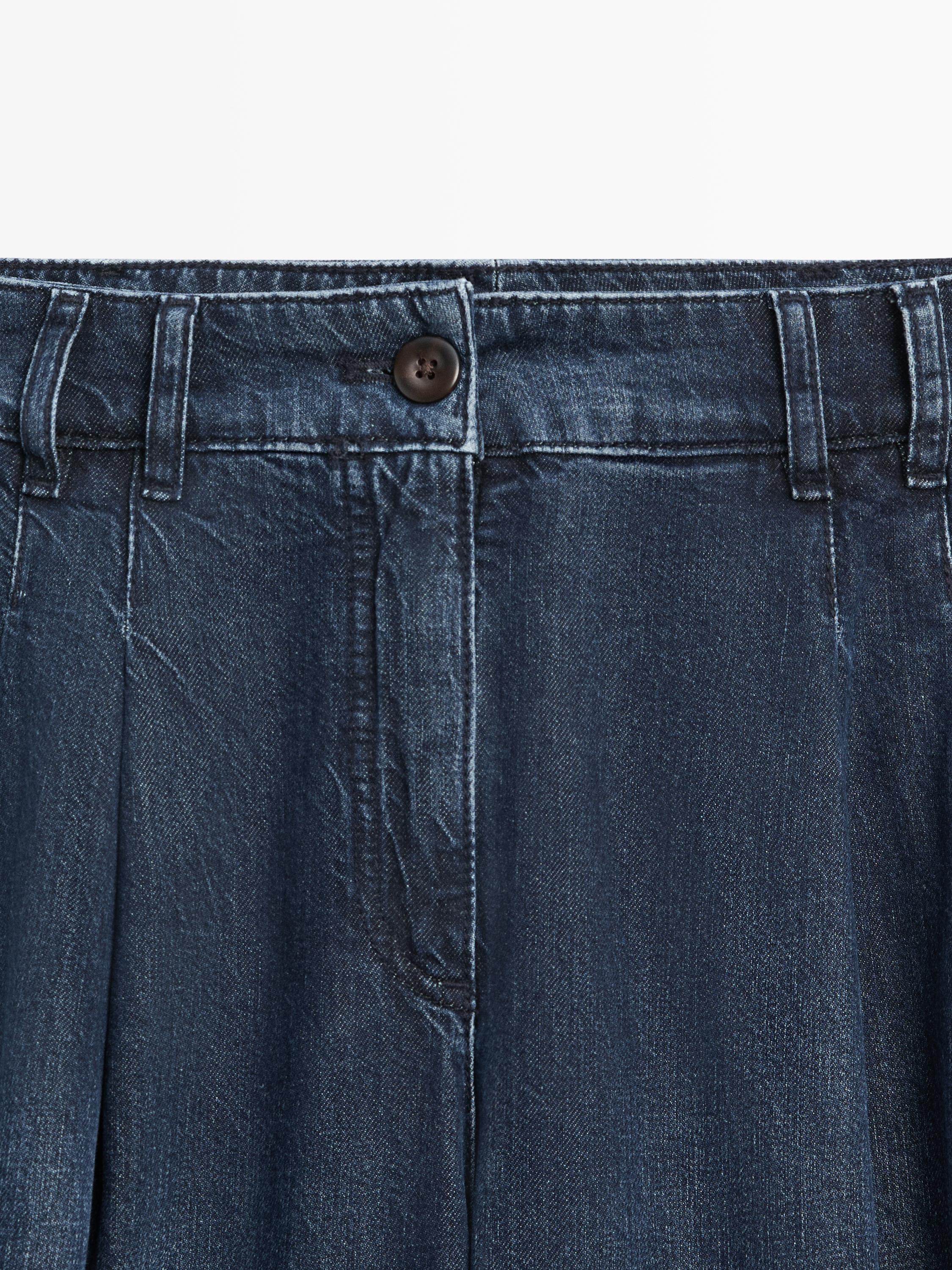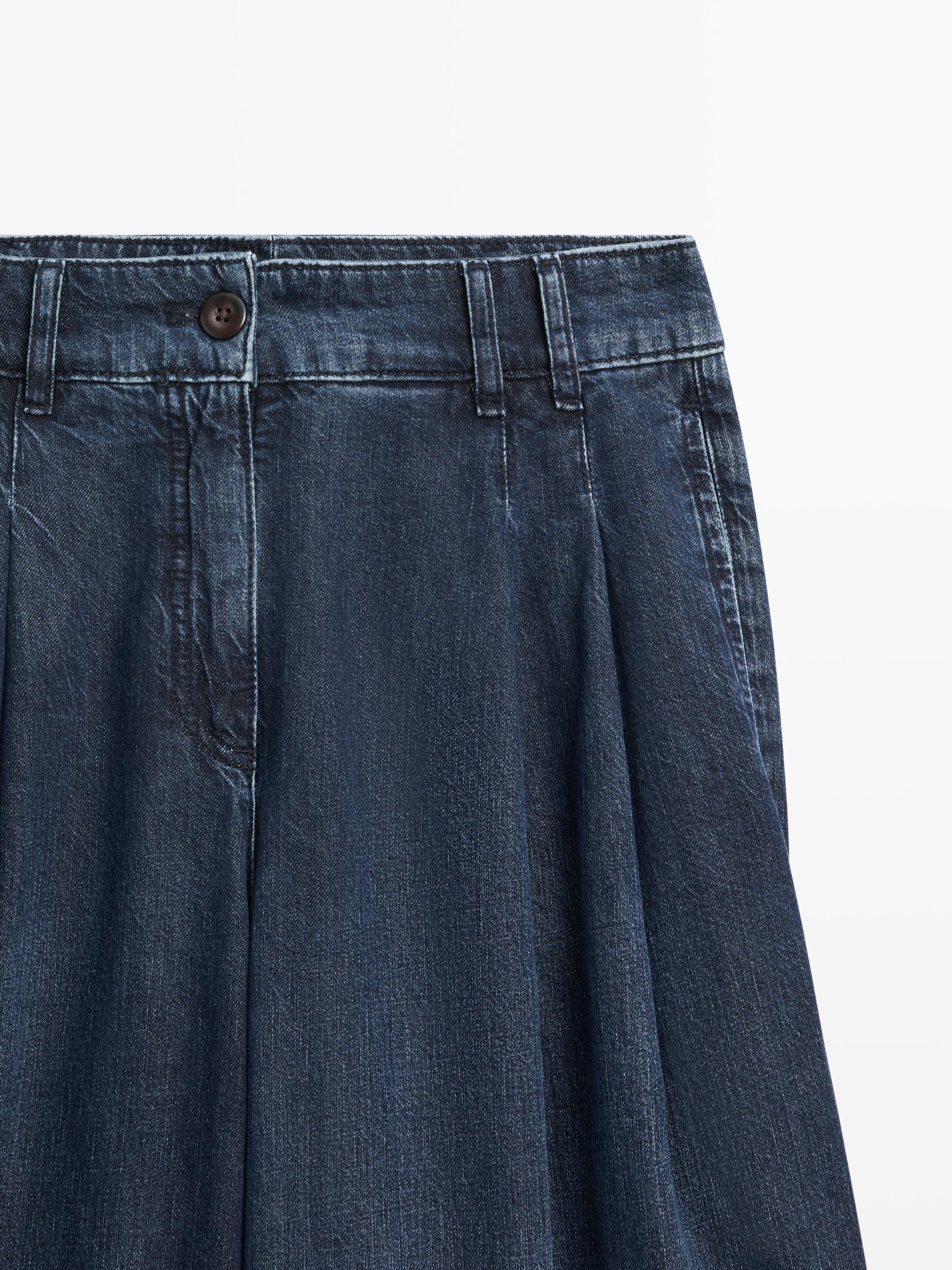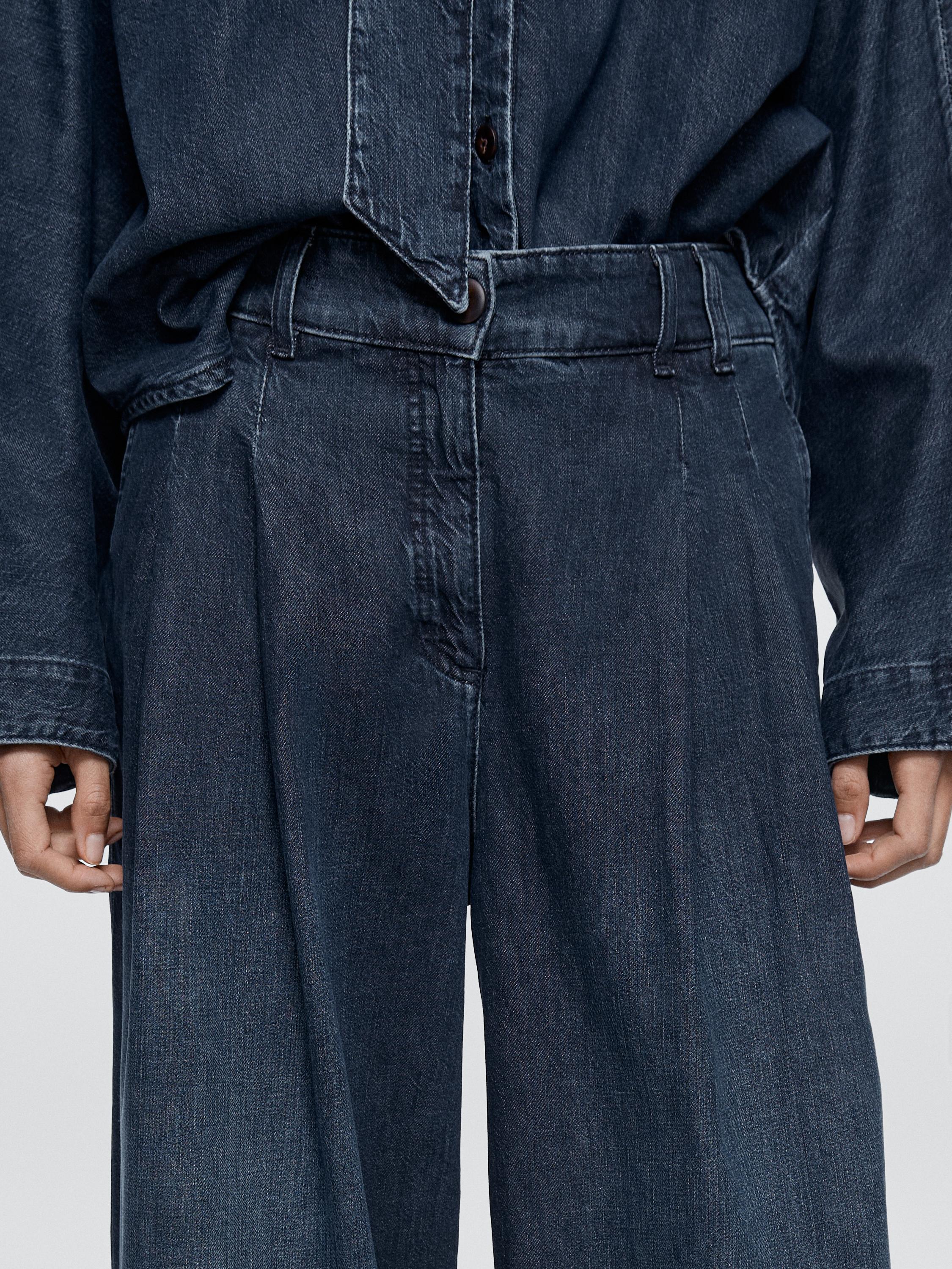 Джинсы с широкими штанинами: этот крой отличается широким и свободным силуэтом от бедра до щиколотки, обеспечивающим комфорт. Пояс с петлями для ремня. Застежка на молнию и пуговицу сверху. Два боковых кармана. Два накладных кармана сзади. Вытачки спереди. В наличии аналогичная модель.