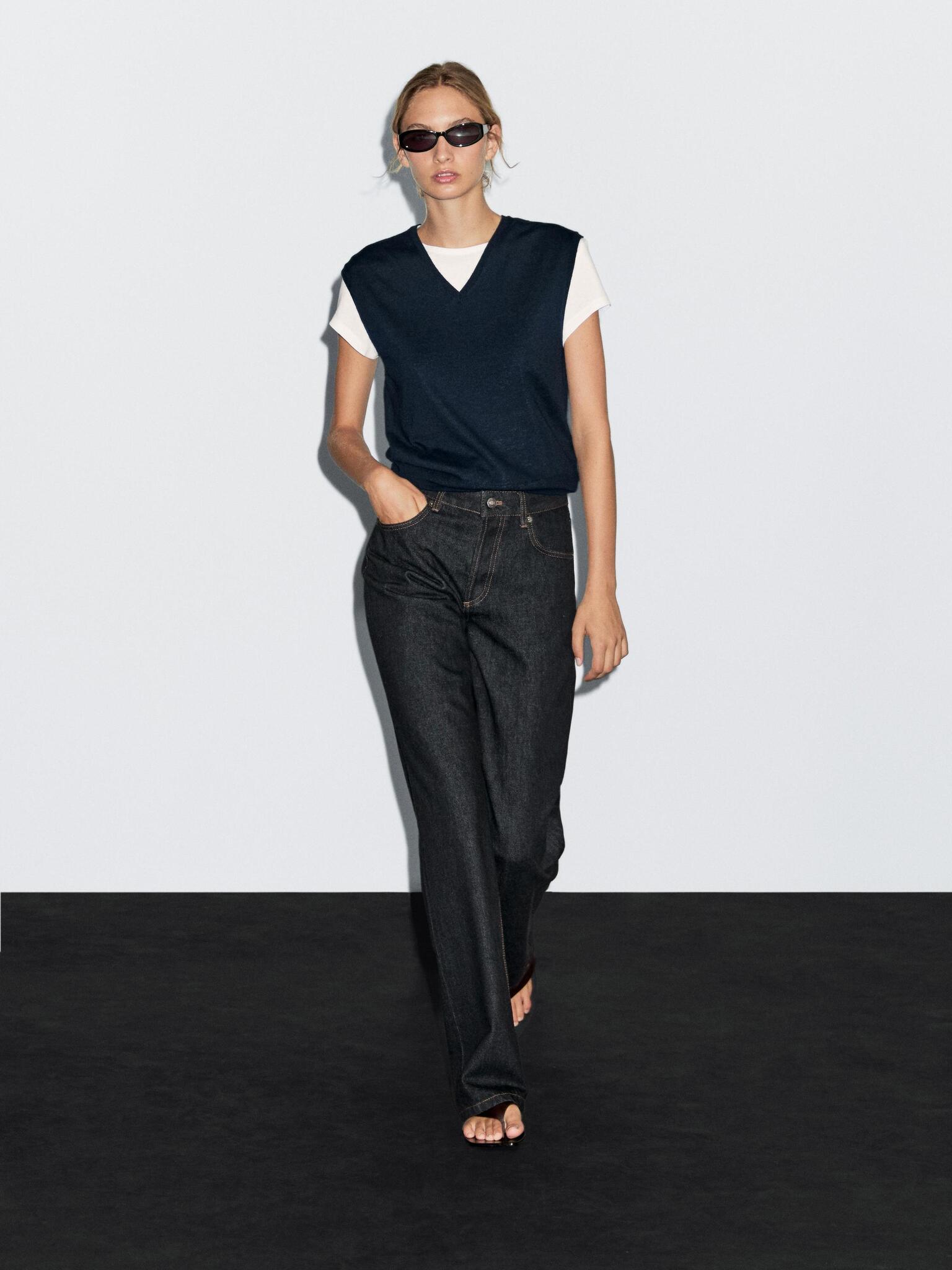 Massimo Dutti Джинсы со средней посадкой и широкими штанинами, темно-синий
