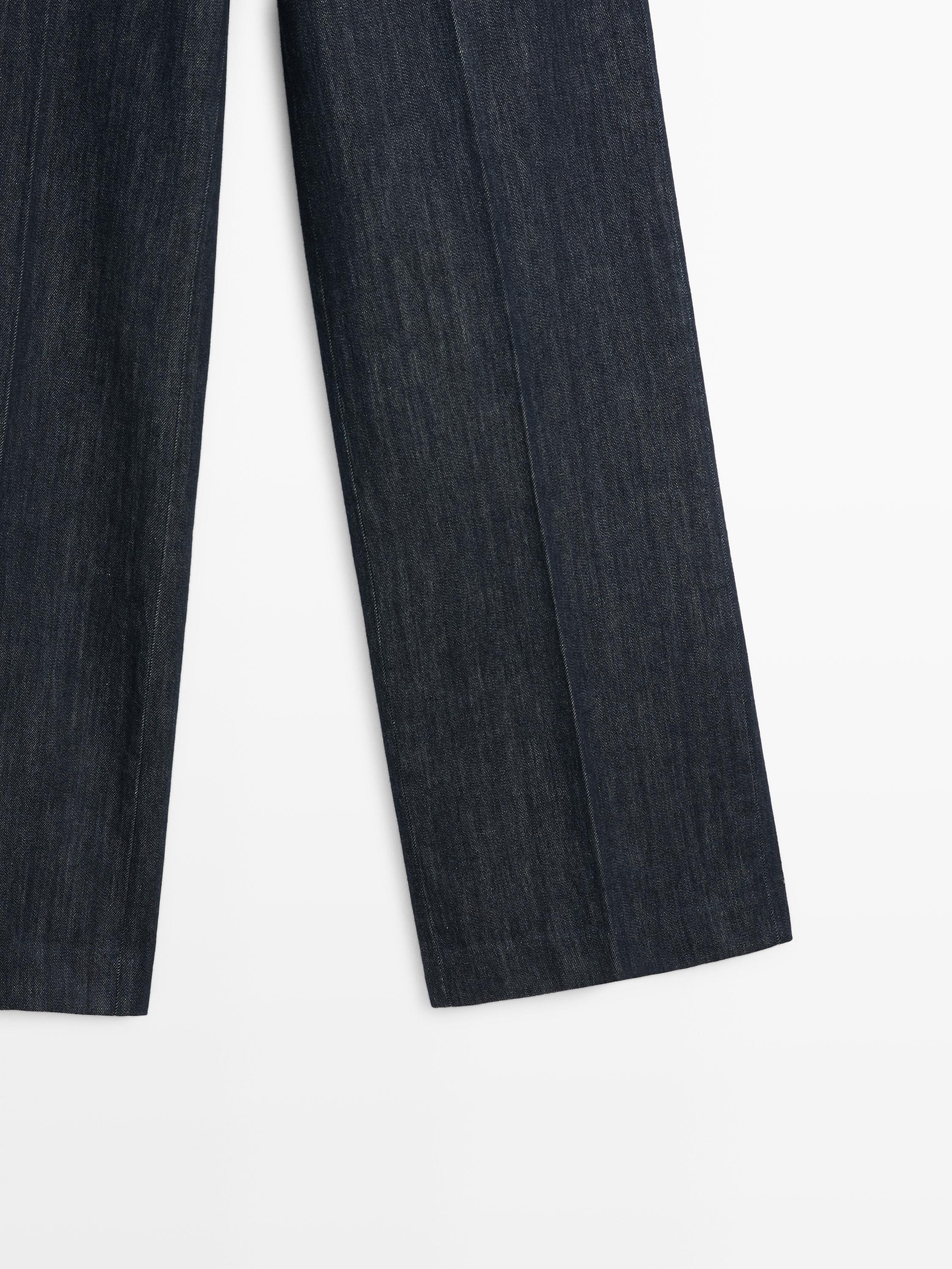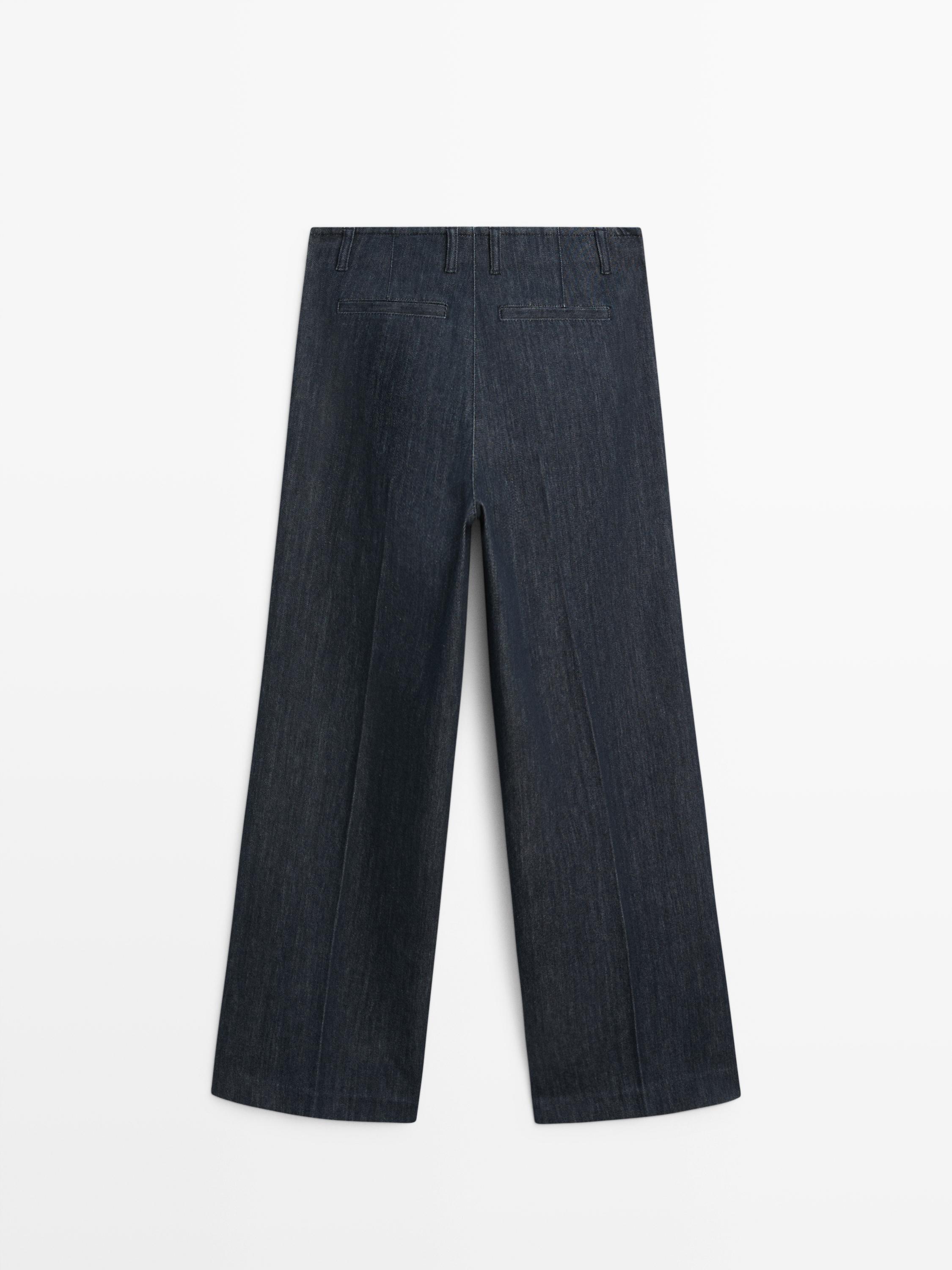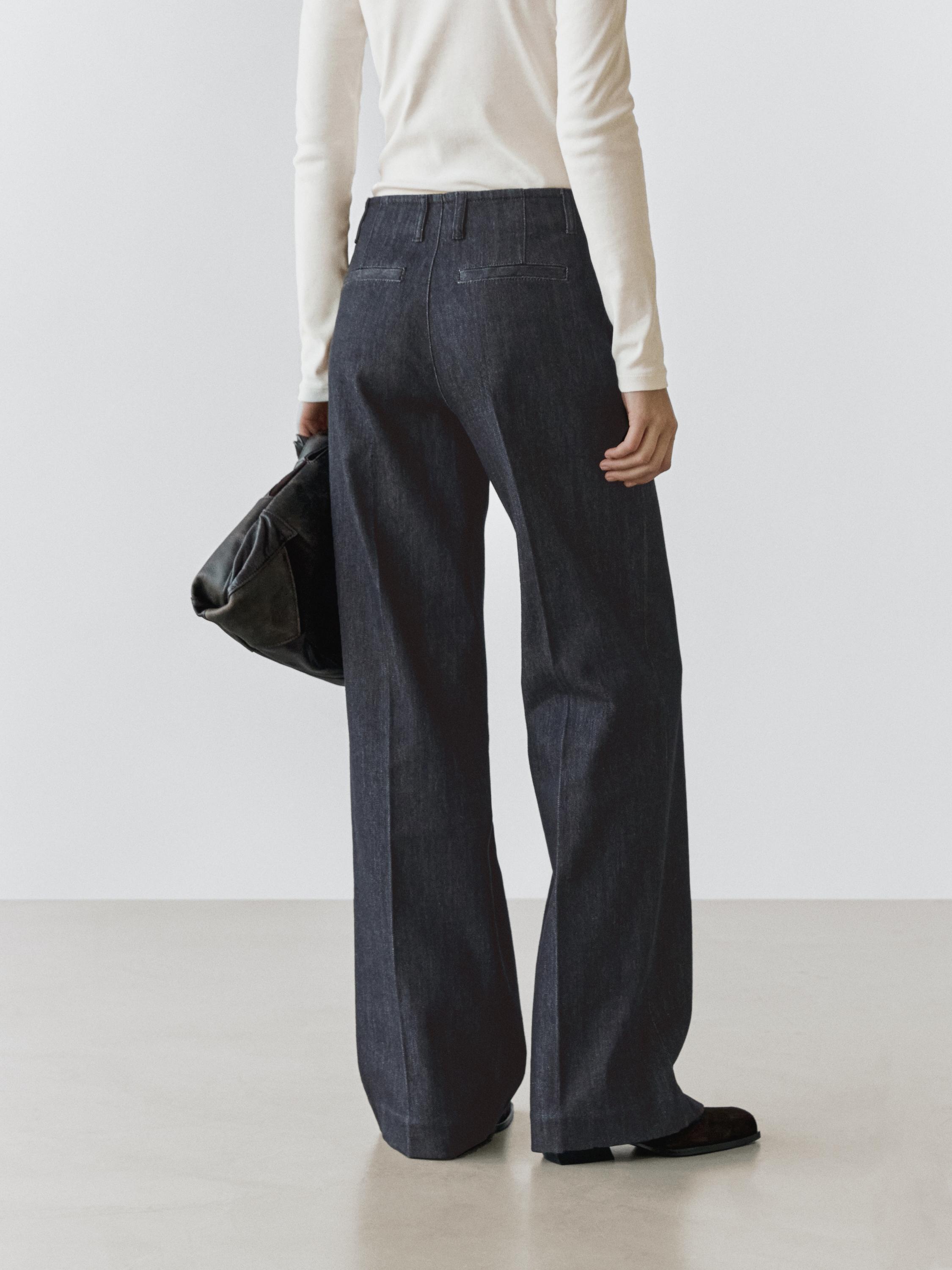 Джинсы Wide Leg: широкий и свободный крой от бедра до щиколотки, обеспечивающий комфорт. Средняя талия. Застёжка на молнию. Потайная молния и застёжка на крючок. Два боковых кармана. Два прорезных кармана сзади. Задний прорезной карман.
