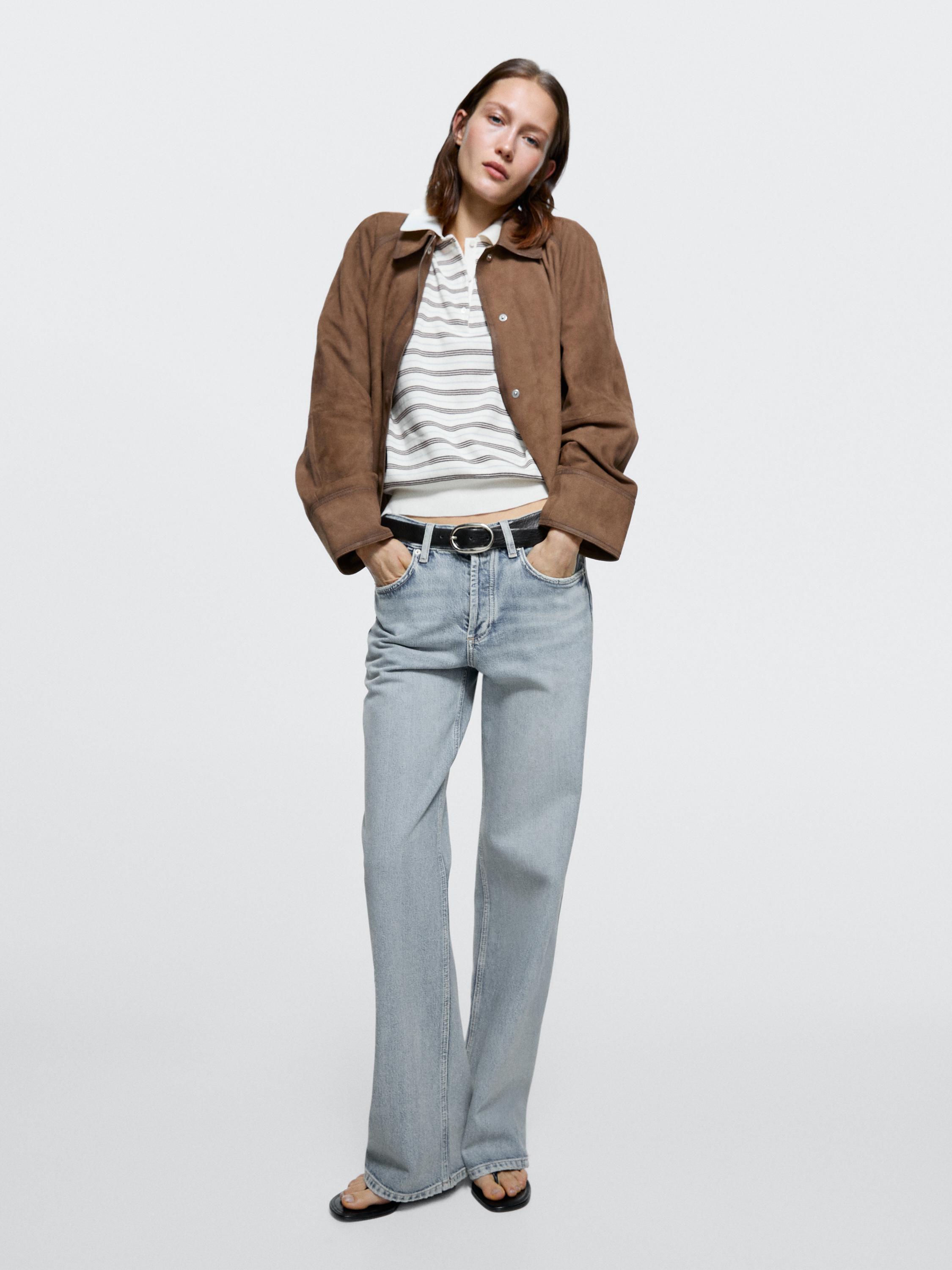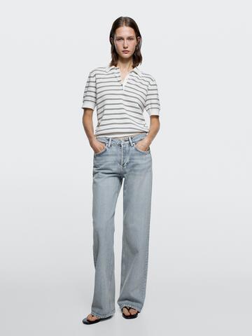 Massimo Dutti Джинсы средней посадки с широкими штанинами, светло-голубой