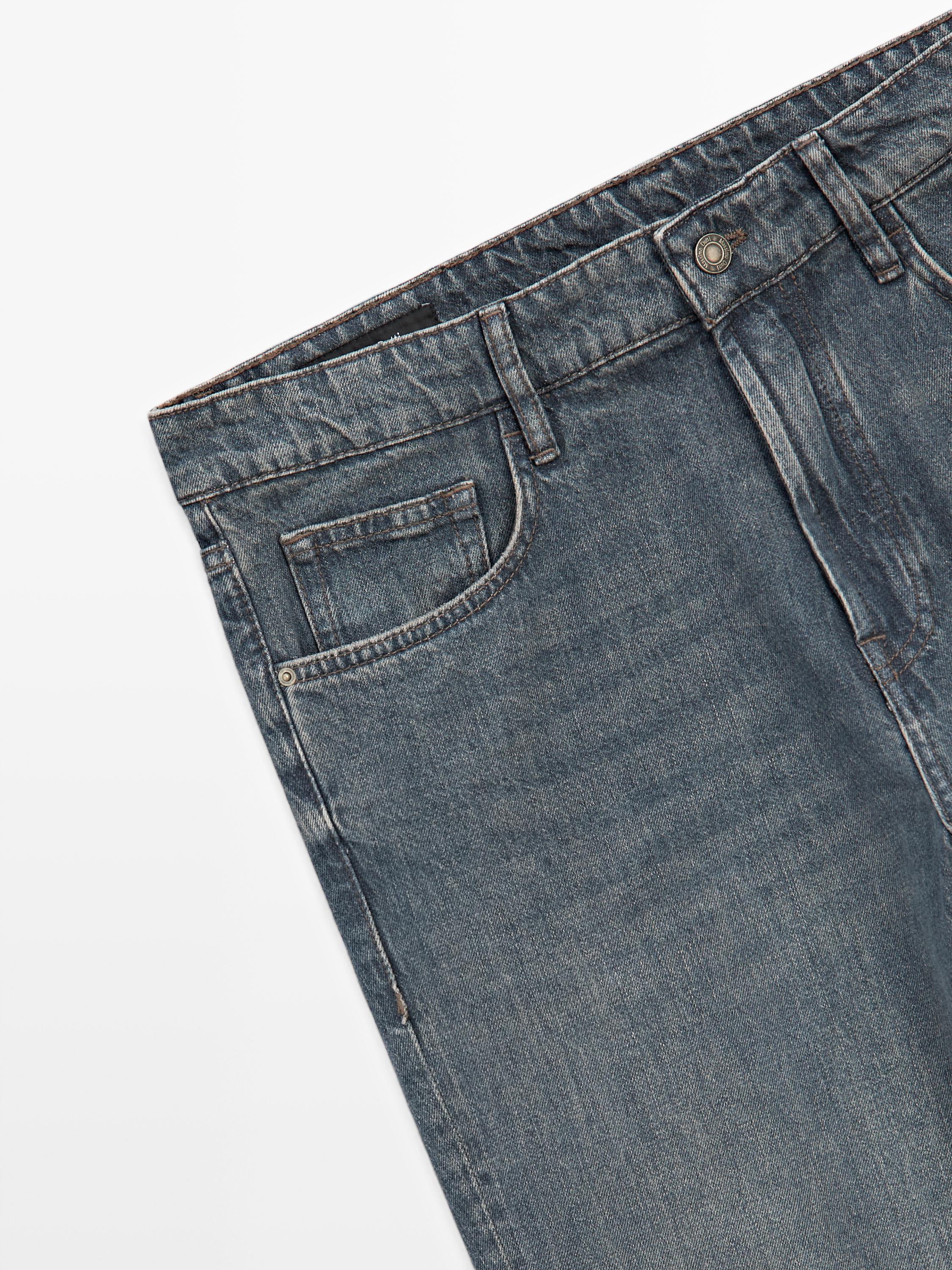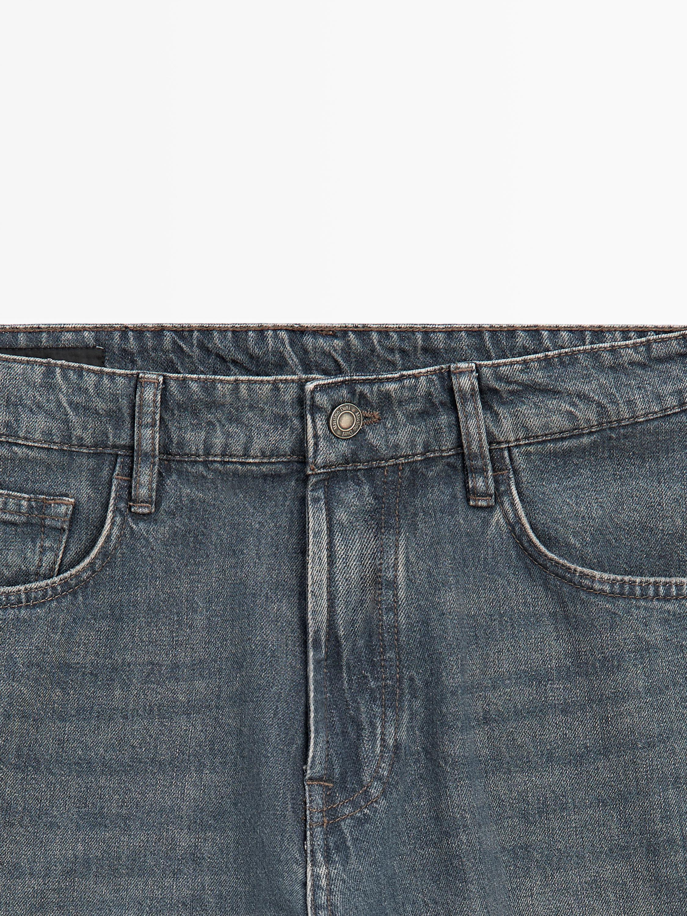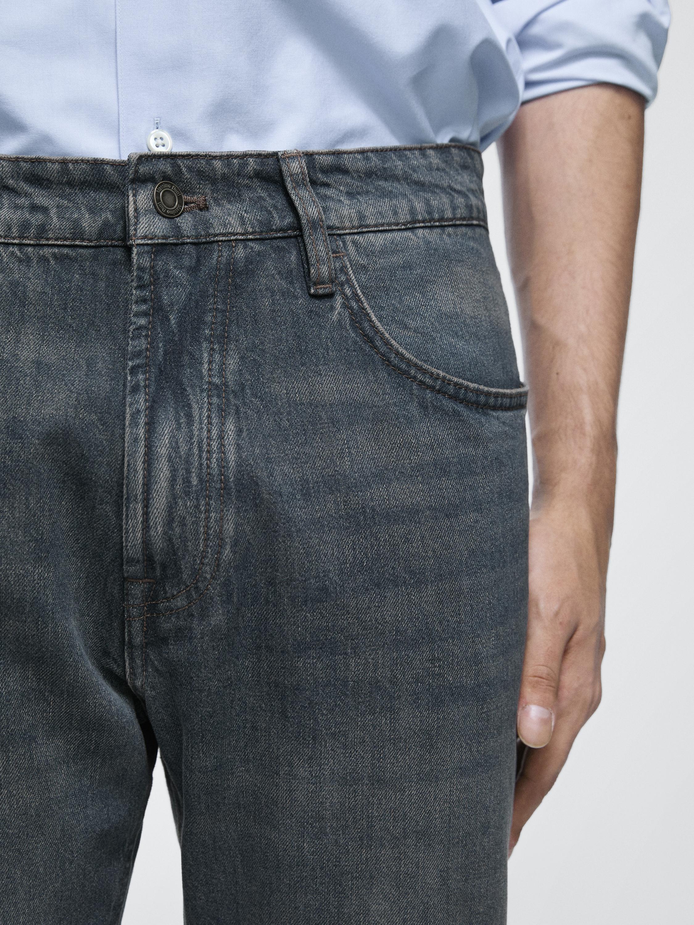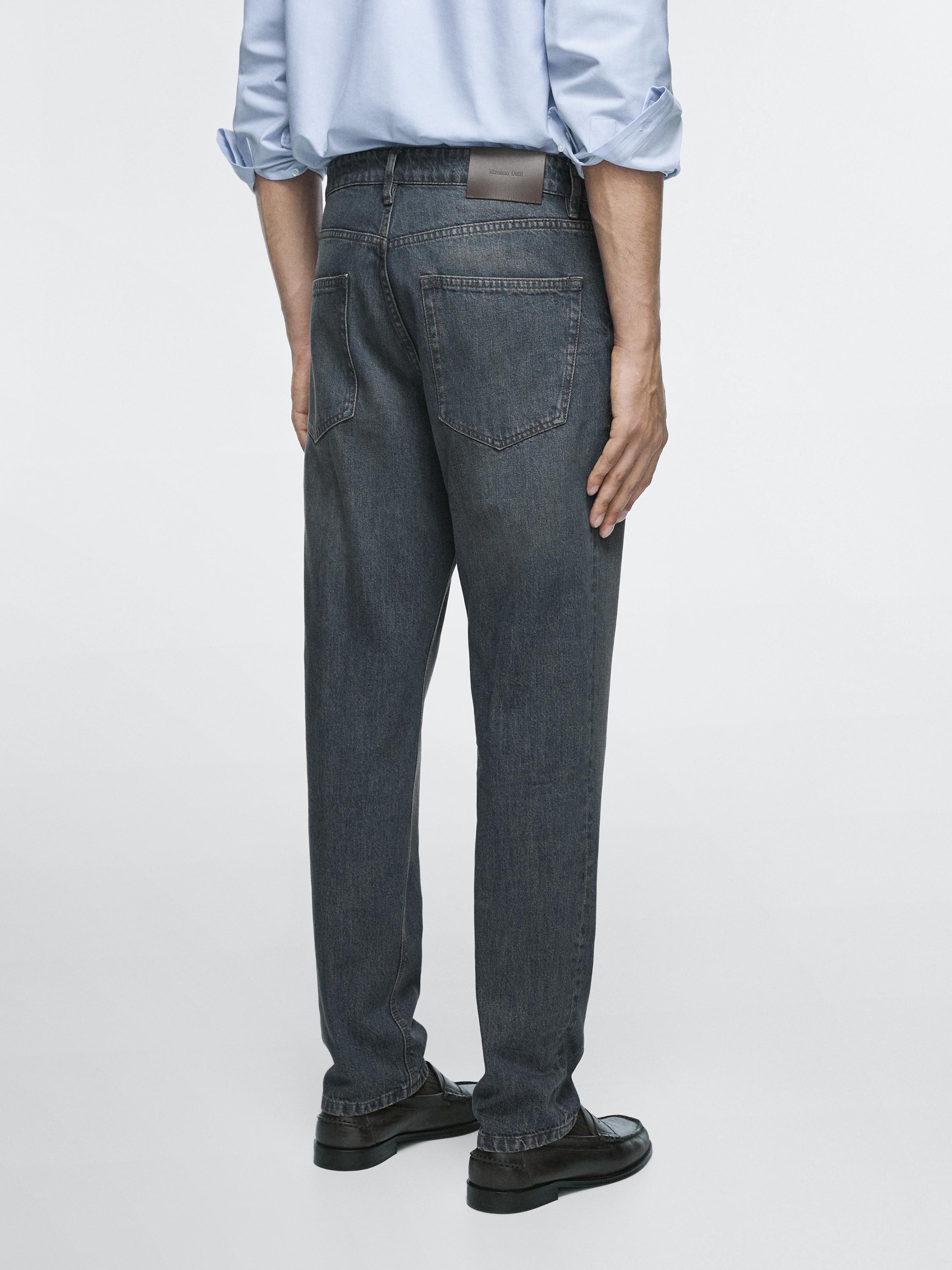 Джинсы зауженного кроя: этот крой отличается свободным силуэтом в талии, плавно сужающимся к щиколоткам. Пояс с петлями для ремня. Пять карманов.