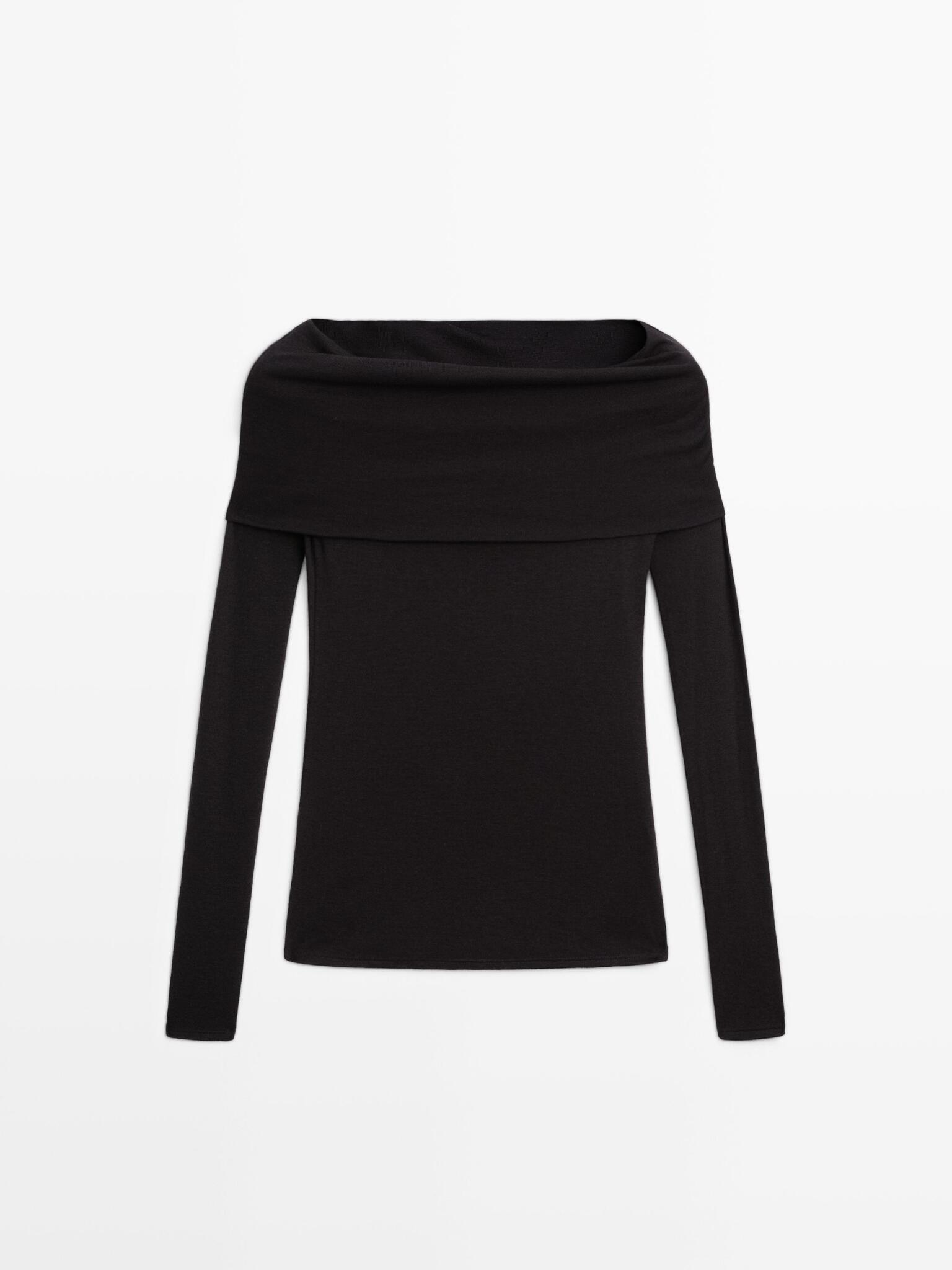 Massimo Dutti Футболка без бретелей с длинными рукавами, черный