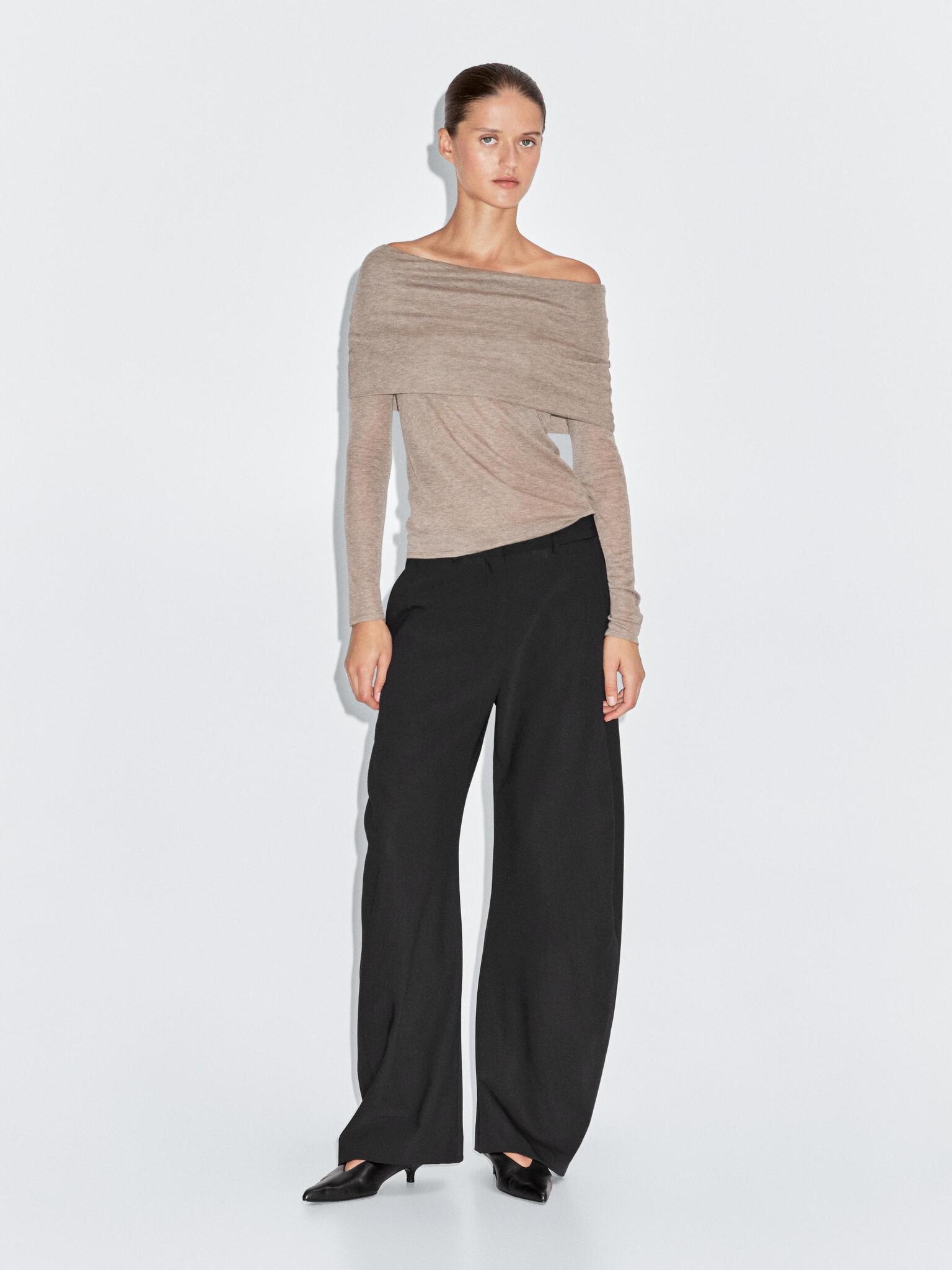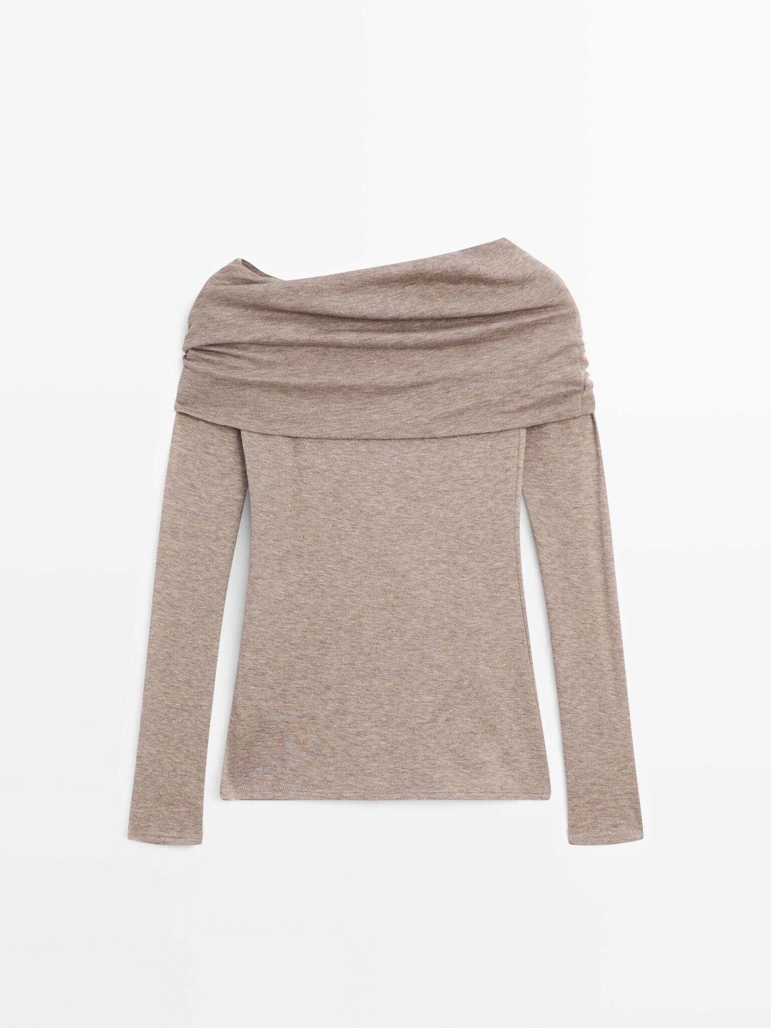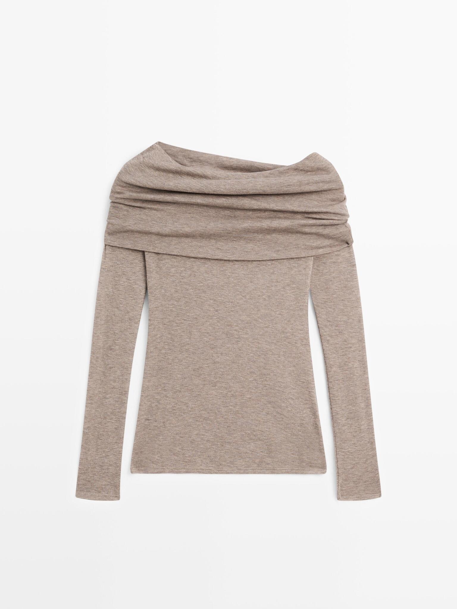 Massimo Dutti Футболка без бретелей с длинными рукавами, норка