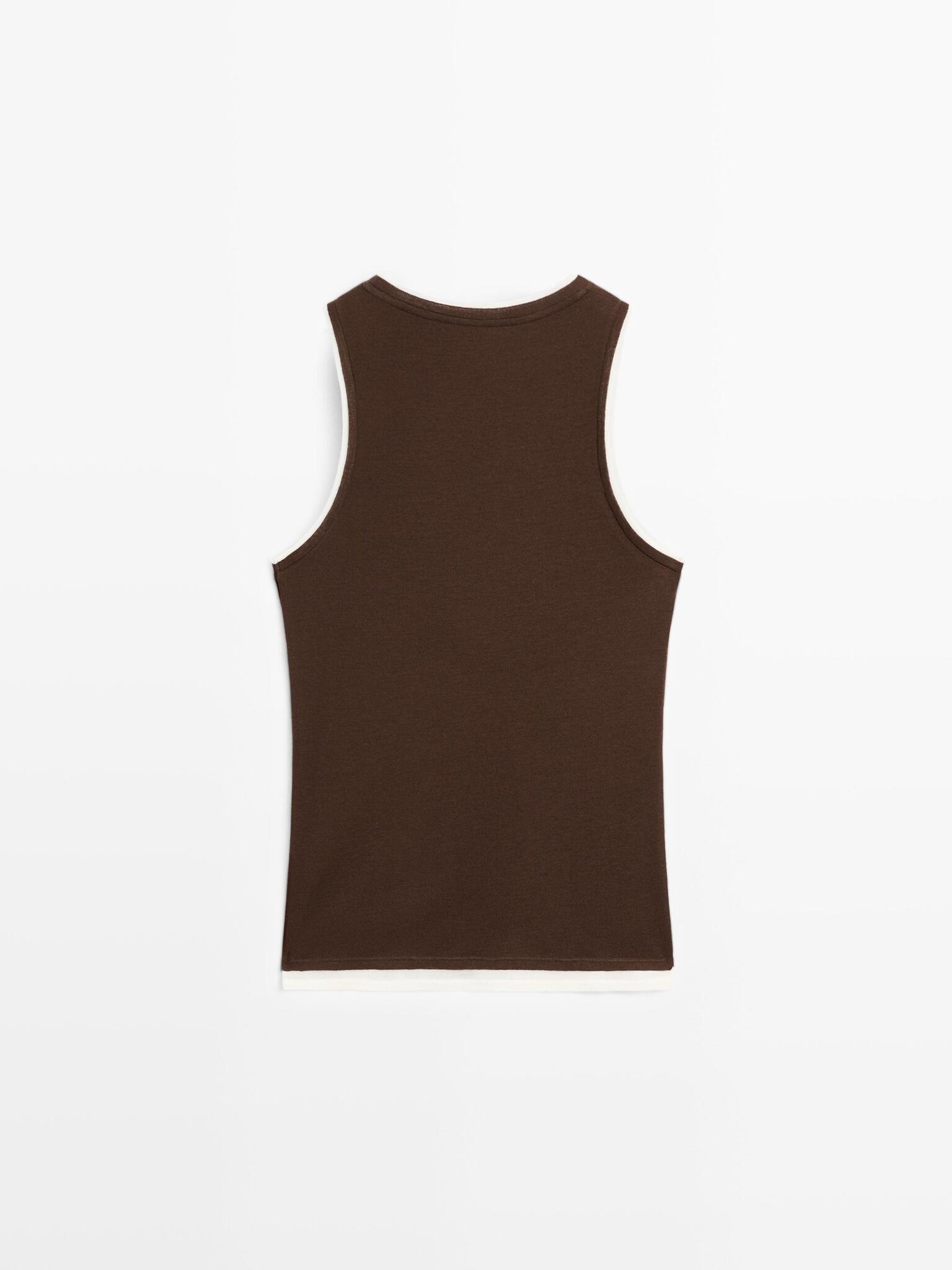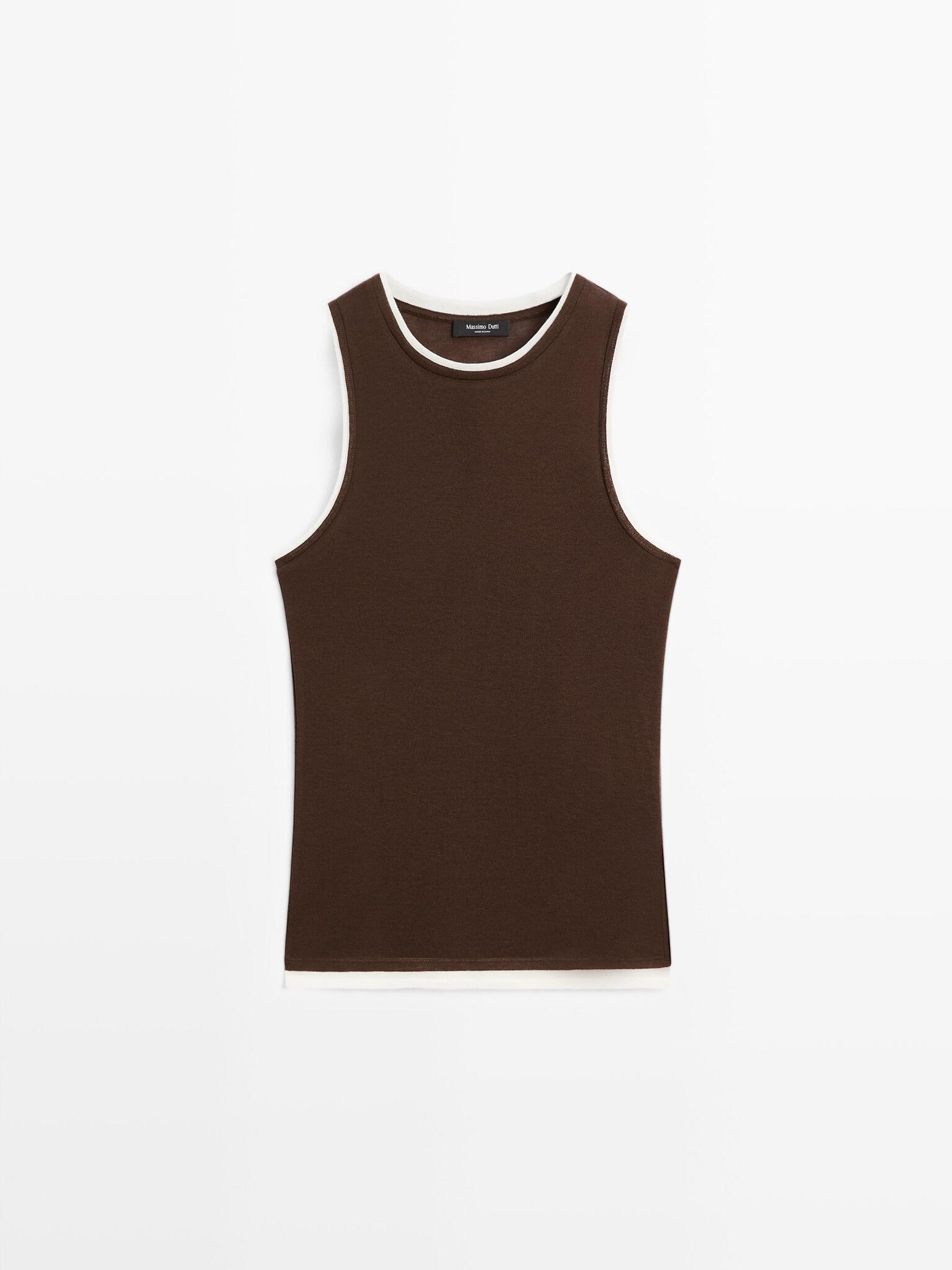 Massimo Dutti Футболка без рукавов с двойной окантовкой, коричневый