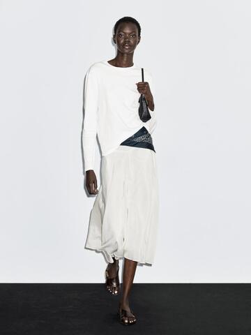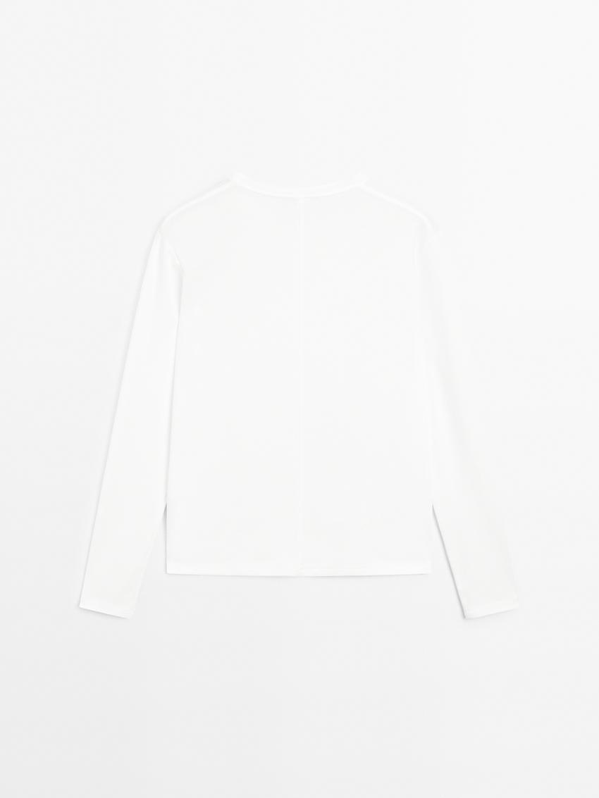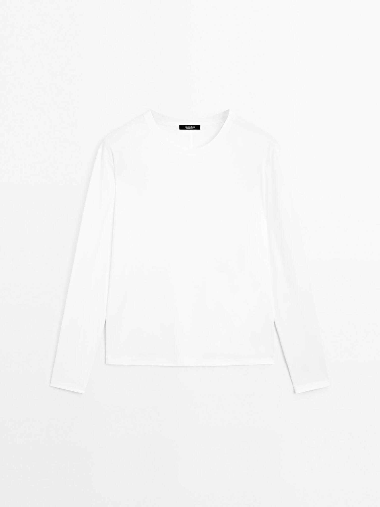 Massimo Dutti Футболка из 100% хлопка с длинным рукавом, белый