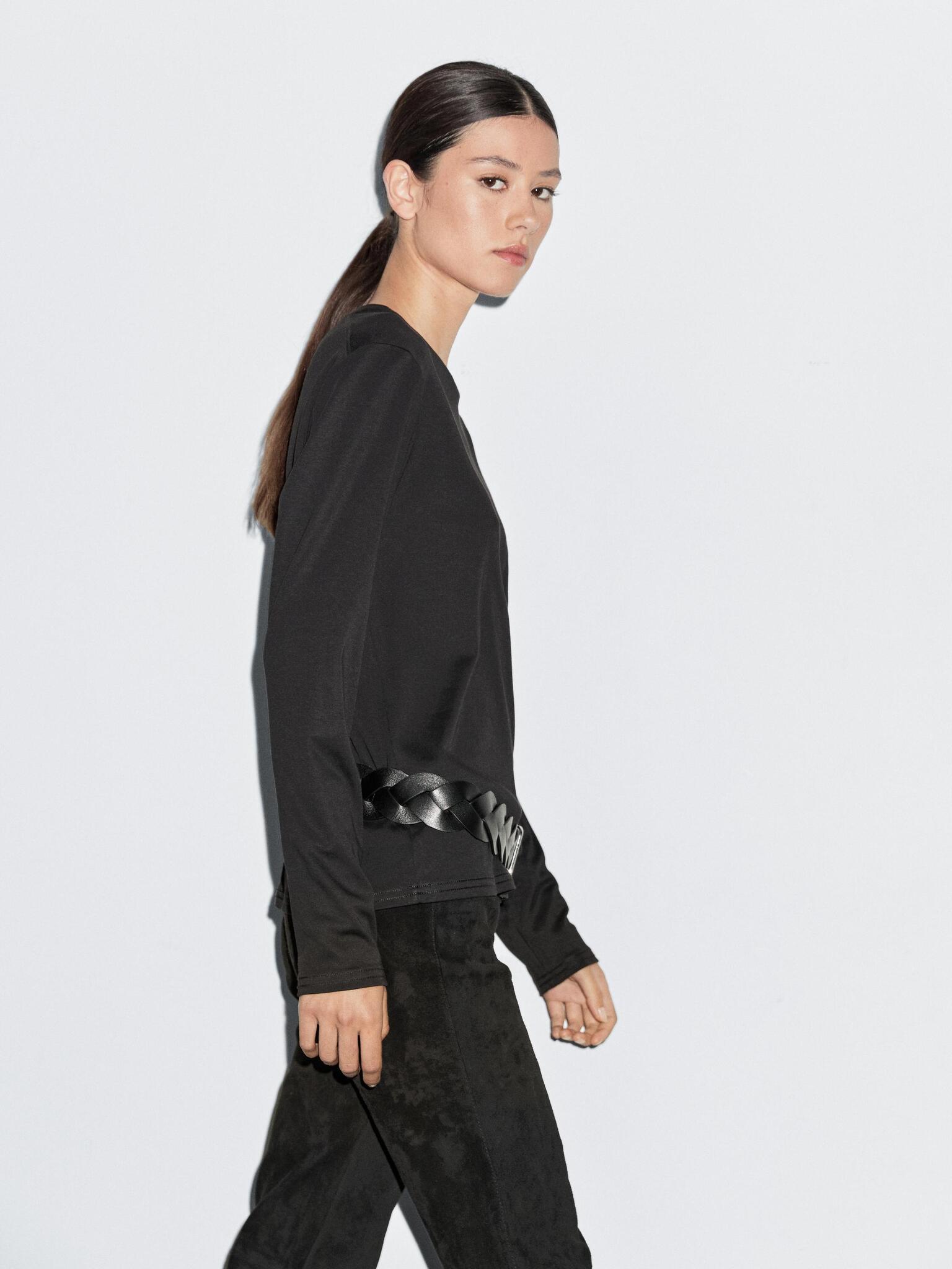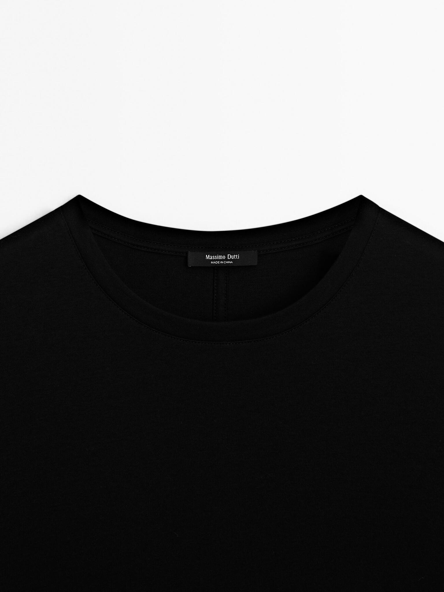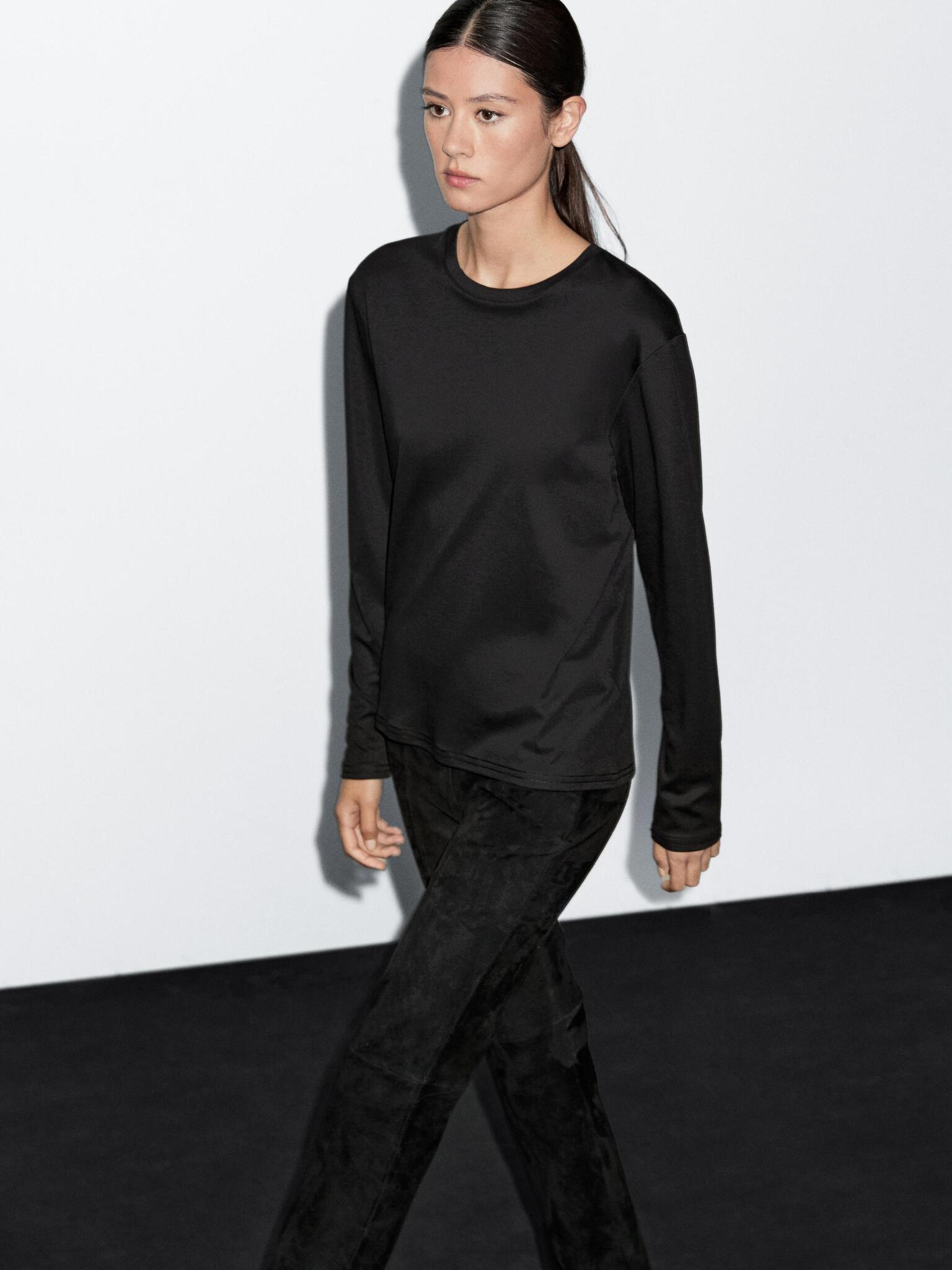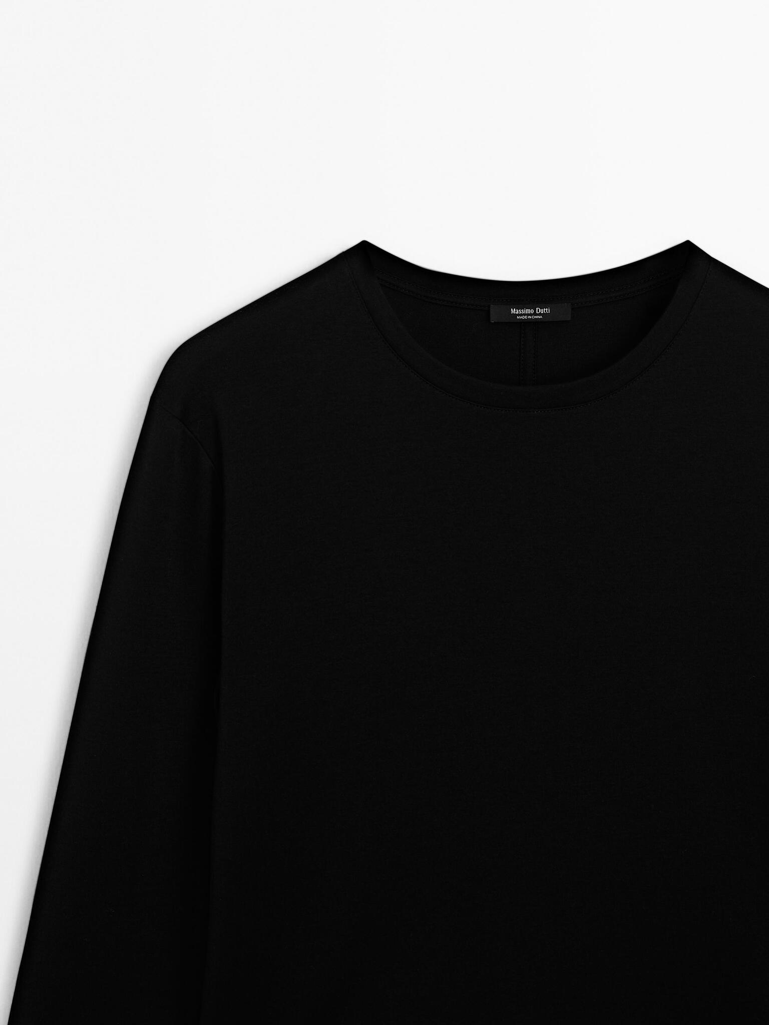Massimo Dutti Футболка из 100% хлопка с длинным рукавом, черный