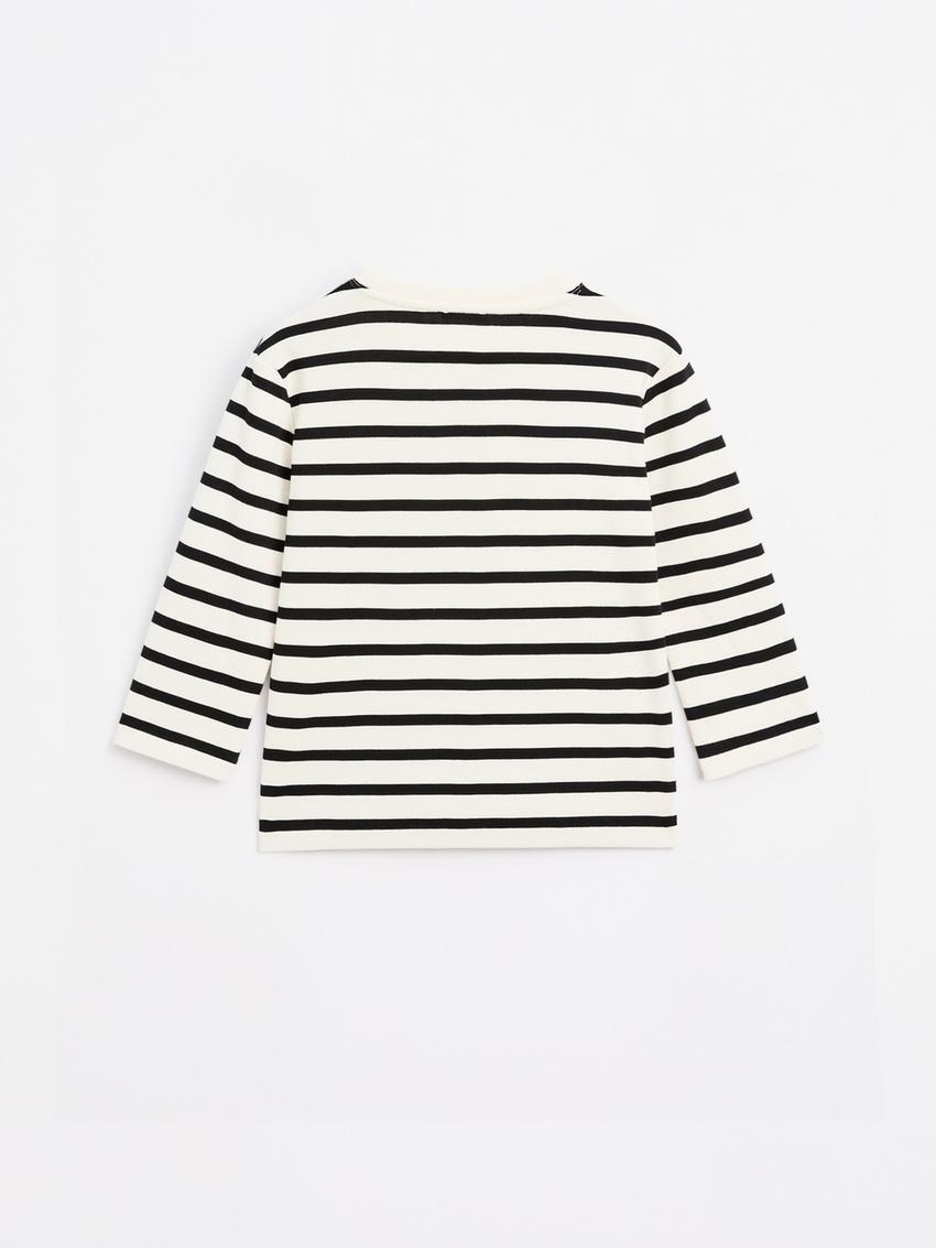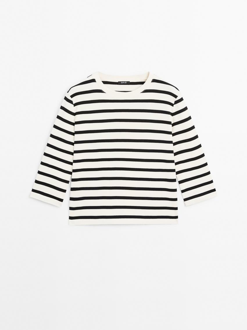 Футболка из 100% хлопка. Круглый вырез. Рукава 3/4. Принт в полоску.