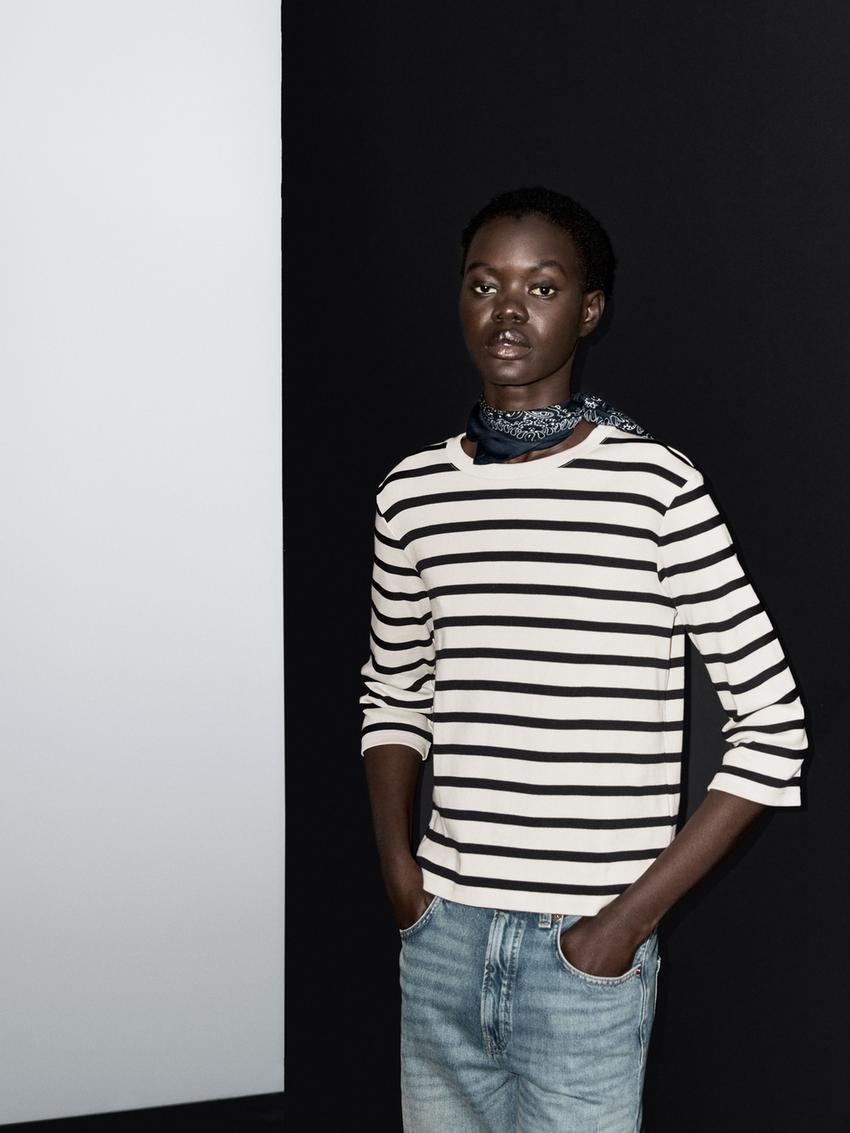 Massimo Dutti Футболка из 100% хлопка в полоску, натуральный, кремовый