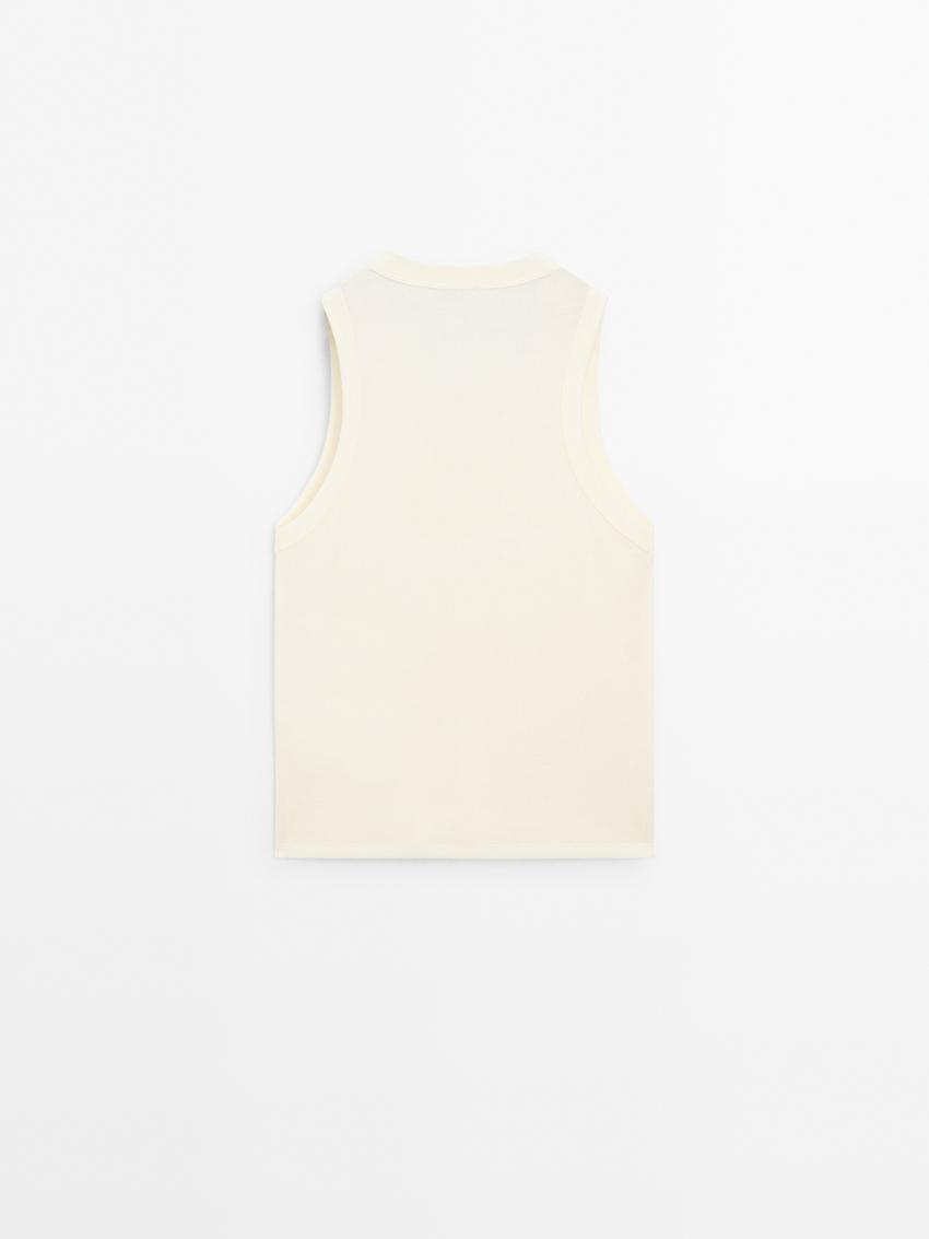 Massimo Dutti Футболка из мерсеризованного хлопка без рукавов, светло-желтый