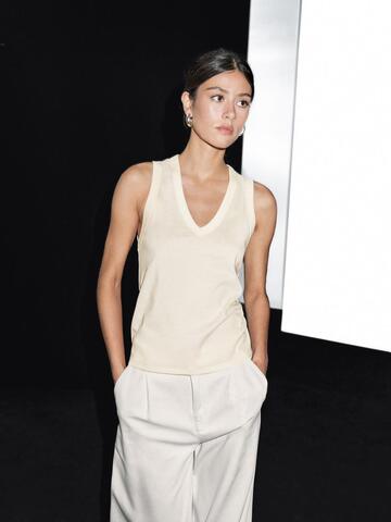 Футболка из 100% хлопка. V-образный вырез. Без рукавов.