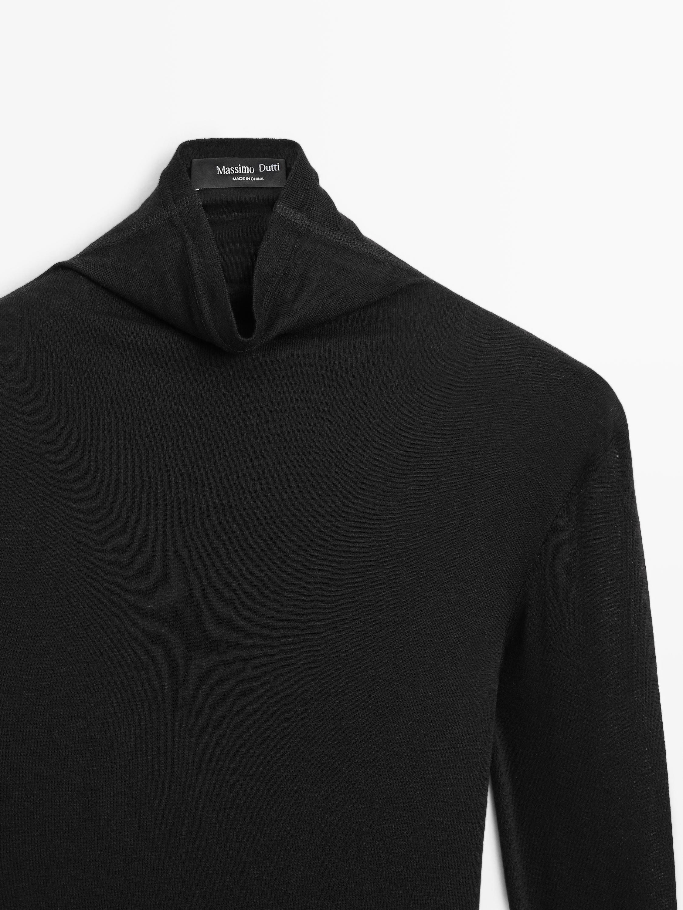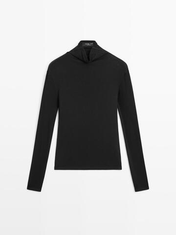 Massimo Dutti Футболка из смеси лиоцелла и шерсти с длинными рукавами, черный