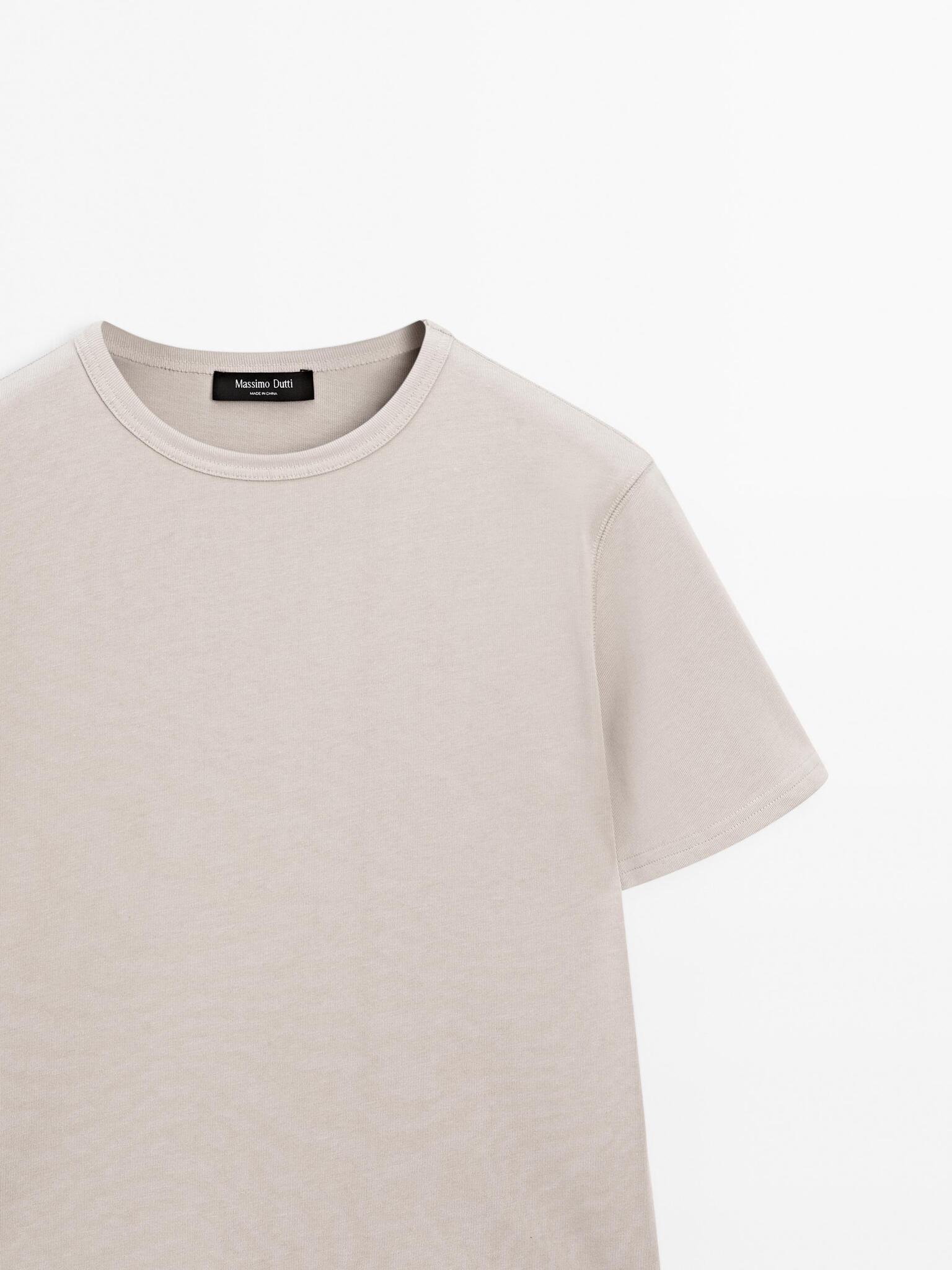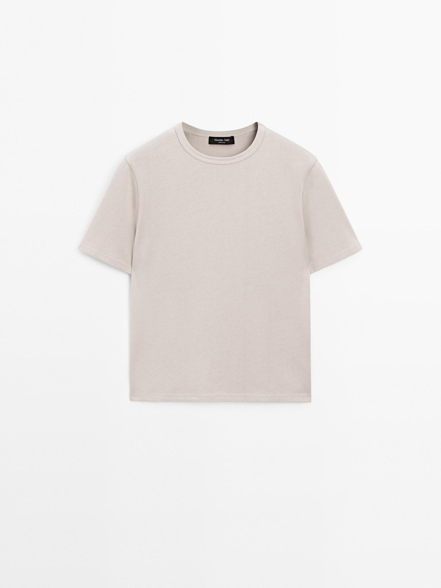 Massimo Dutti Футболка из смесового хлопка, дымчатый