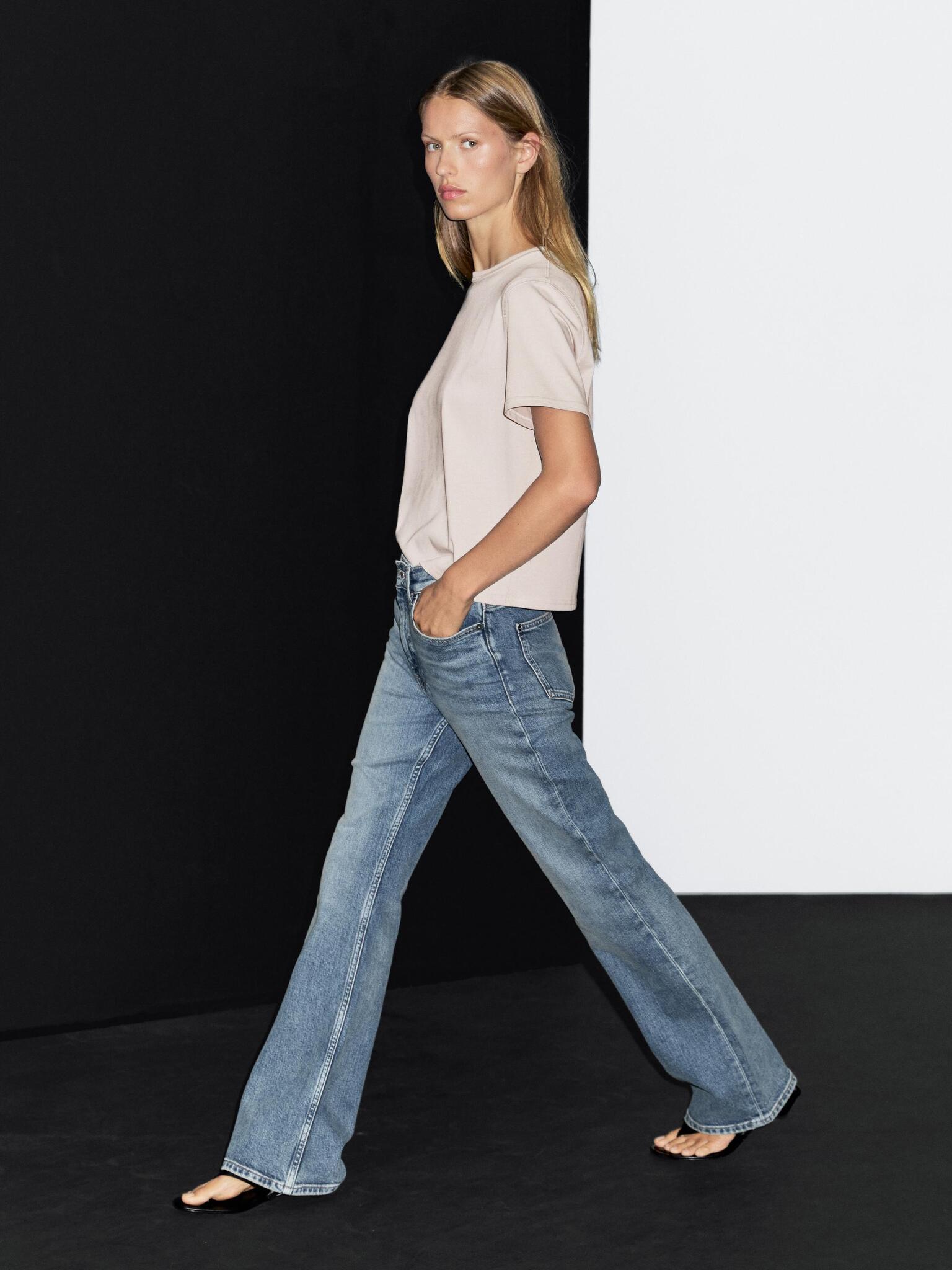 Футболка из смесового хлопка. Круглый вырез. Короткие рукава. Эта модель короче, чем обычно..