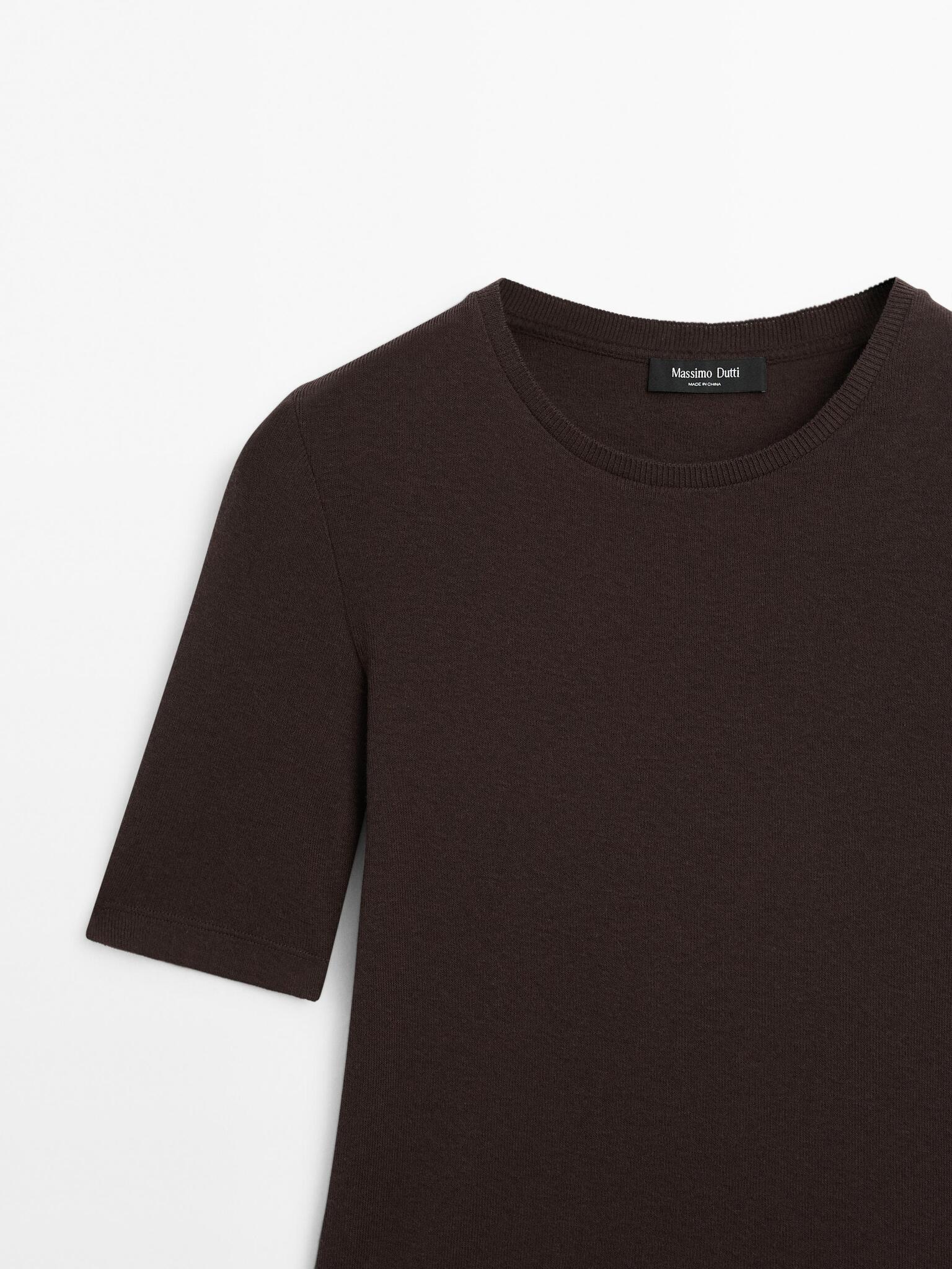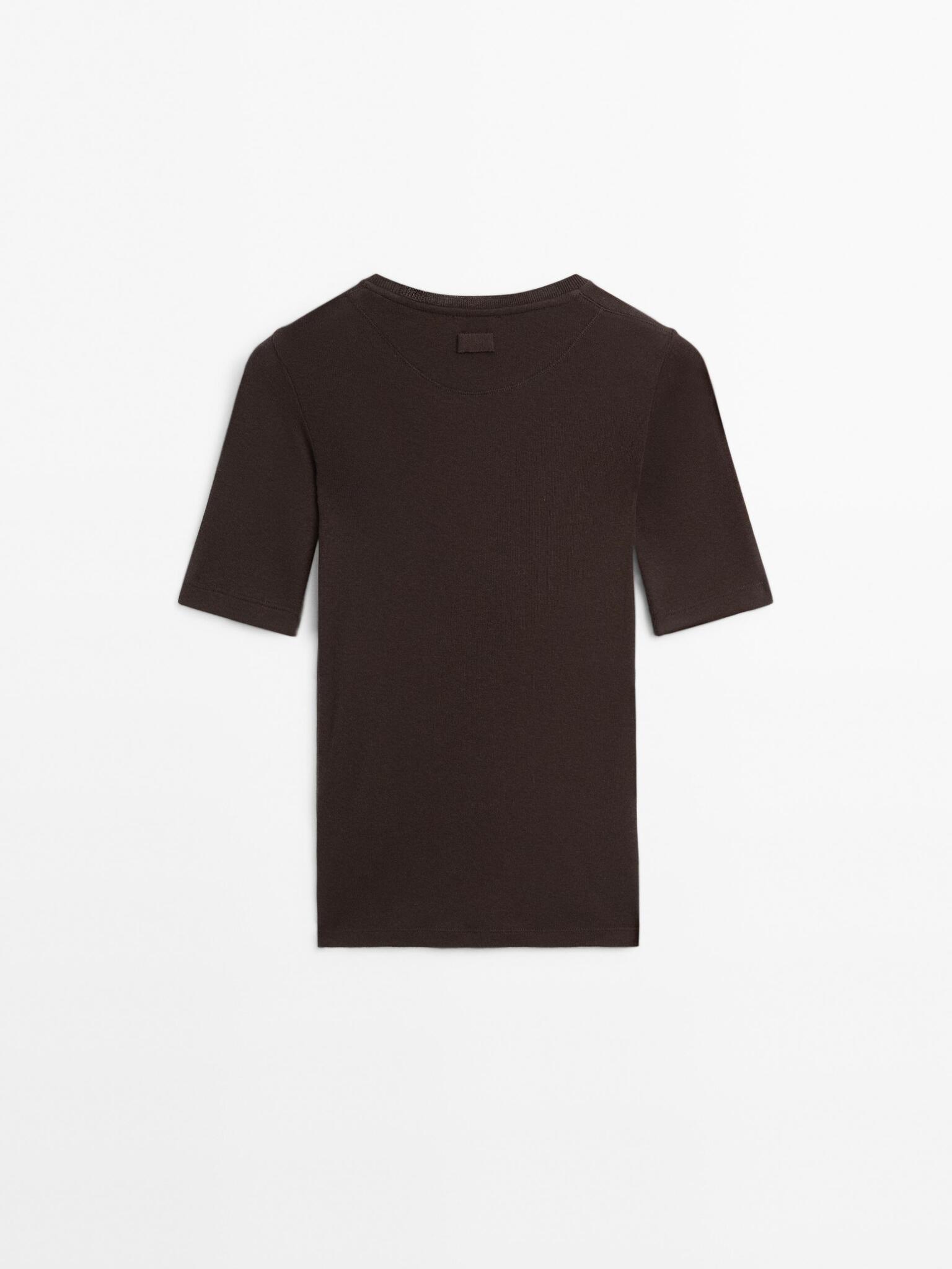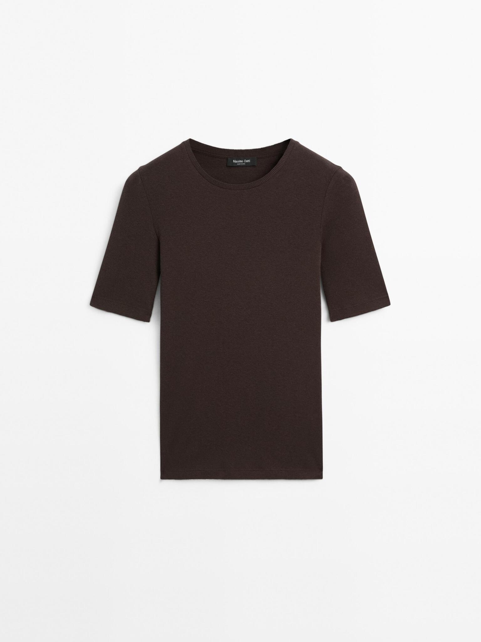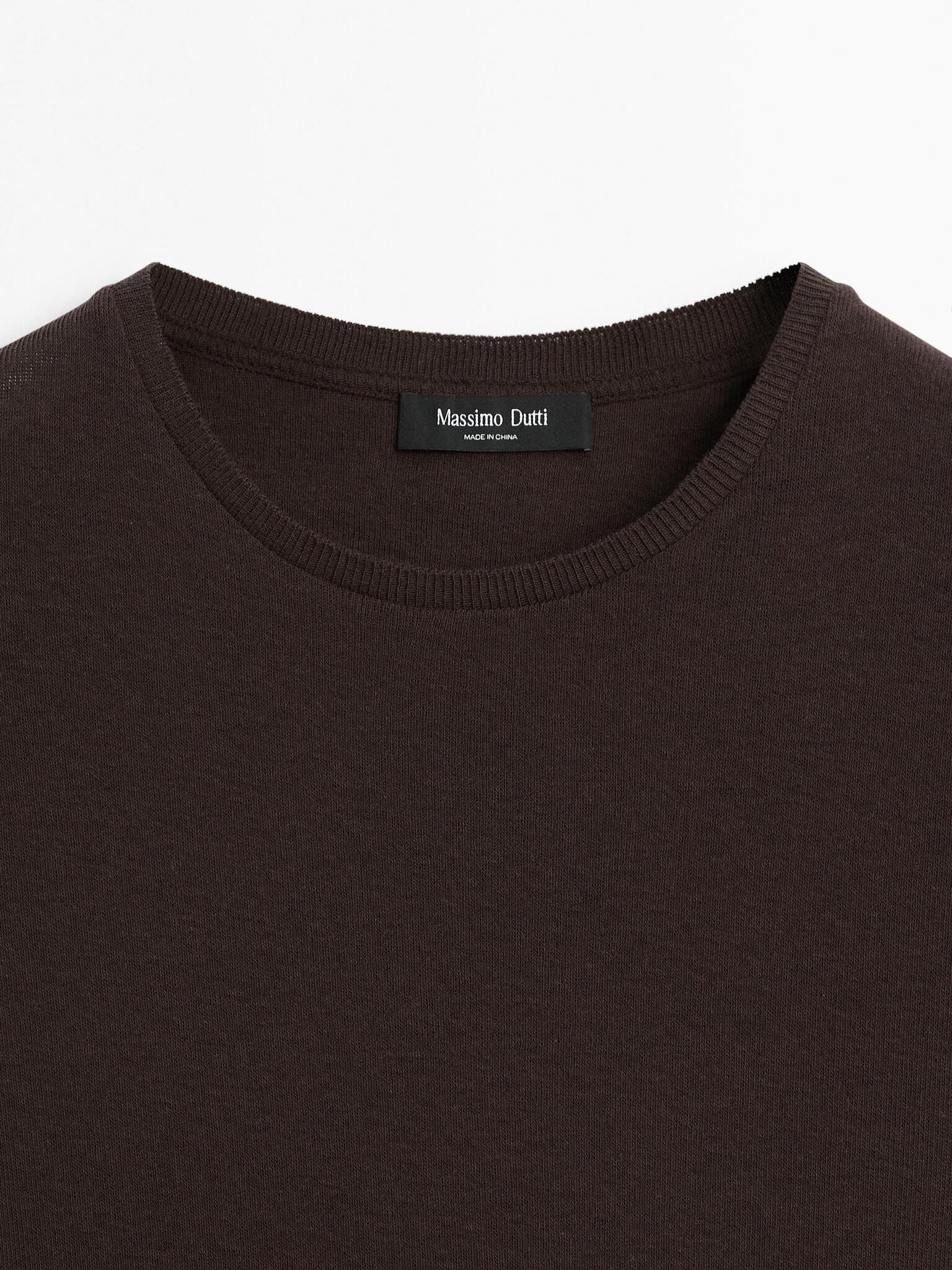 Massimo Dutti Футболка из смесового хлопка, коричневый