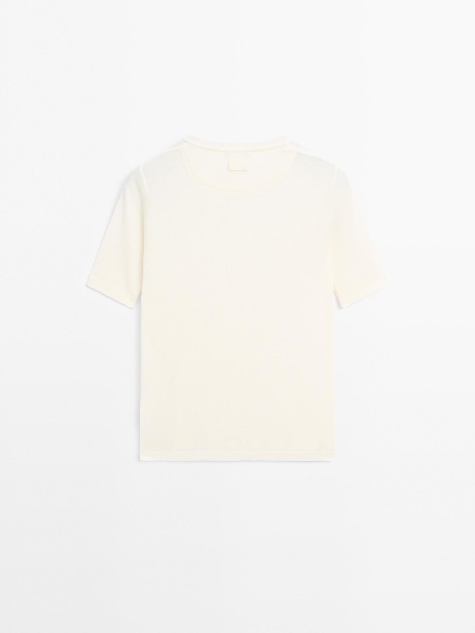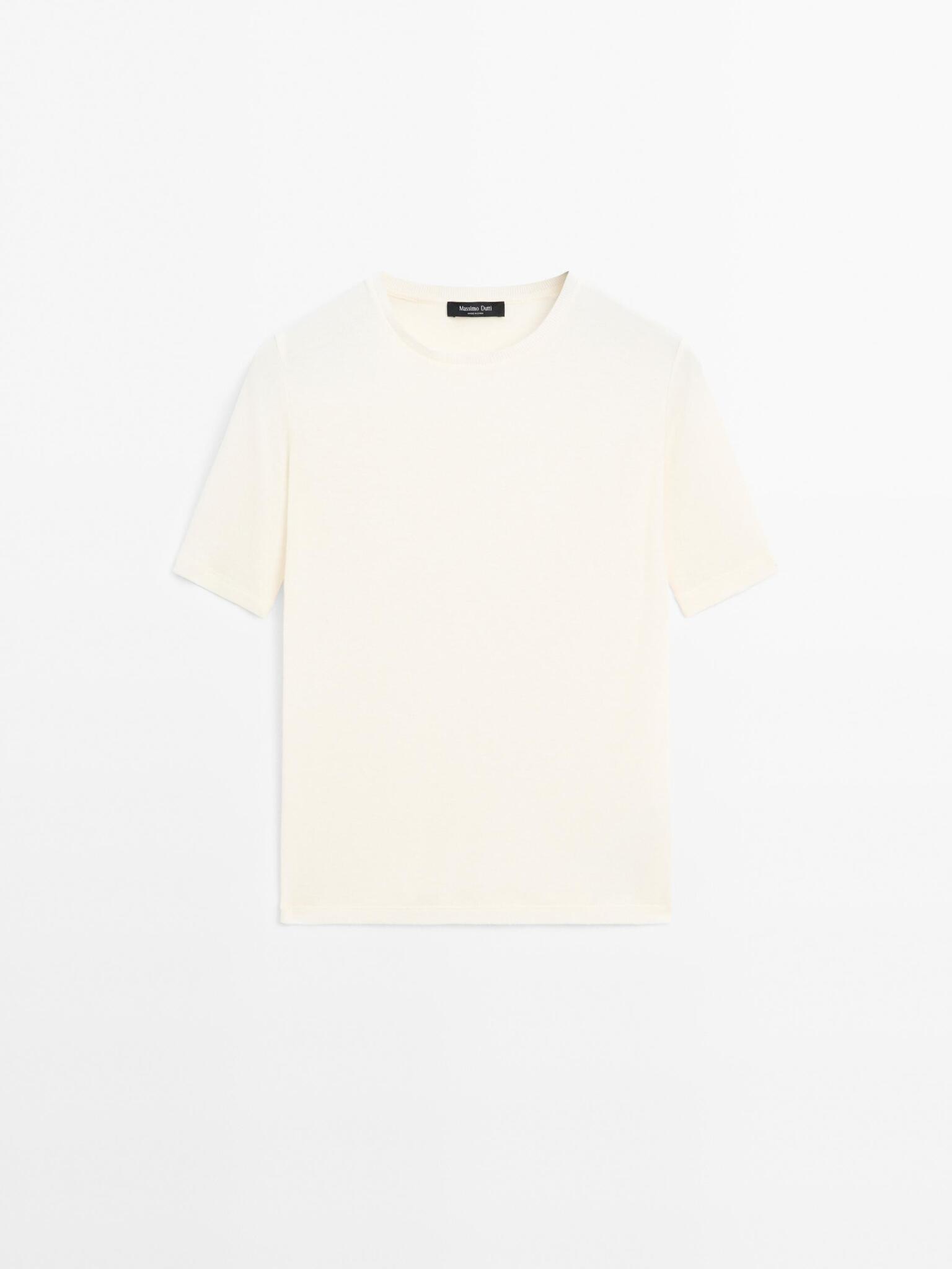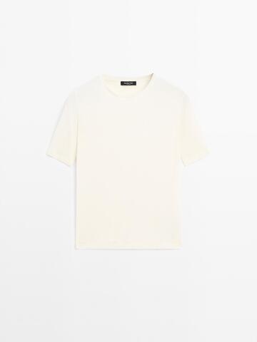 Massimo Dutti Футболка из смесового хлопка, натуральный/кремовый