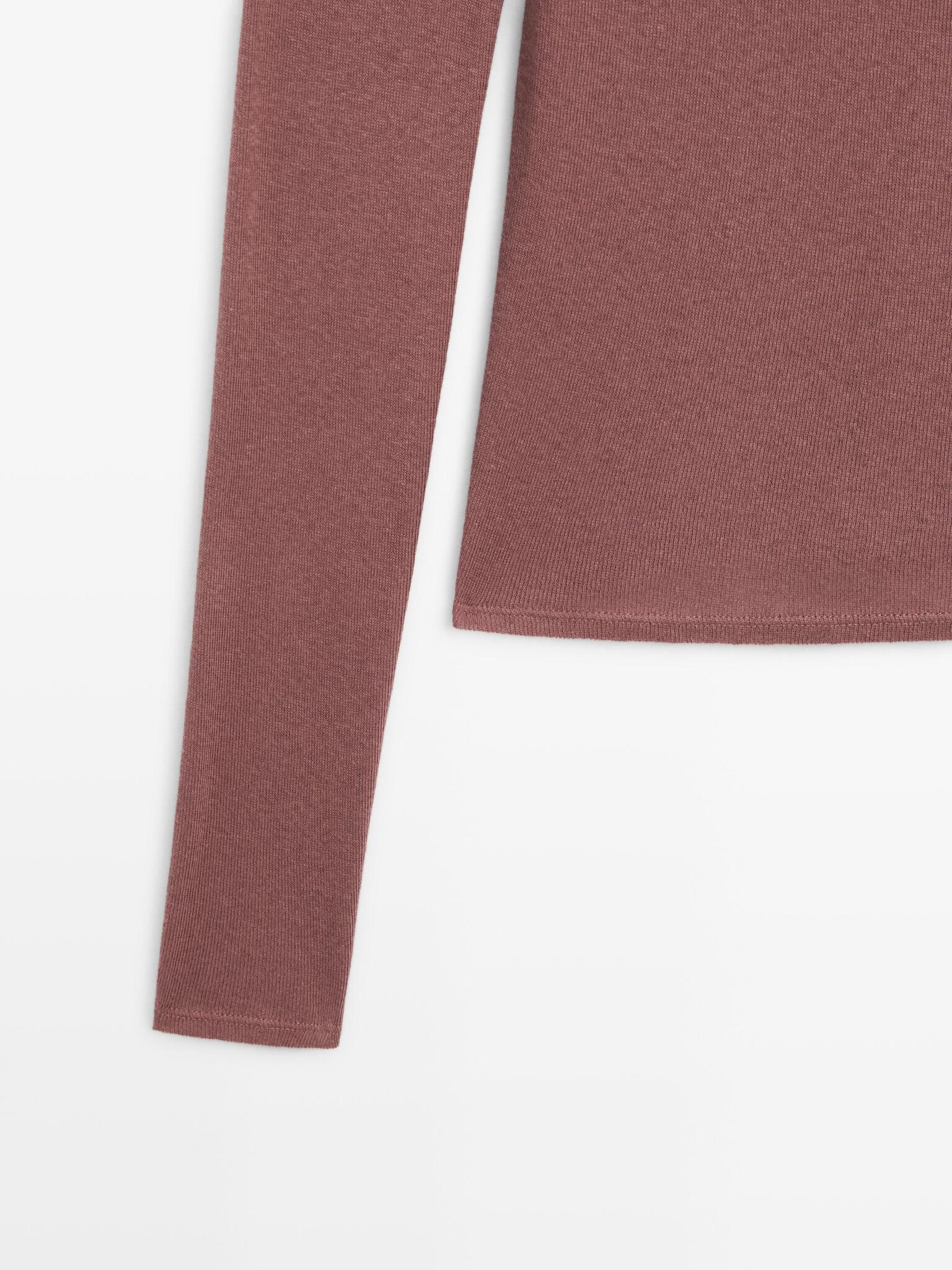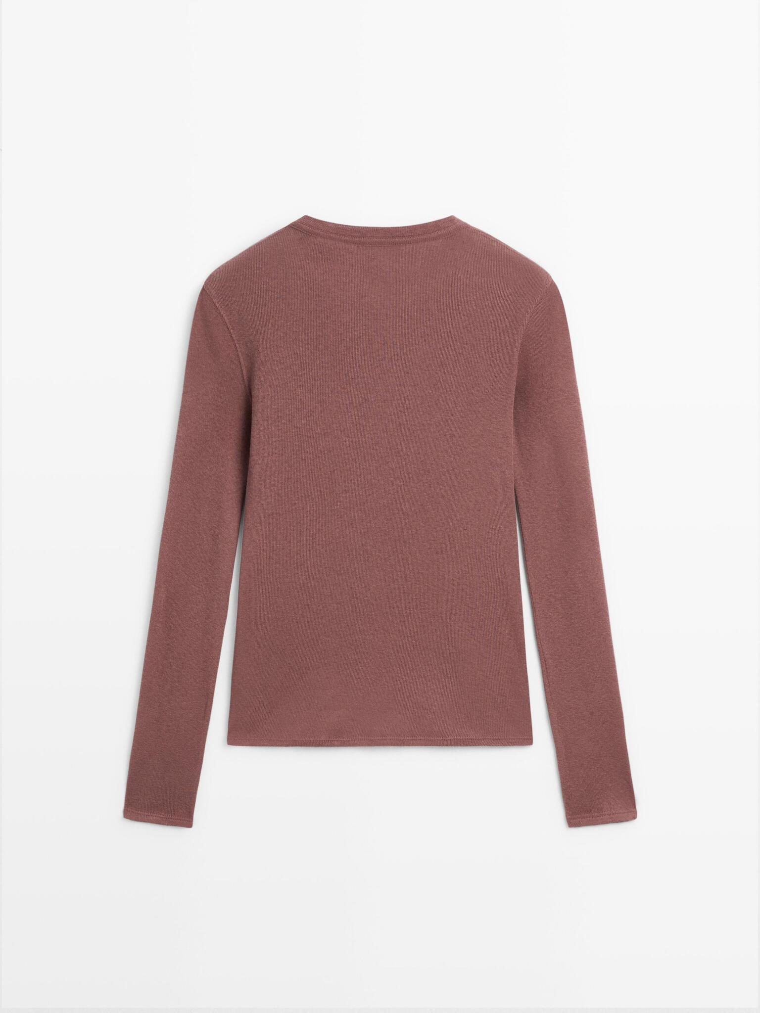 Massimo Dutti Футболка из смесового хлопка с длинными рукавами, пудрово-розовый