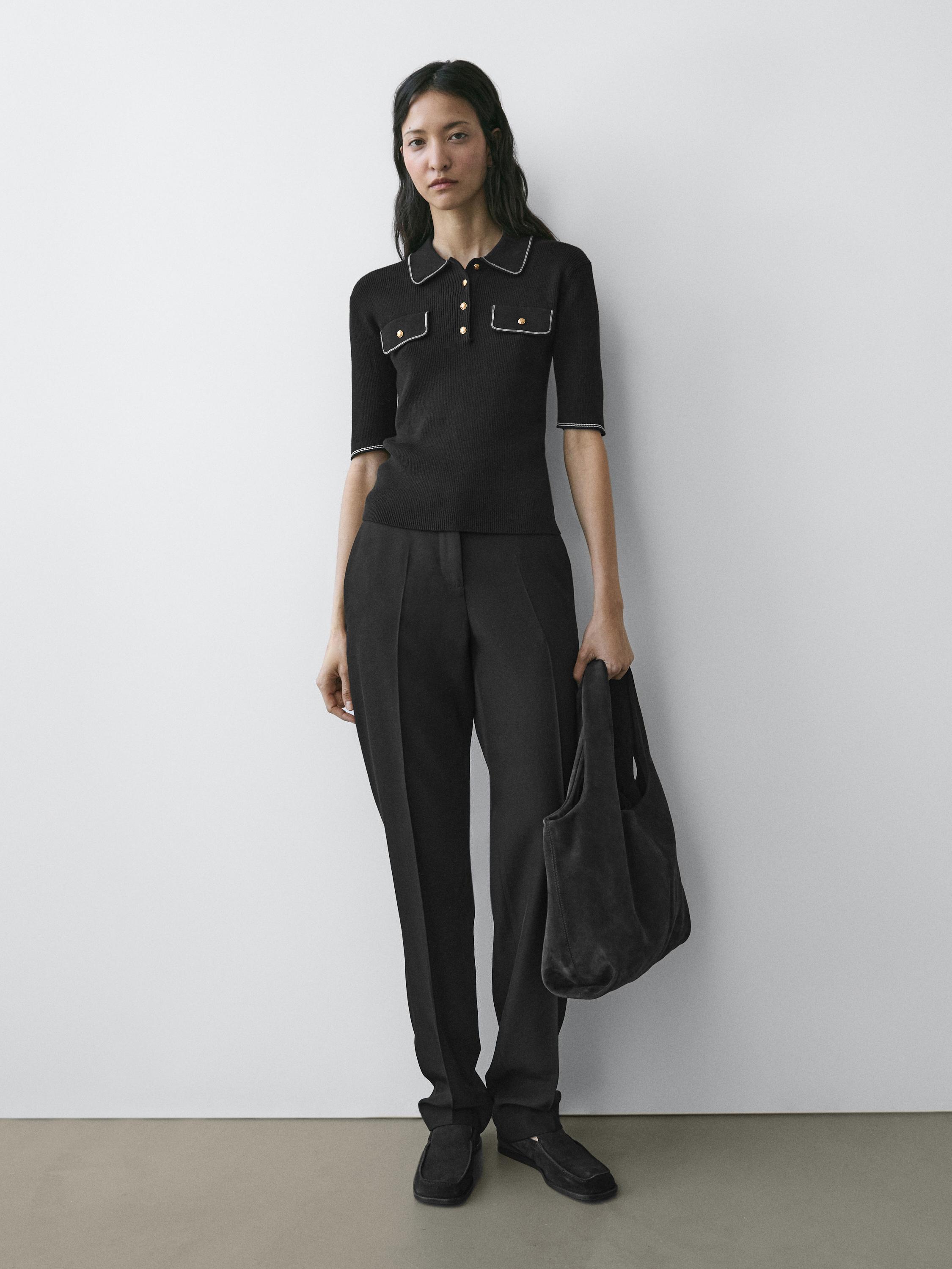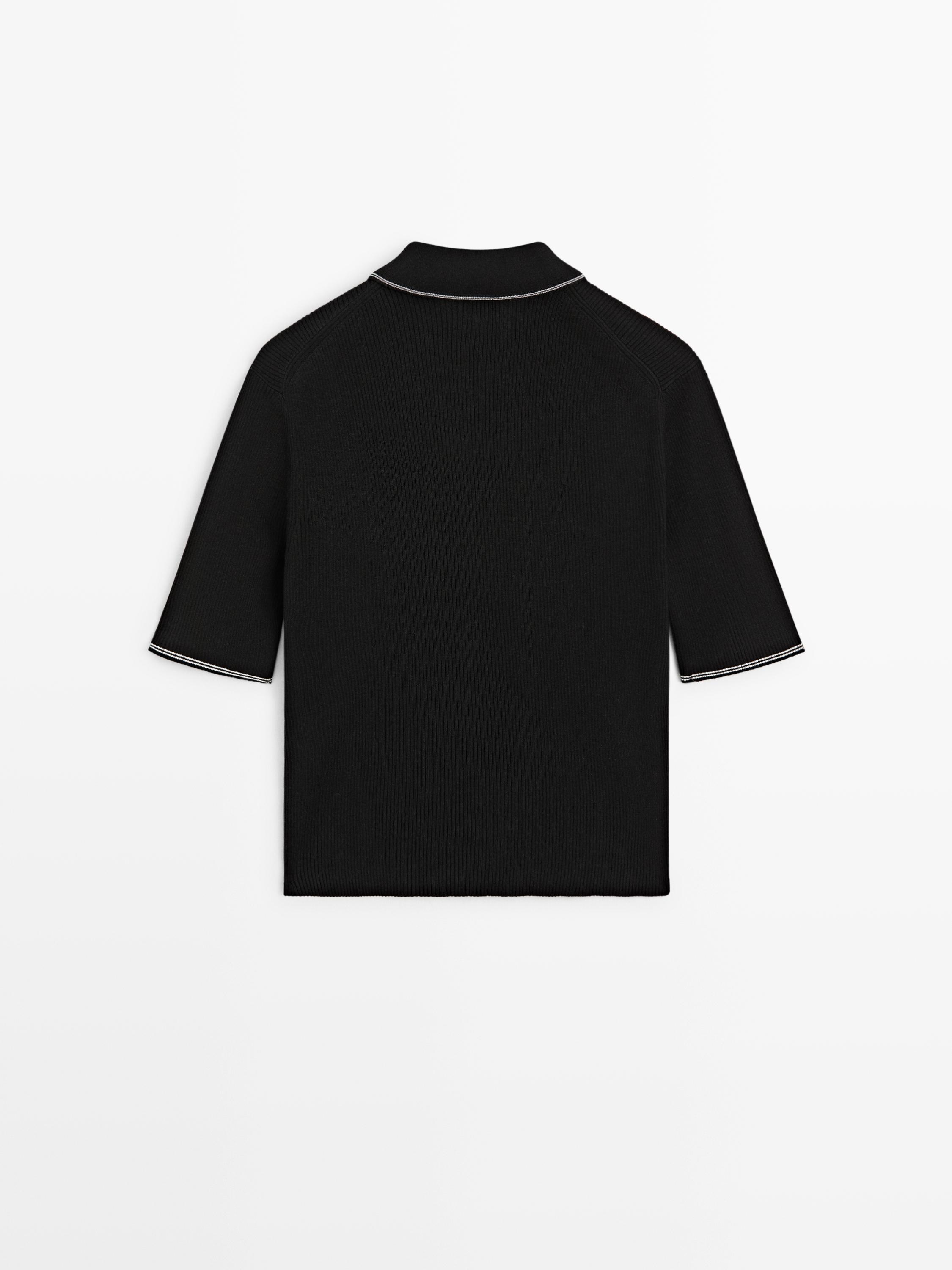 Massimo Dutti Футболка поло с короткими рукавами, черный